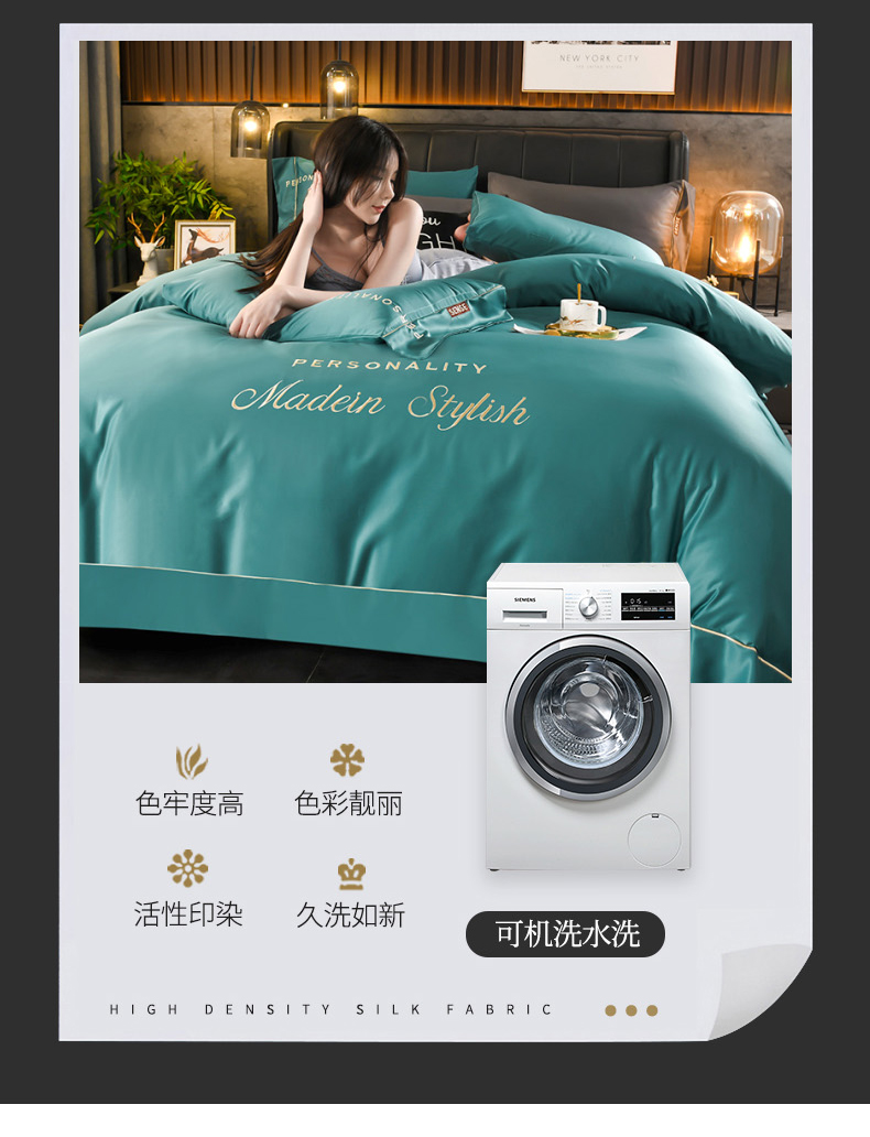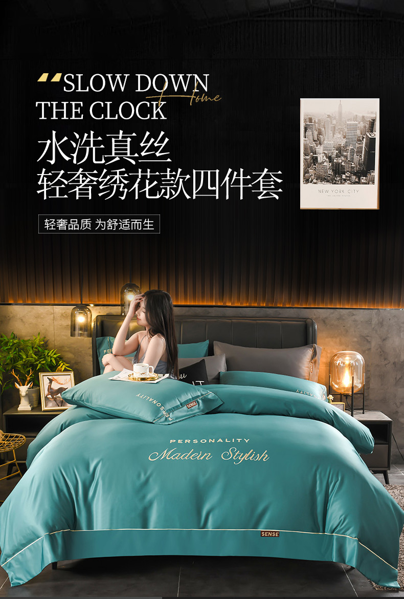 睡美人 2025新款水洗真丝高端轻奢绣花款四件套-爱娜 爱娜-孔雀绿