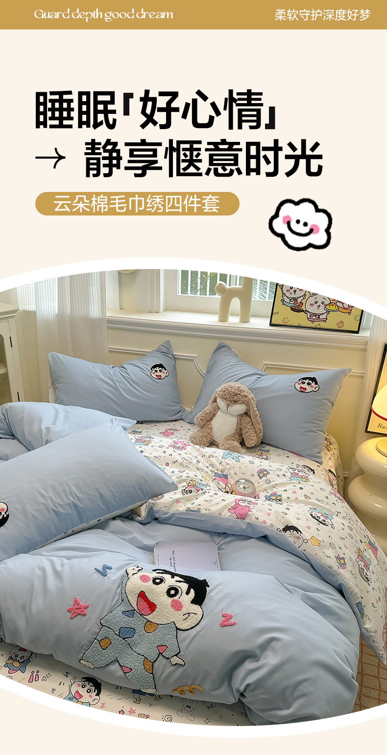 当前位置: 91家纺网 > 商品网购 > 床品套件 > 四件套 > 毛巾绣四件套 > 韩巢家纺 2025新款云朵棉印花毛巾绣四件套(提供买家秀) 纯酷小新