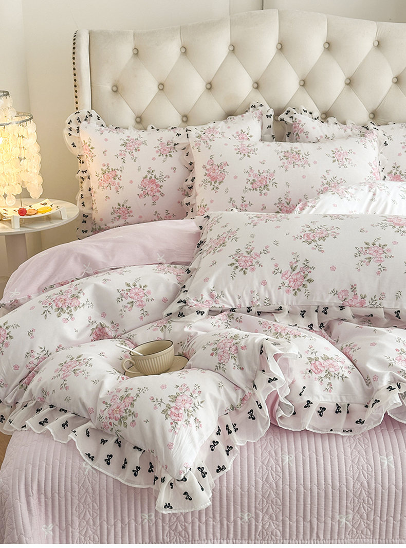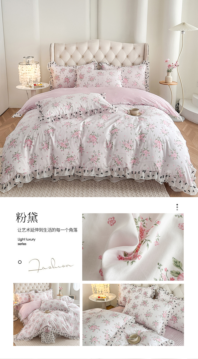 美伦美焕 2025新款全棉印花床盖四件套 粉黛