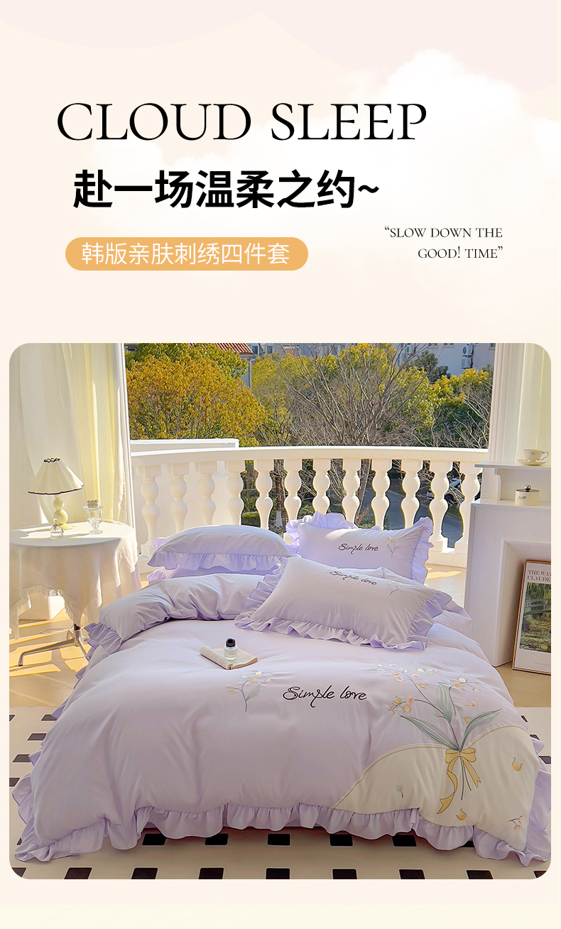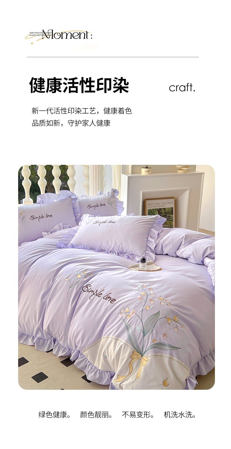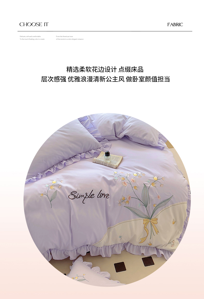 当前位置: 91家纺网 > 商品网购 > 床品套件 > 四件套 > 磨毛活性四件套 > 凯美家居 2025新款超柔亲肤磨毛刺绣花仙子系列四件套 花仙子 浅紫