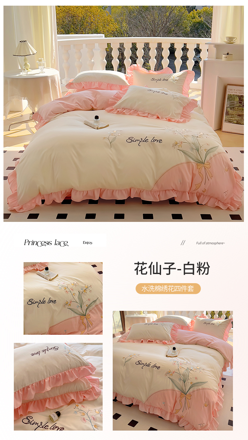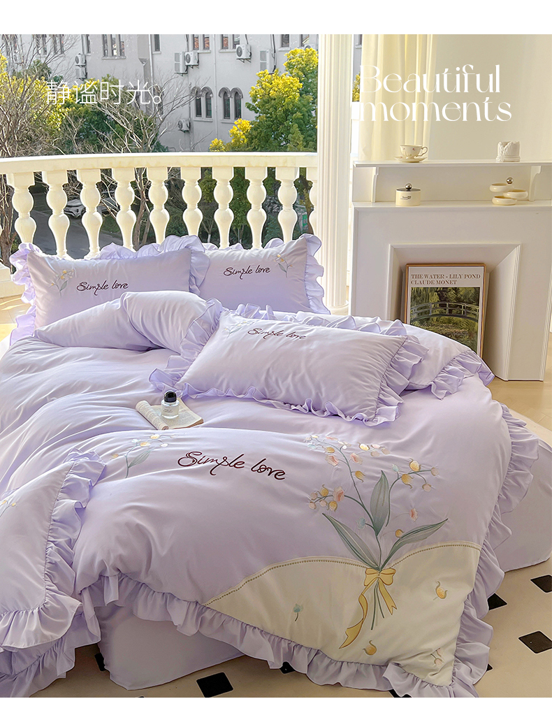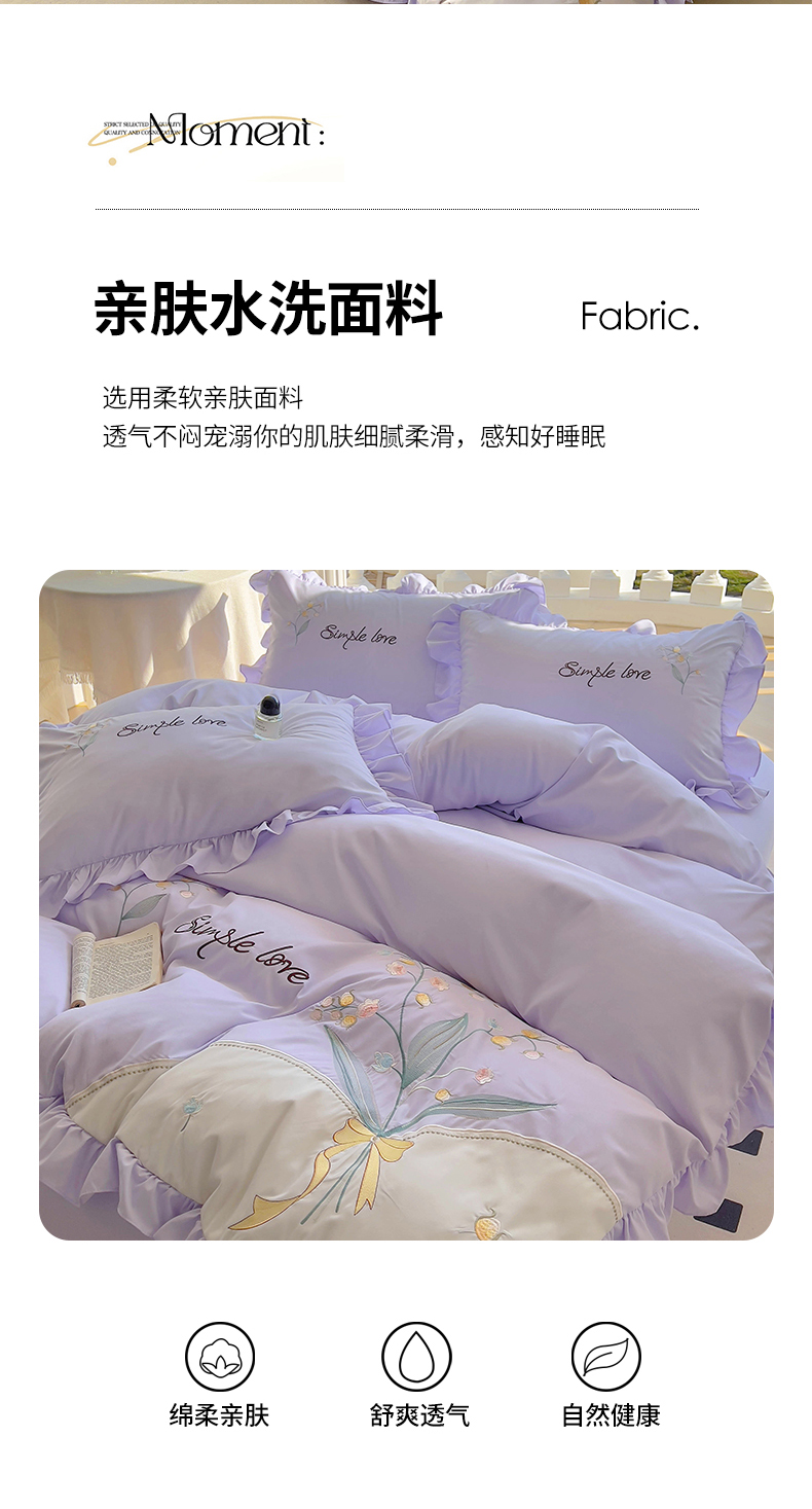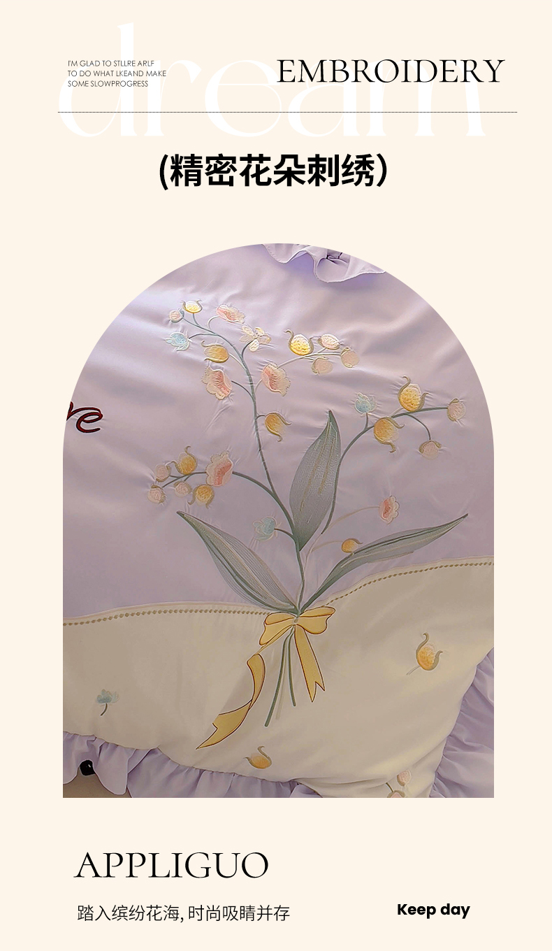 当前位置: 91家纺网 > 商品网购 > 床品套件 > 四件套 > 磨毛活性四件套 > 凯美家居 2025新款超柔亲肤磨毛刺绣花仙子系列四件套 花仙子 浅紫