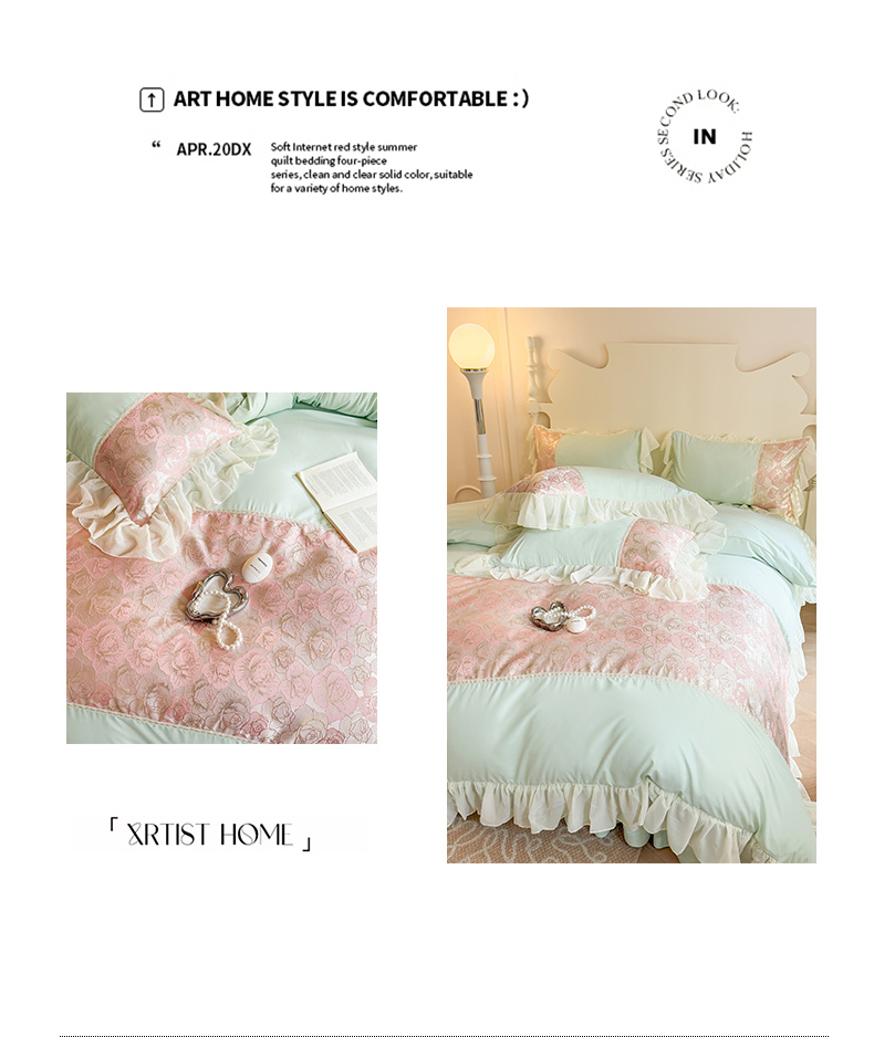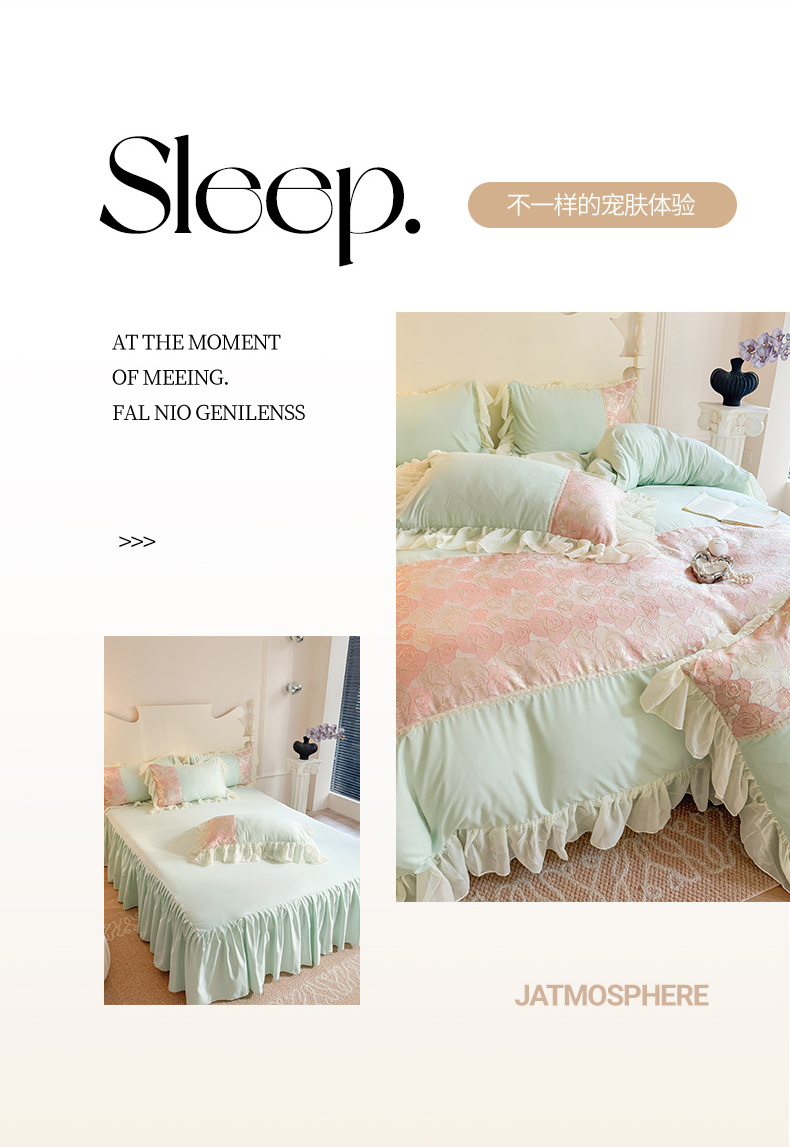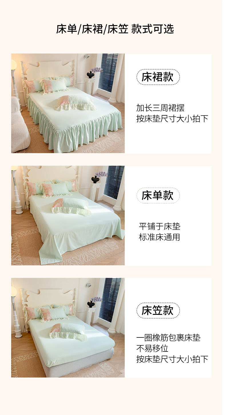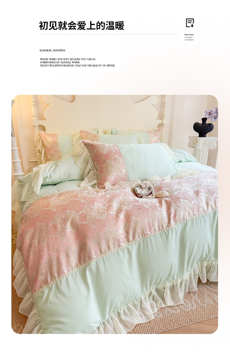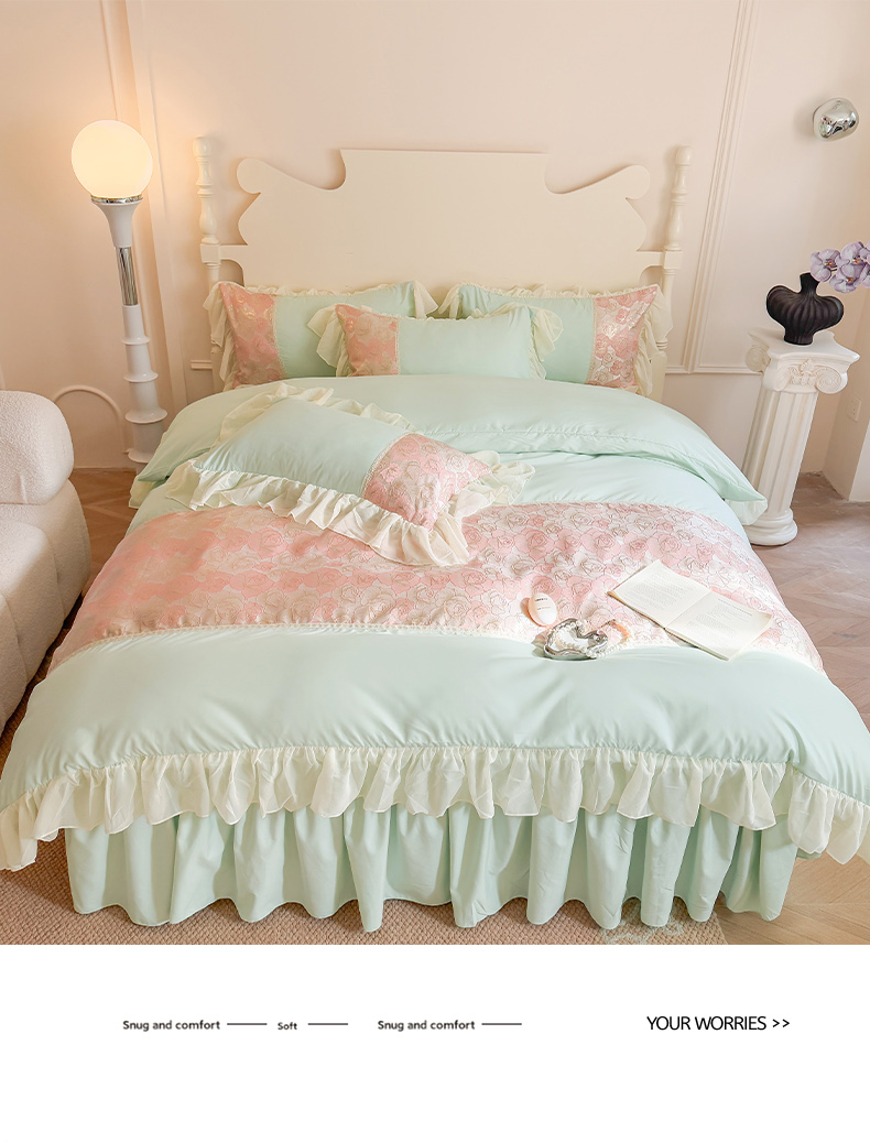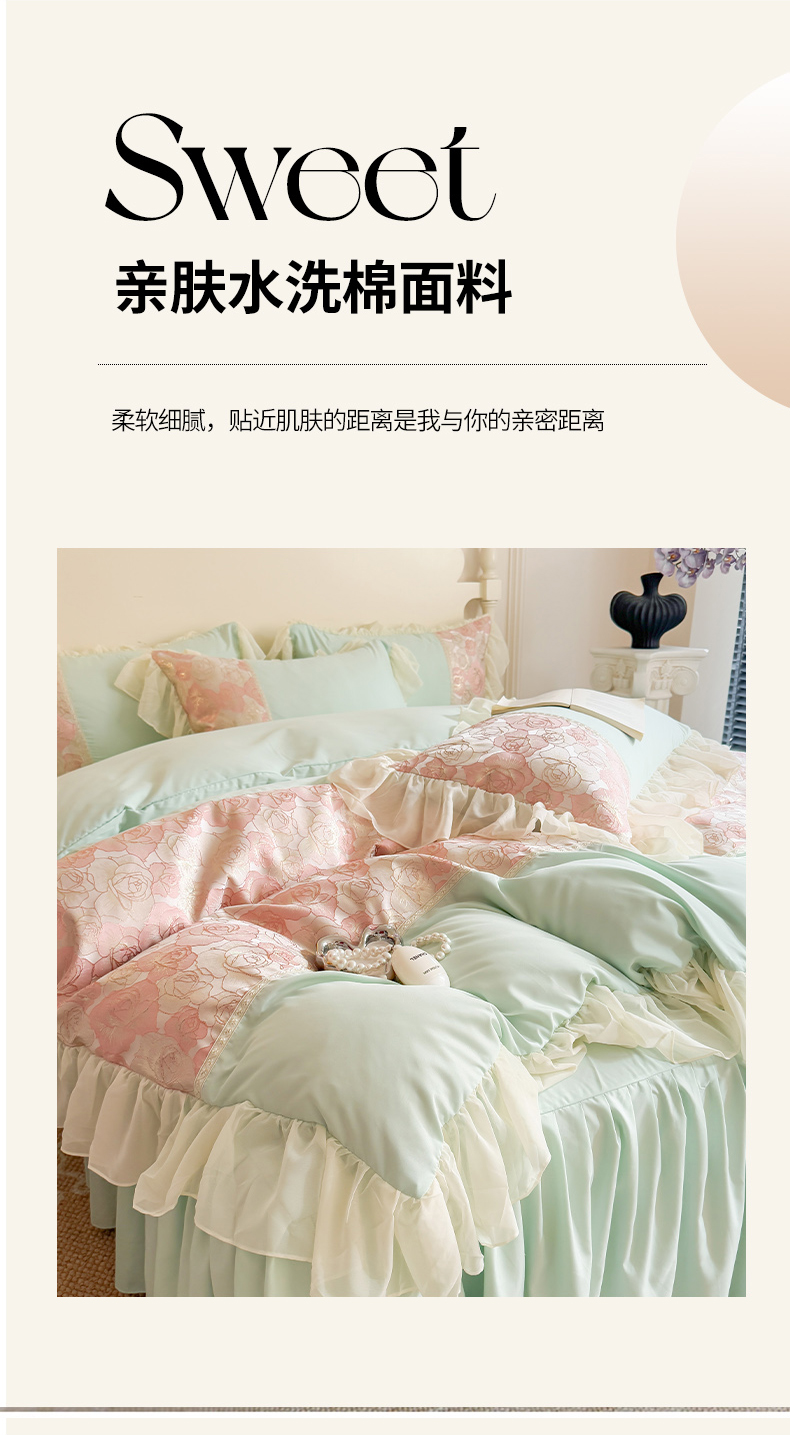 当前位置: 91家纺网 > 商品网购 > 床品套件 > 四件套 > 全棉普通四件套 > 富盛 2025新款水洗亲肤棉浮雕提花公主风四件套 月光恋人-绿
