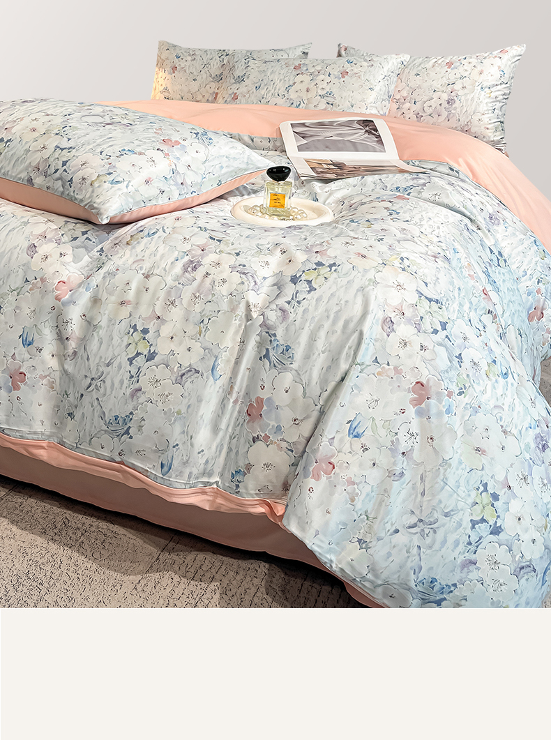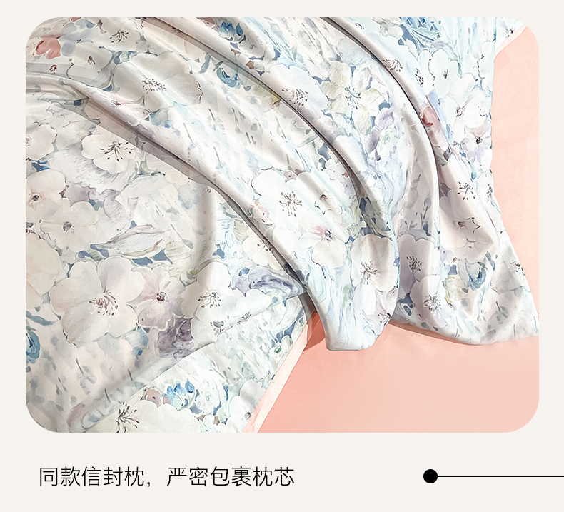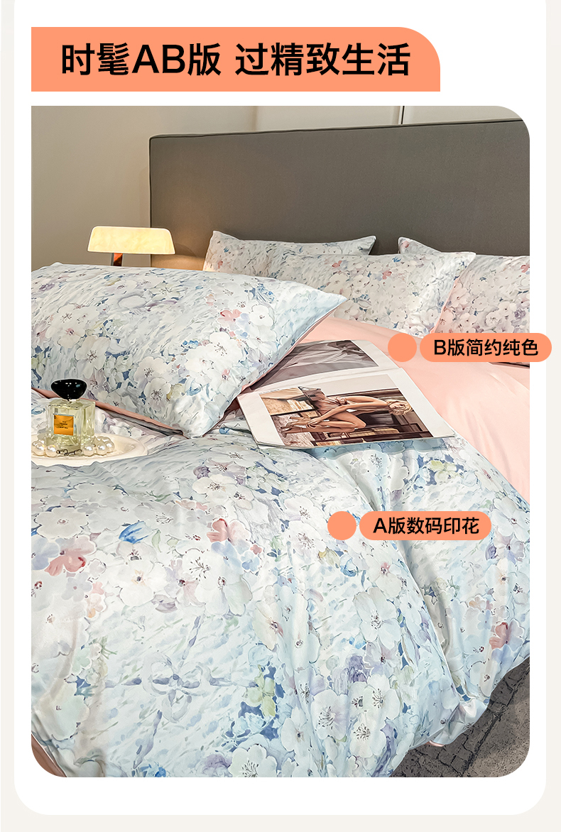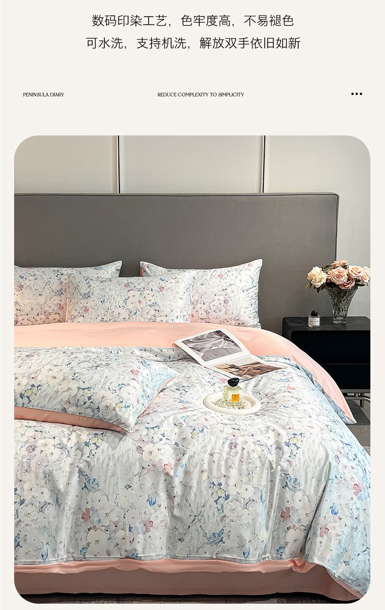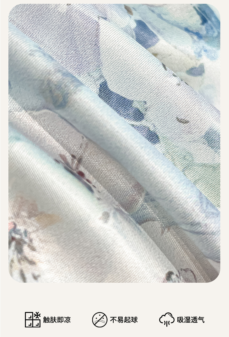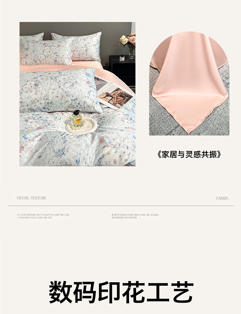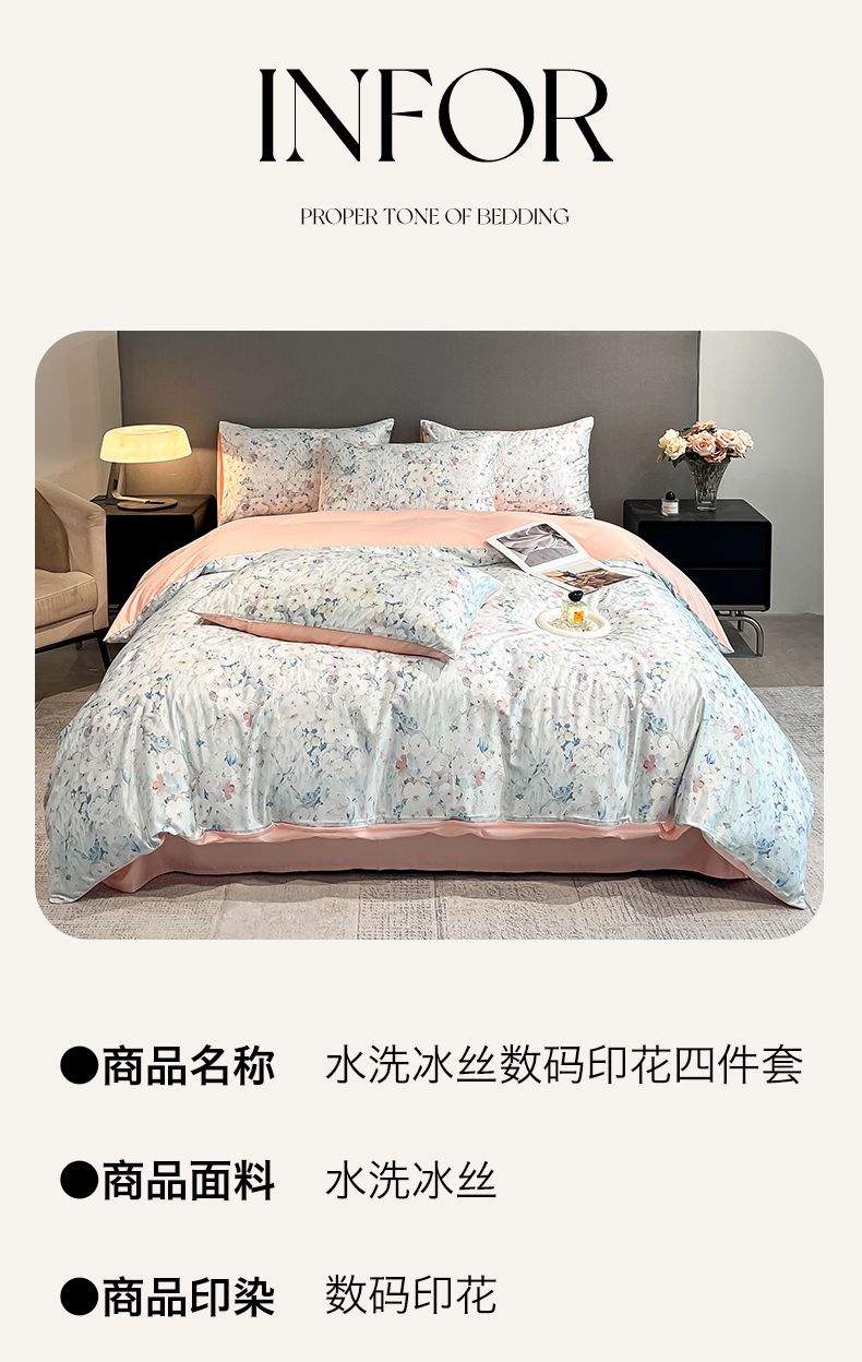 商品名称:笙意家纺2025新款水洗冰丝数码印花暗盒款四件套 流年