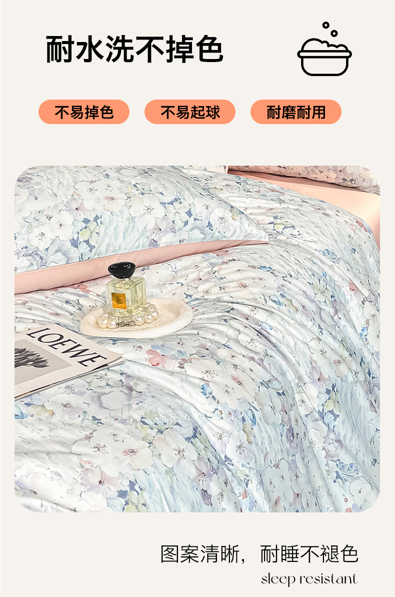 (总)笙意家纺 2025新款水洗冰丝数码印花拼角宽边夏被,晨晓,初语,春日恋,菲尔德-卡其,古韵蝶音,花海缠绵,花漫,奈雪之春,七彩福蝶,清苔,素瑾,屿夏