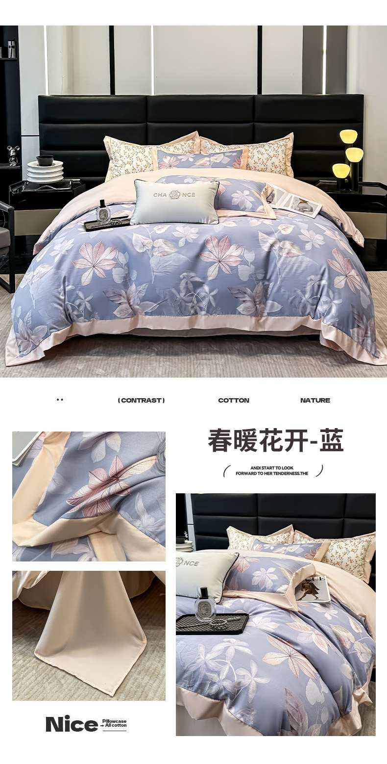 当前位置: 91家纺网 > 商品网购 > 床品套件 > 四件套 > 莱赛尔四件套 > 天一阁 2025春夏新款莱赛尔天丝印花四件套 礼盒装【可配床盖款】 春暖花开-蓝
