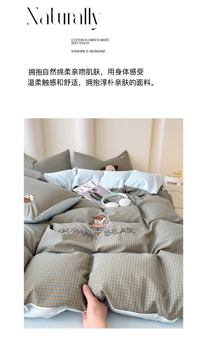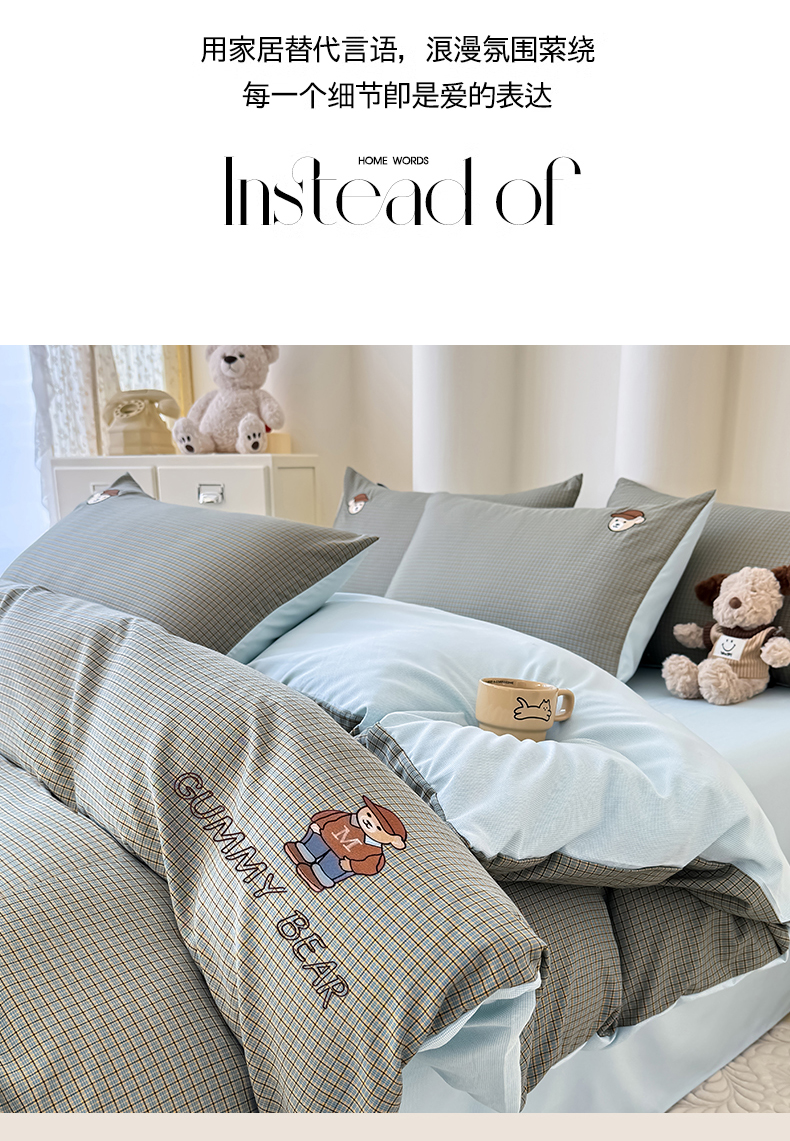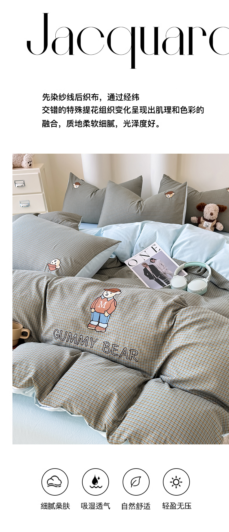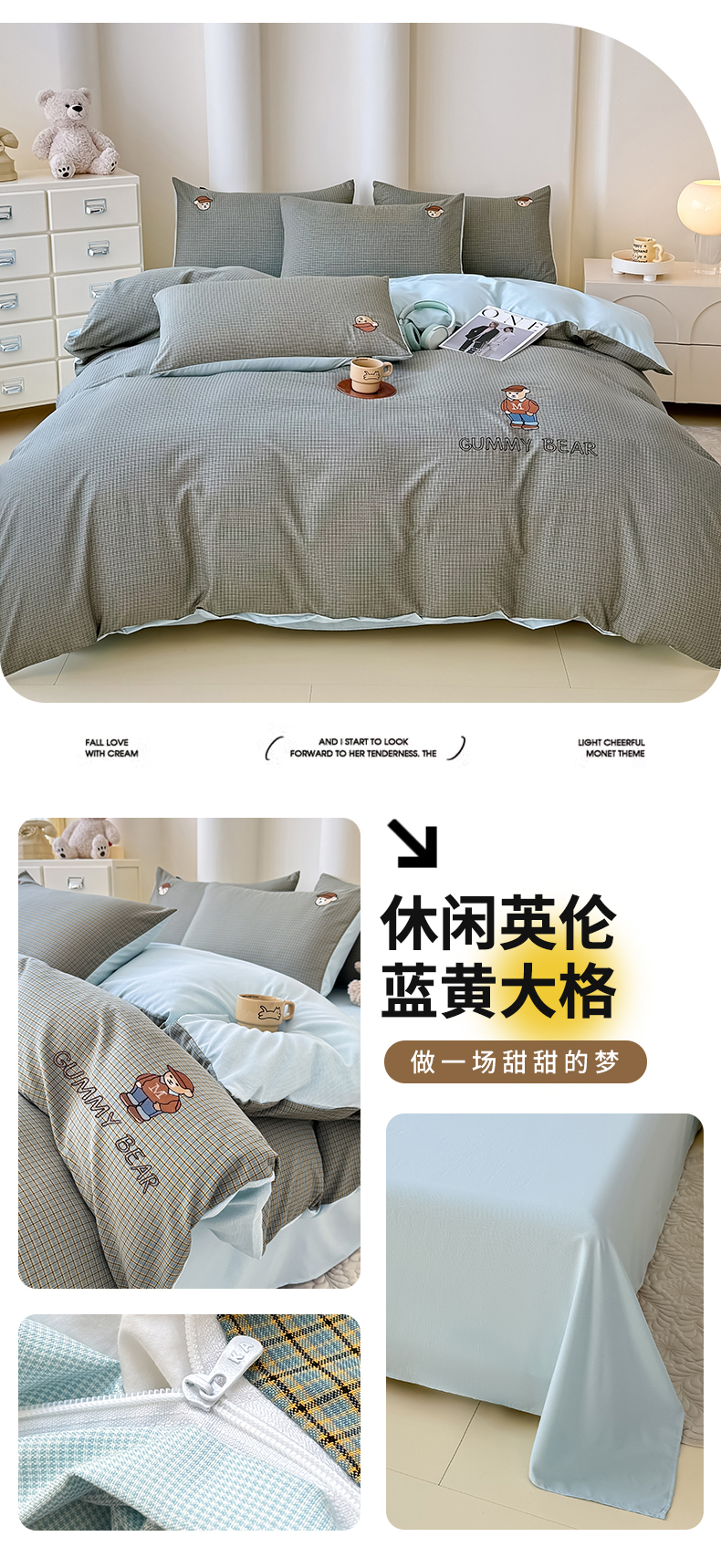 KA家纺 春夏新款A类色织水洗棉四件套 休闲英伦蓝黄大格
