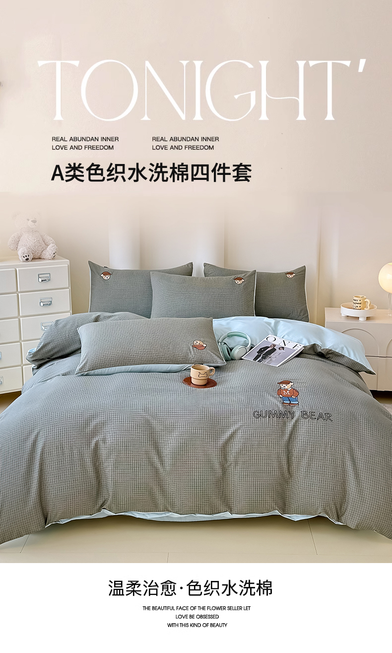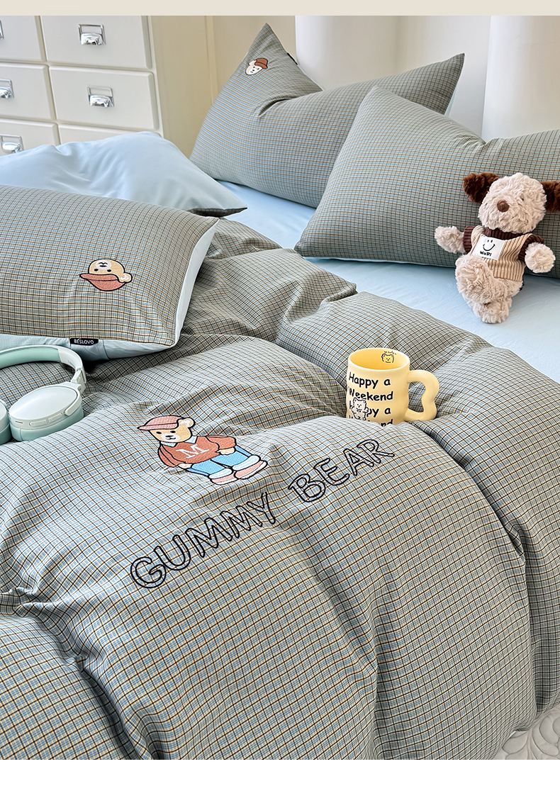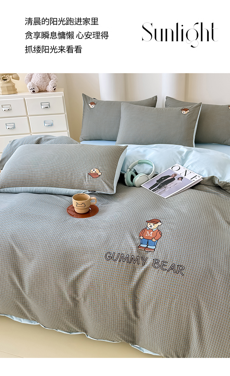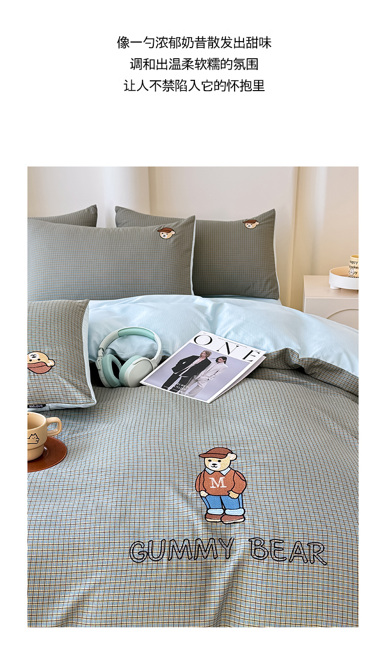 KA家纺 春夏新款A类色织水洗棉四件套 休闲英伦蓝黄大格