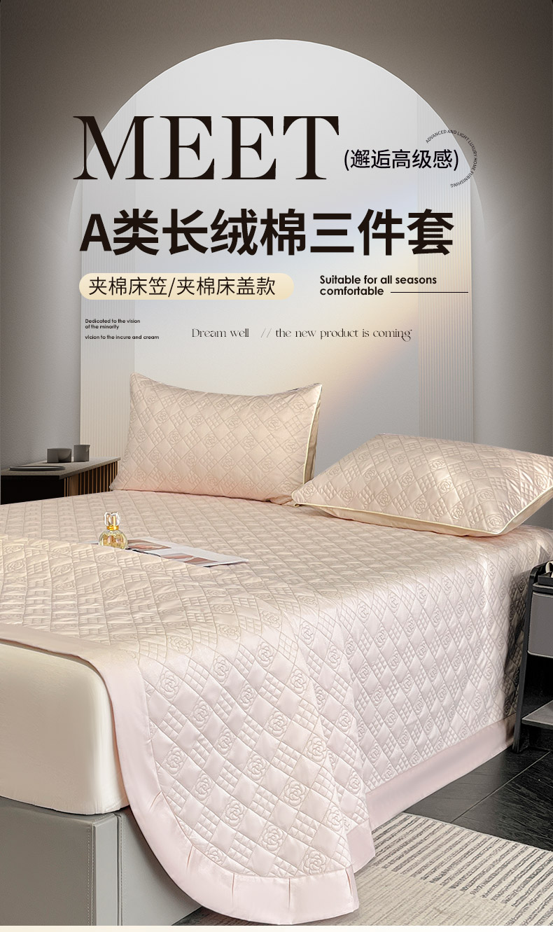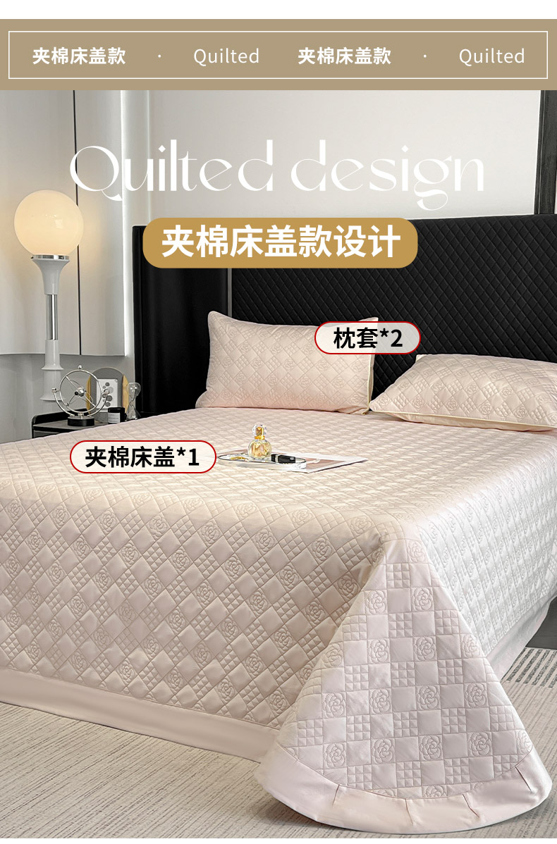 商品名称:(总)2025新款轻奢风A类长绒棉夹棉床盖床笠三件套纯色绗绣四季高级感纯色全棉纯棉床上用品