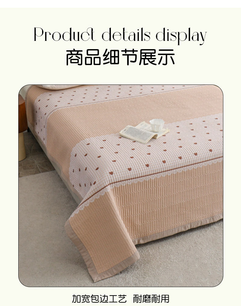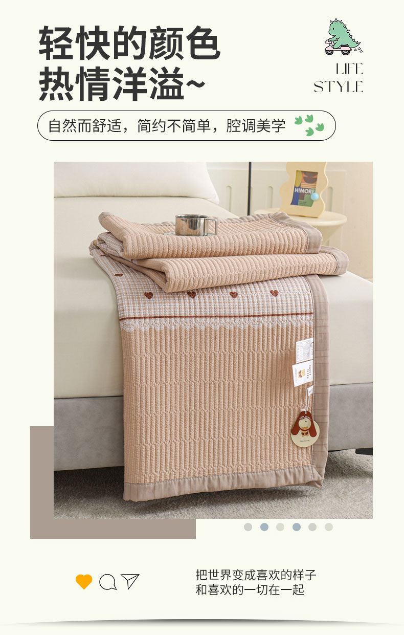 商品名称:源舜 2025新款皱皱纱拼接款单床盖床单 爱心-咖
