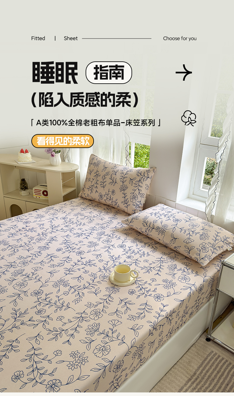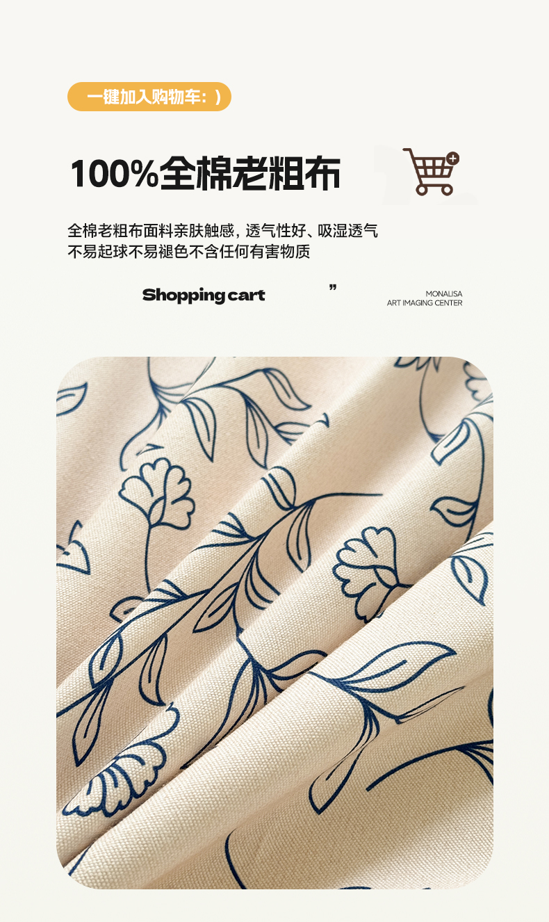 莱登卡奴 新款A类100%全棉老粗布单品系列 蓝海山居