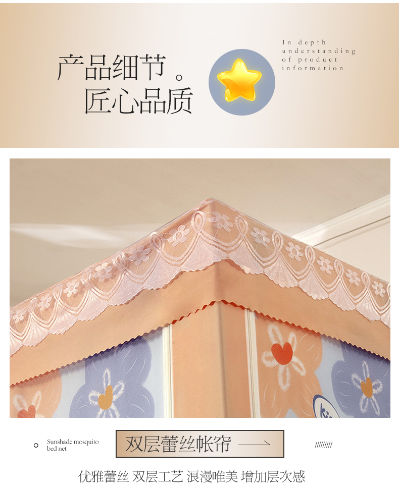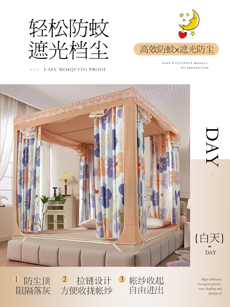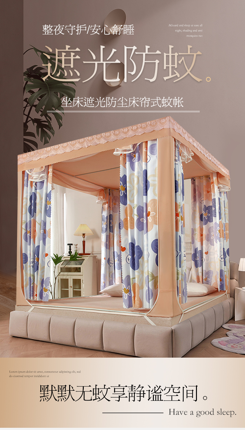 商品名称:显高蚊帐 2025新款U型坐床遮光防尘床帘式蚊帐 春暖花开