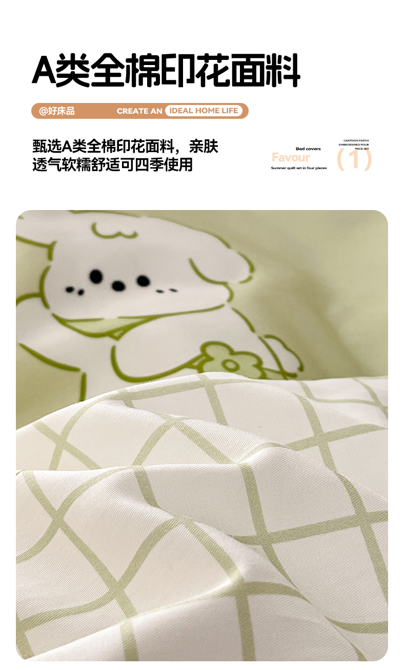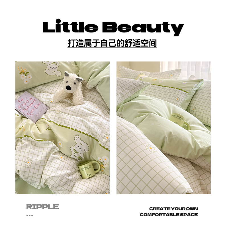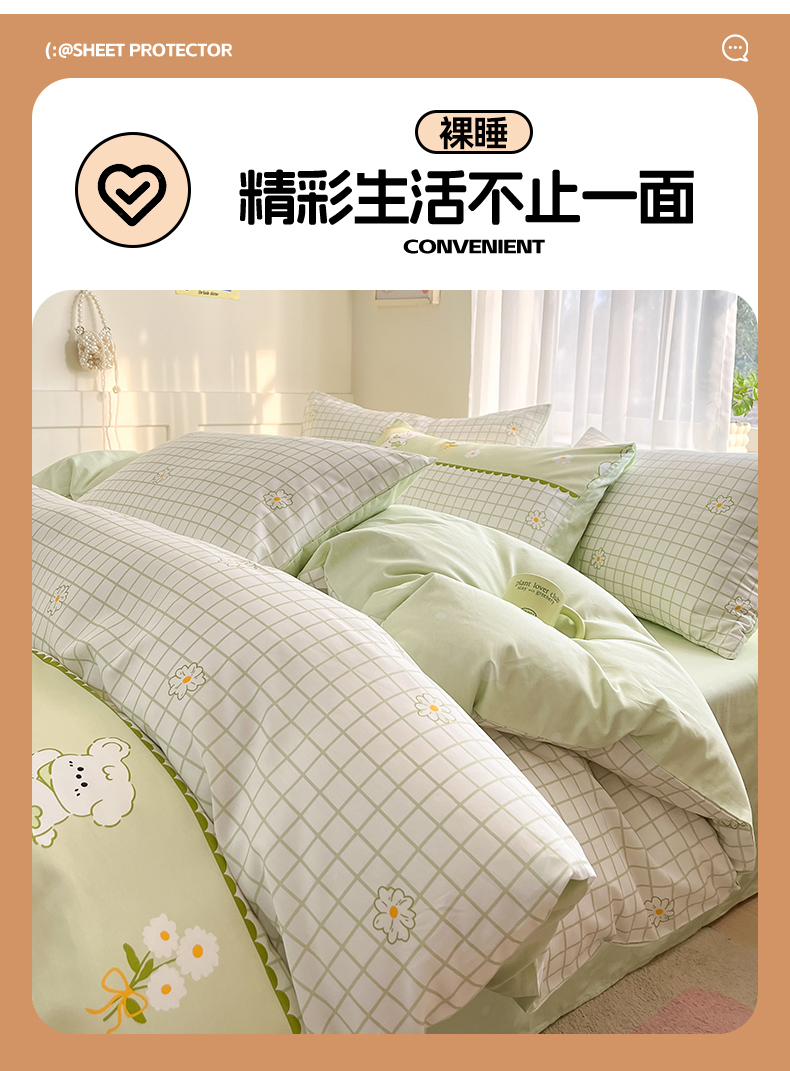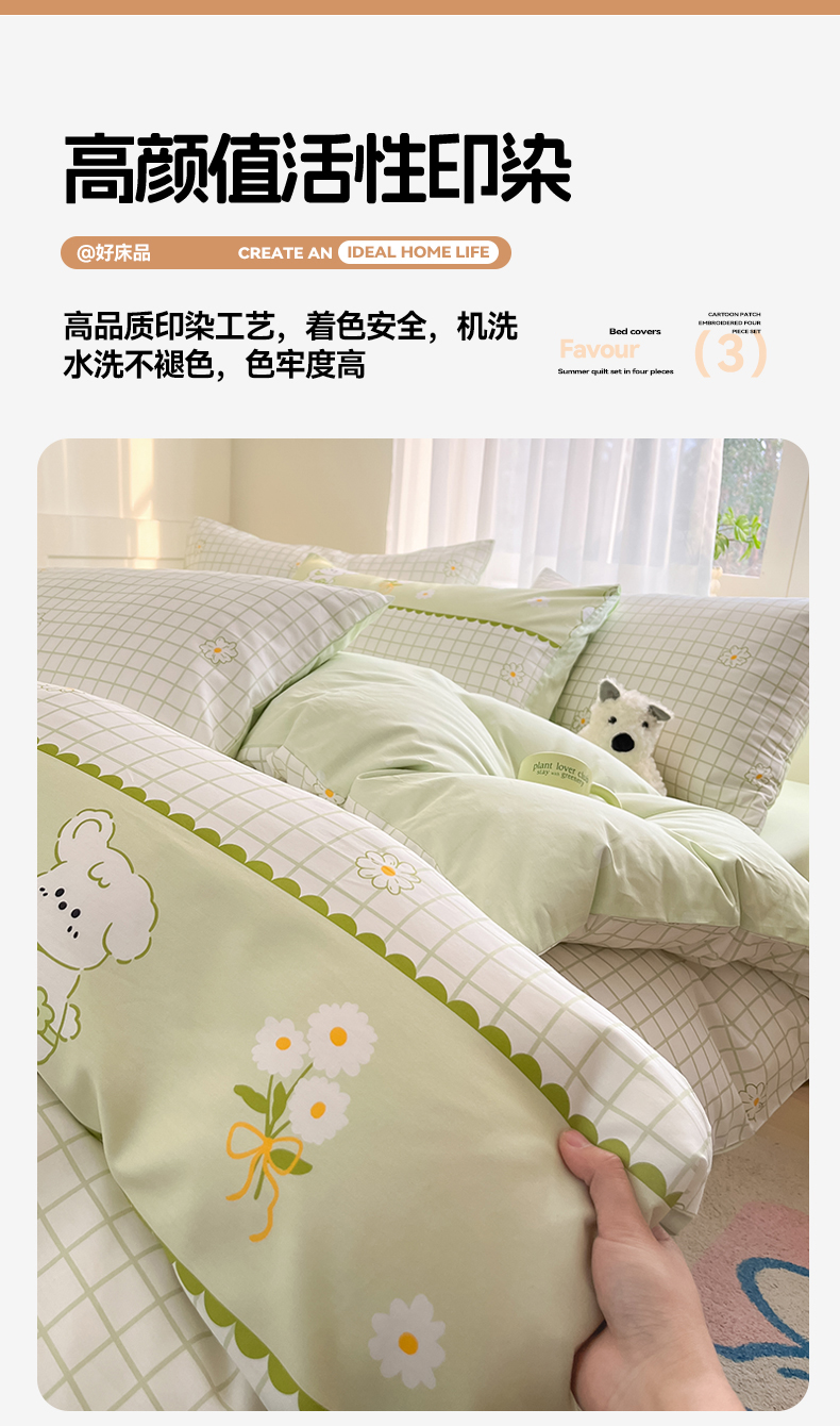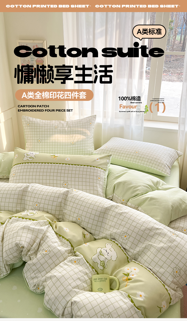 商品名称: 本制 2025新款12868全棉印花四件套 格子比熊