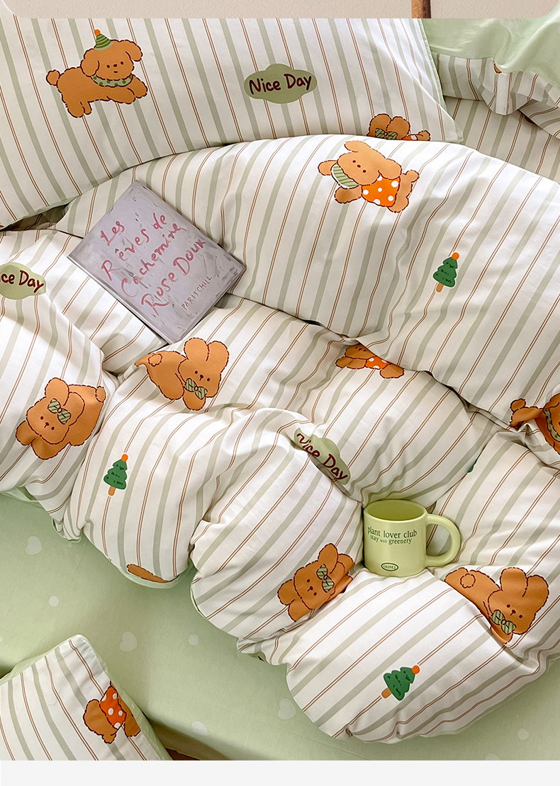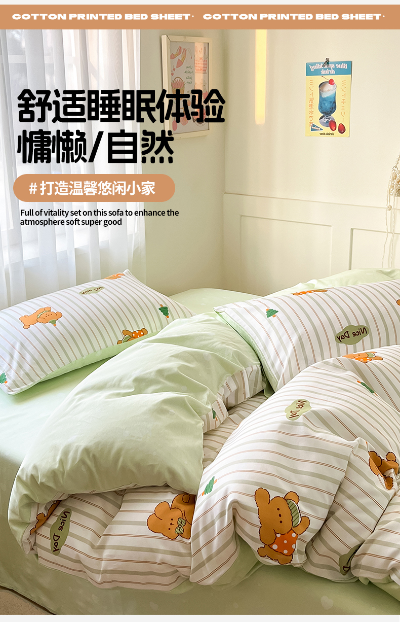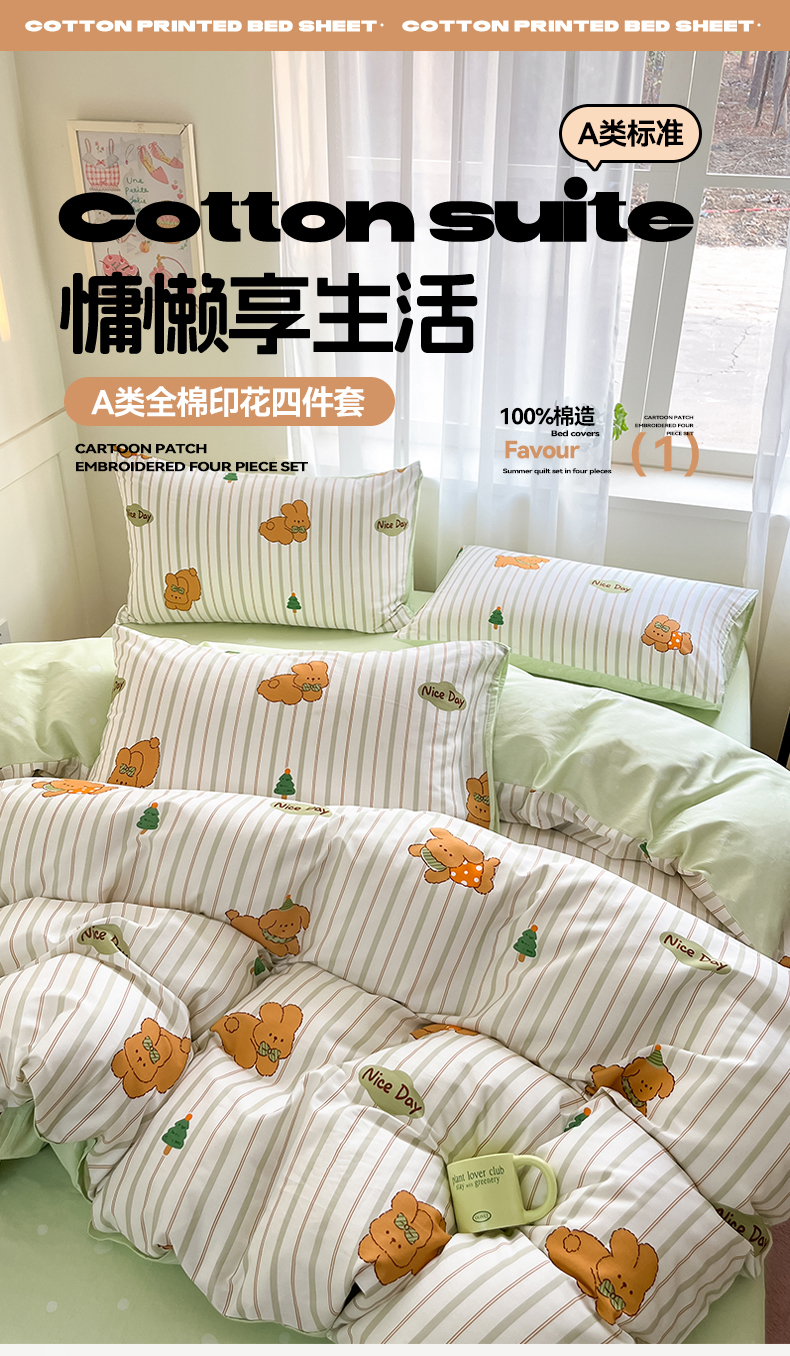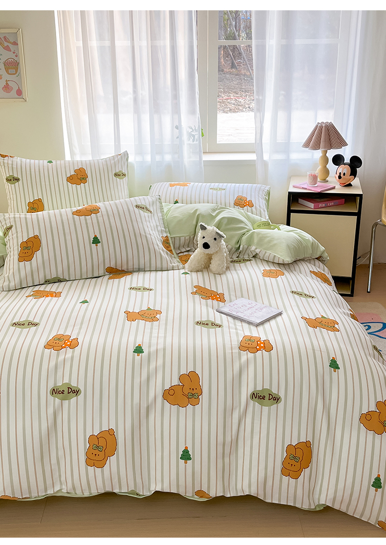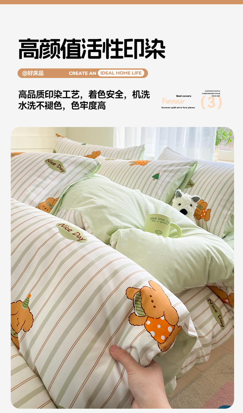 本制 2025新款12868全棉印花四件套 兔宝-绿