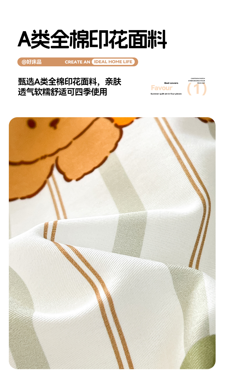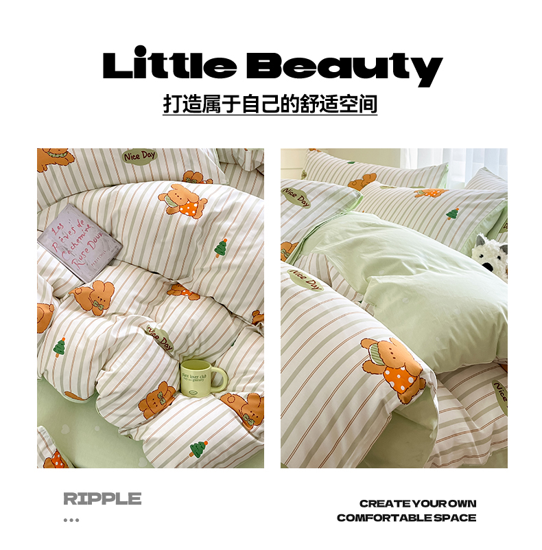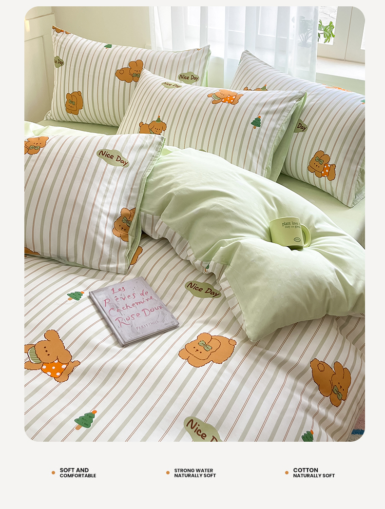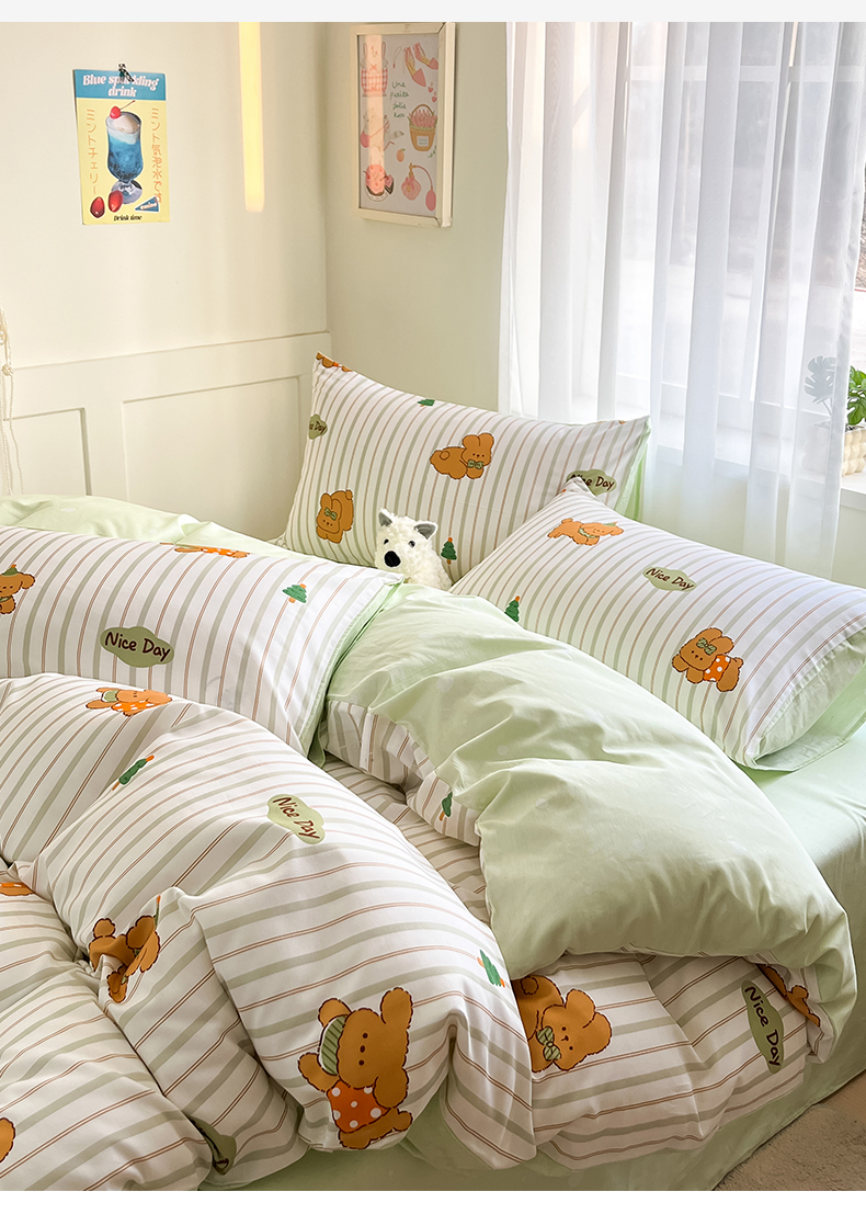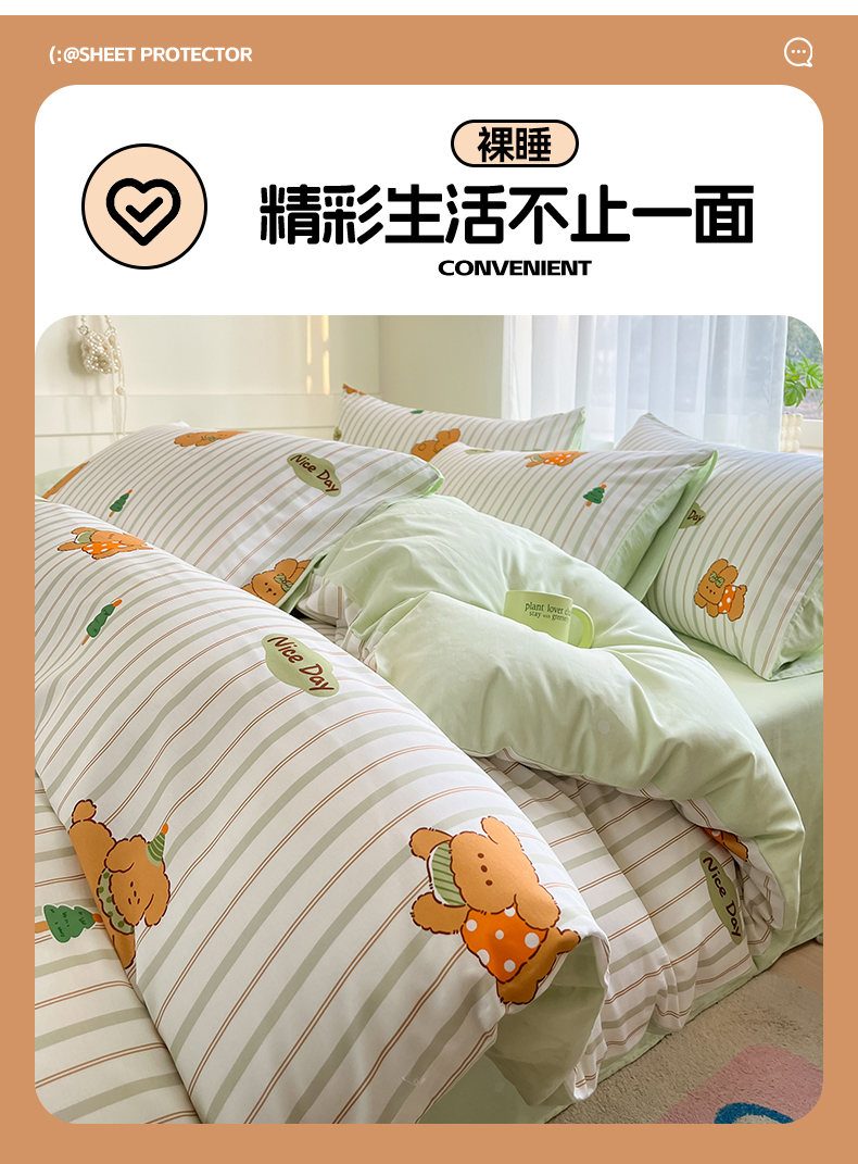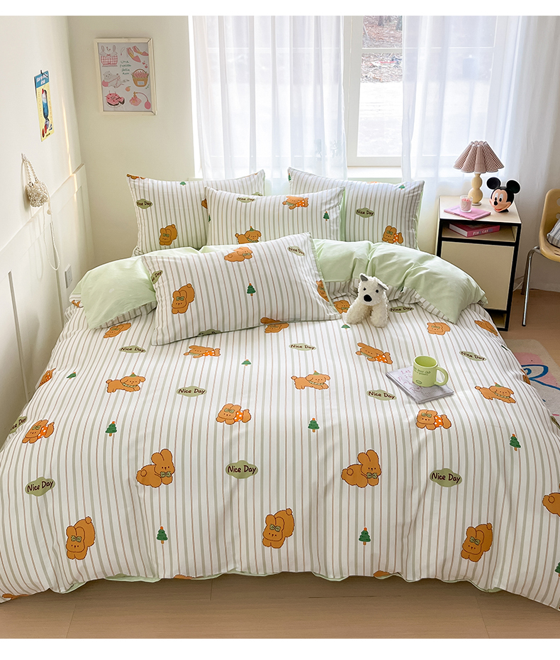 本制 2025新款12868全棉印花四件套 兔宝-绿