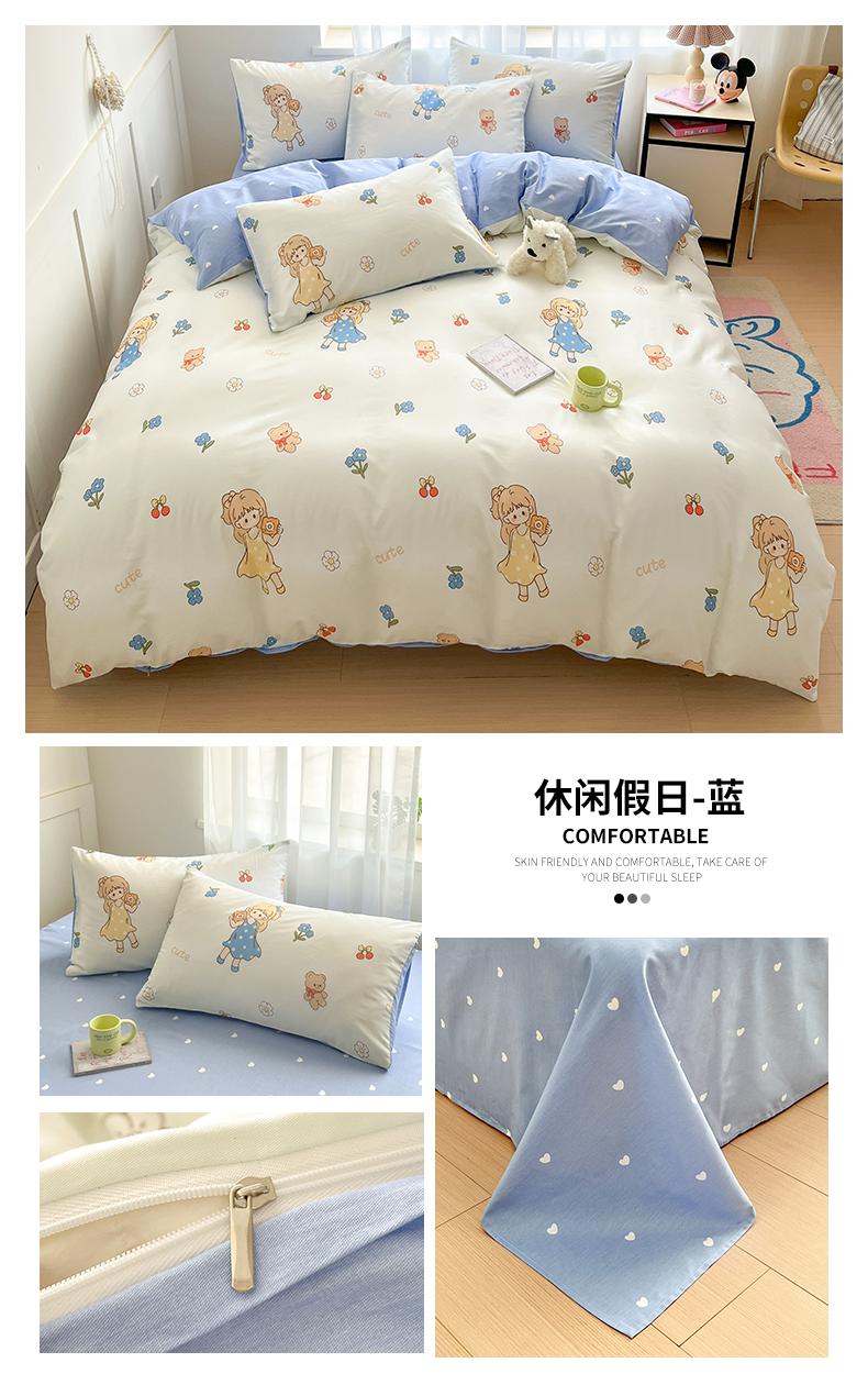 (总)本制 2025新款12868全棉纯棉印花卡通学生三件套宿舍上下铺三件套,假日小狗+爱心蓝,莱米+雏菊黄,萌熊乐园+爱心蓝,萌熊乐园-蓝+雏菊黄,棉花糖+领结粉,泡芙+爱心蓝,汪星漫步+领结粉,汪星漫步-蓝+领结粉