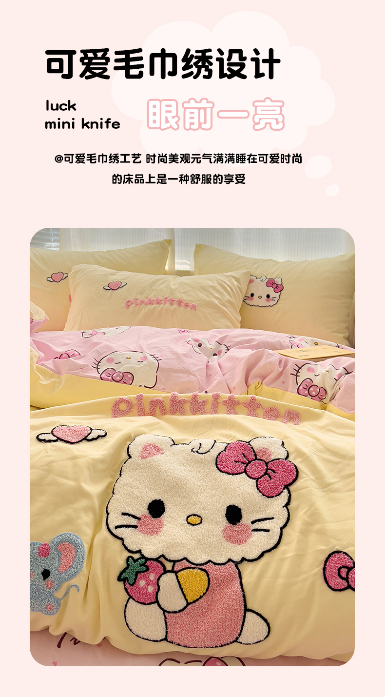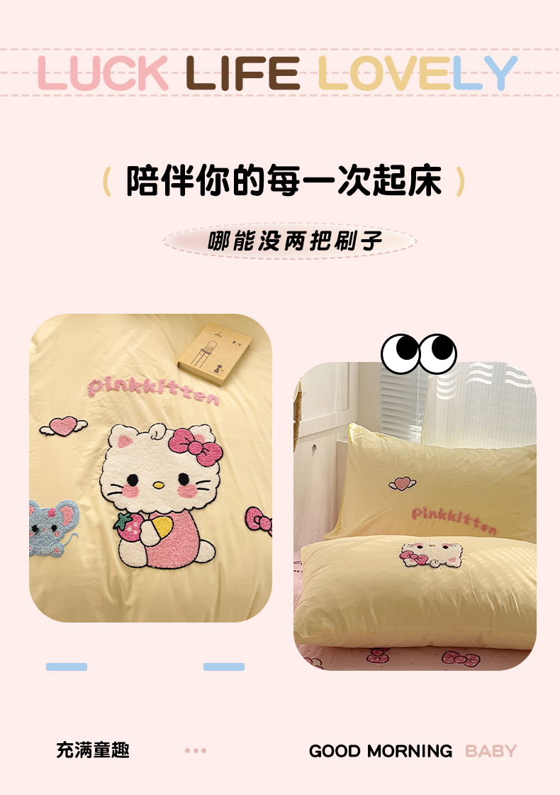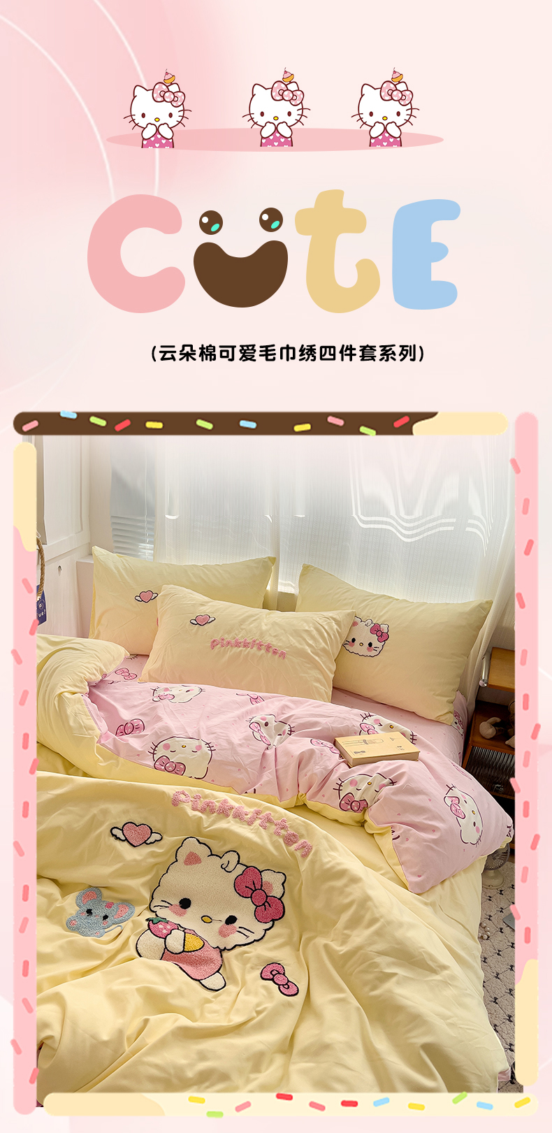 当前位置: 91家纺网 > 商品网购 > 床品套件 > 四件套 > 其它四件套 > 罗亿家纺 2025新款云朵棉可爱毛巾绣系列四件套 可爱小猫-黄