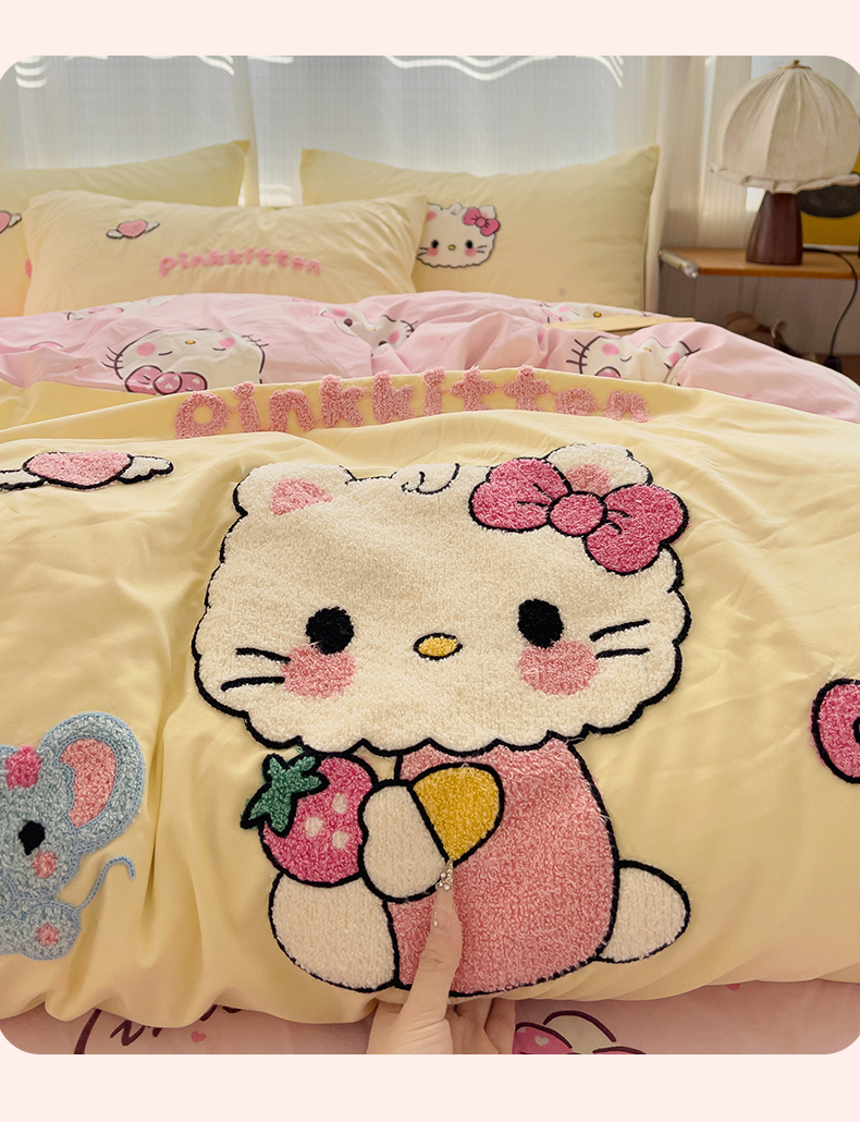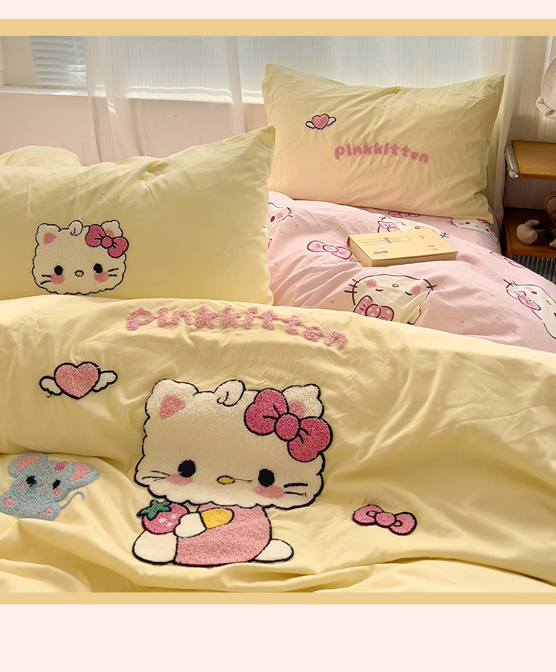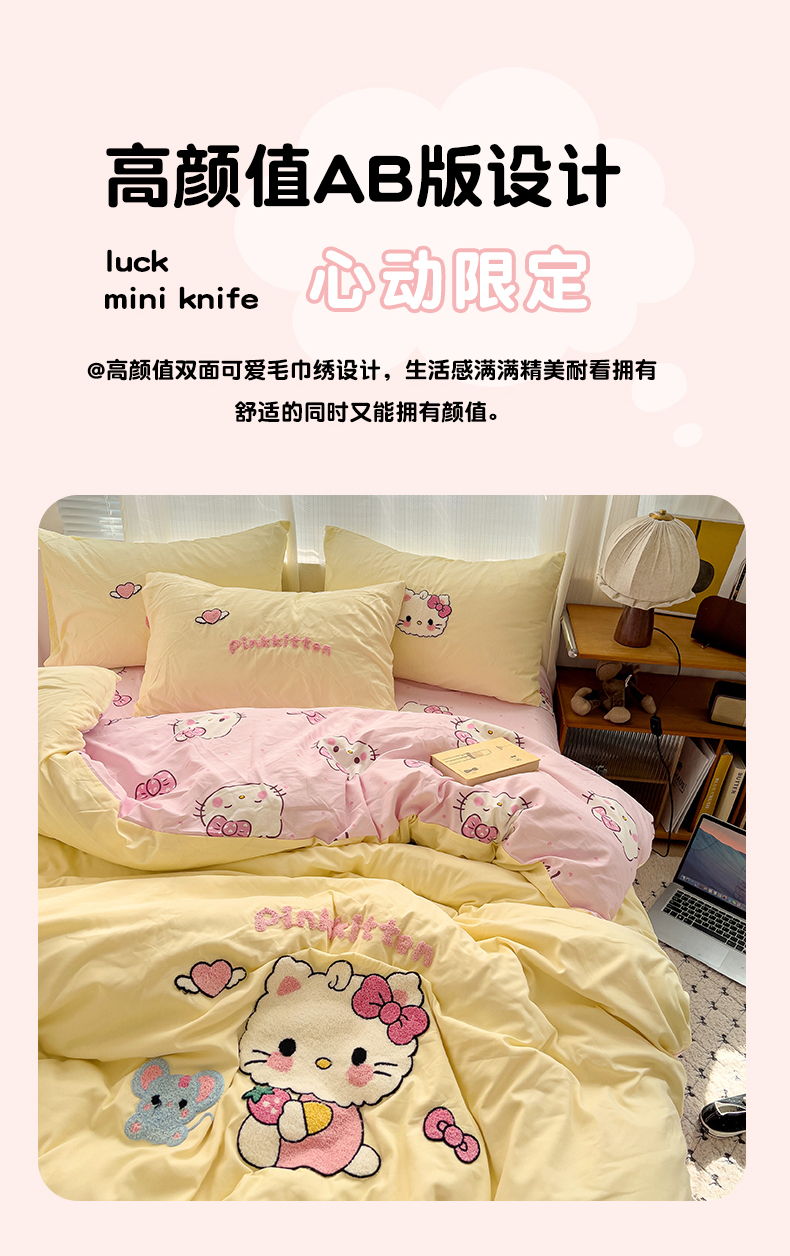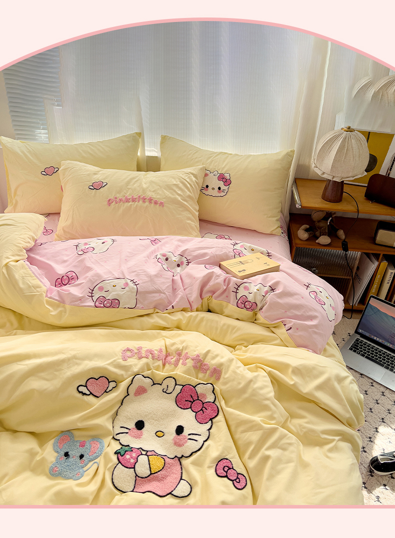 当前位置: 91家纺网 > 商品网购 > 床品套件 > 四件套 > 其它四件套 > 罗亿家纺 2025新款云朵棉可爱毛巾绣系列四件套 可爱小猫-黄