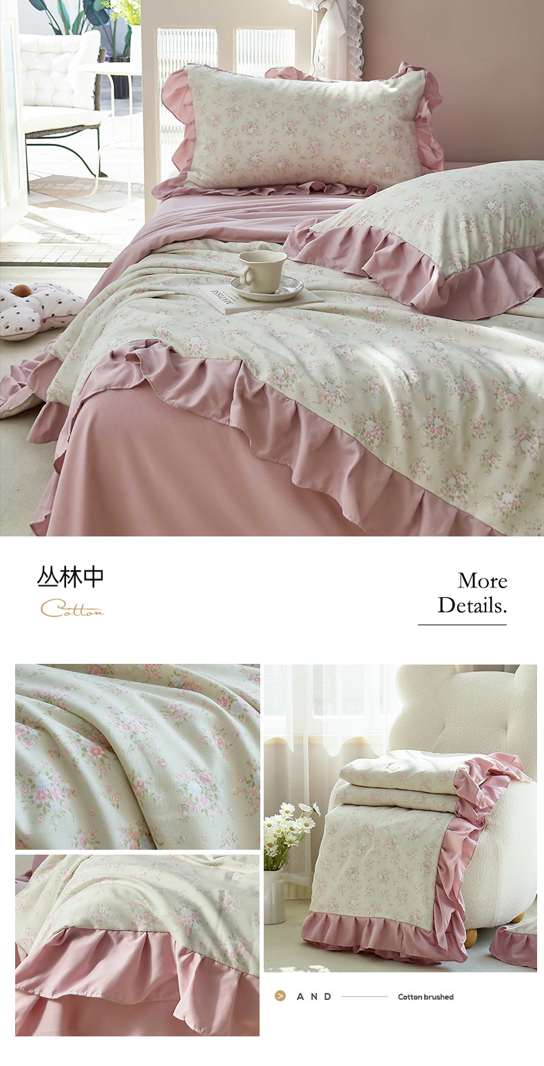 (总)梦莱斯 2025新款田园碎花纯棉花边四件套-床盖款,采薇,花精灵,花开半夏,莱茵,恋爱季,绿叶仙踪,糜花似锦,糜花熙悦,秘境花园