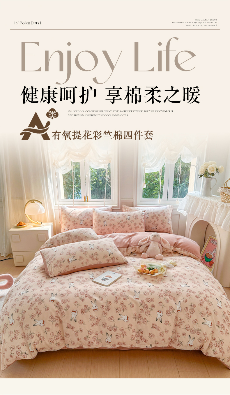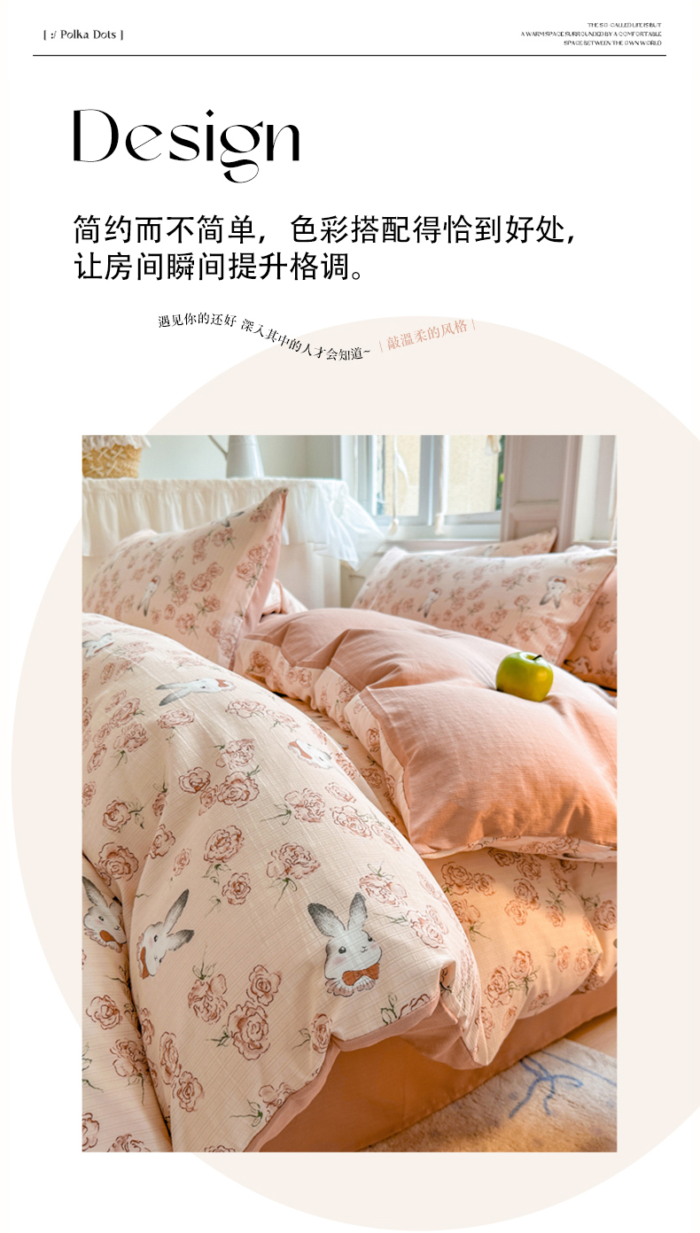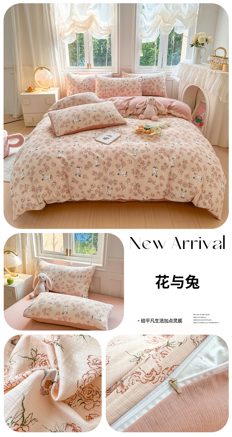 当前位置: 91家纺网 > 商品网购 > 床品套件 > 四件套 > 其它四件套 > 晚爱家纺(原晚安家居) 2025新款A类双层纱有氧提花彩竺棉小竺棉四件套花与兔