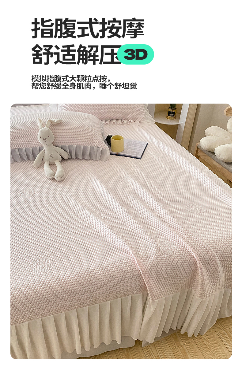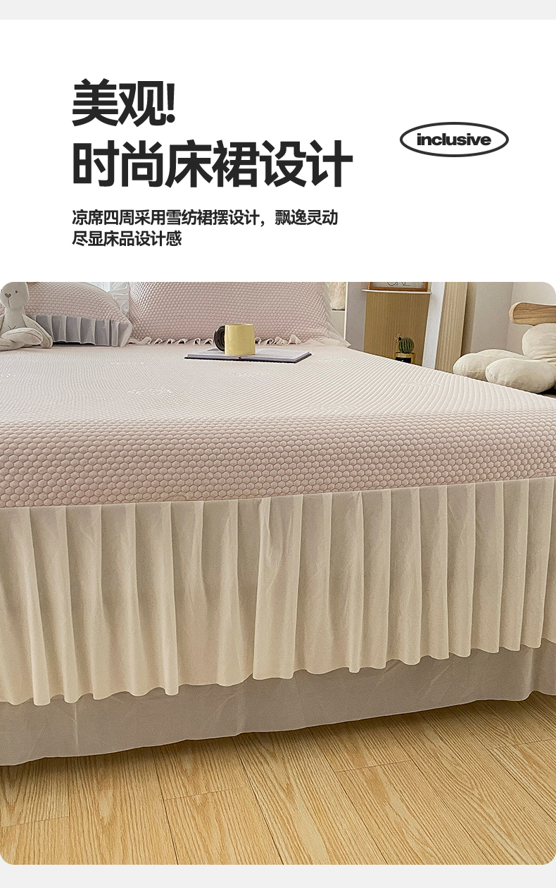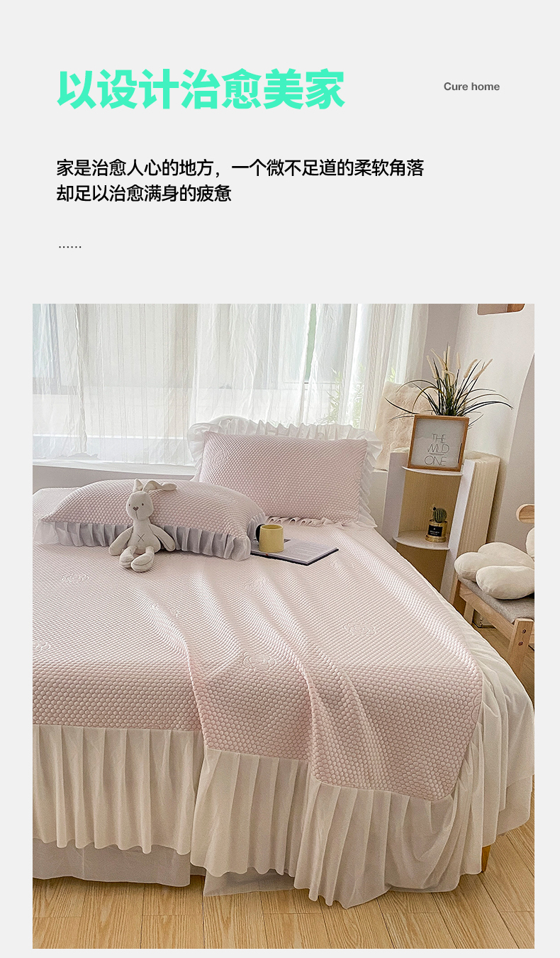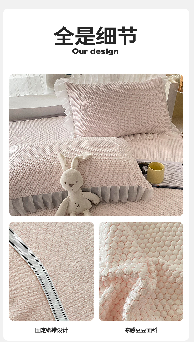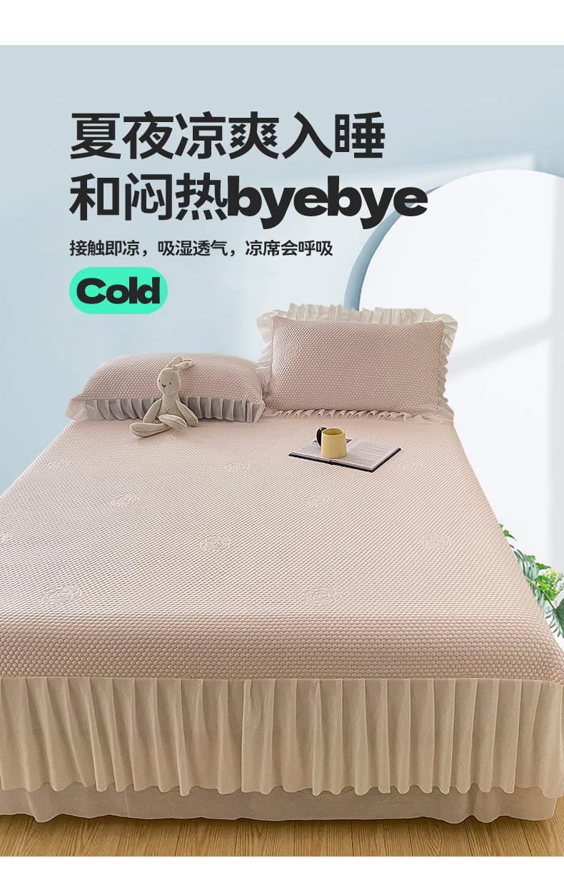 • 91家纺网 家纺一手货源 找家纺 卡初家居(原微来) 2025新款抗菌冰豆豆花朵系列床笠床裙款凉席冰豆豆花朵系列-床裙款 蜜桃粉