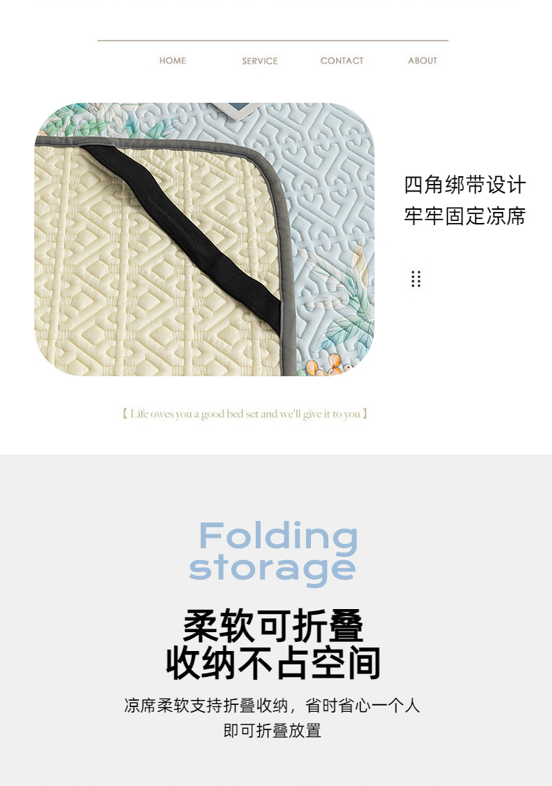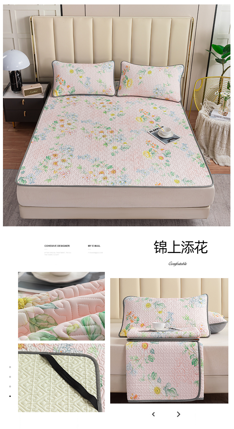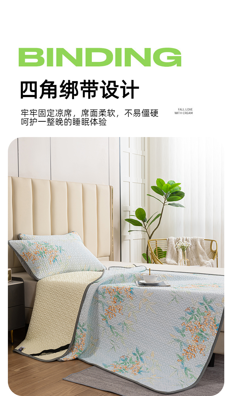 美丽折家纺 2025新款云母冰丝乳胶凉席三件套系列 落落繁花