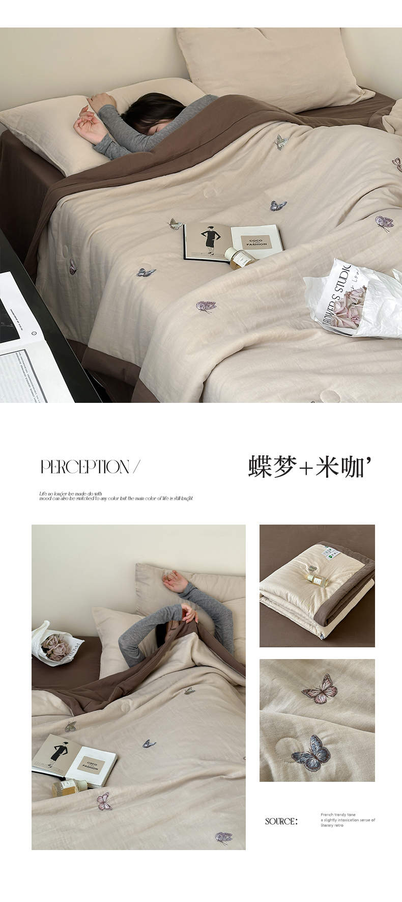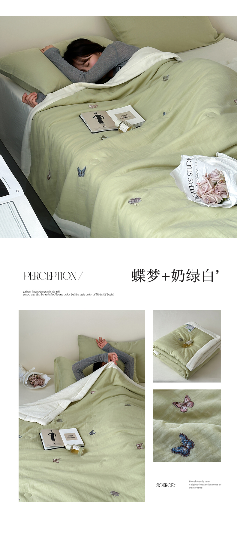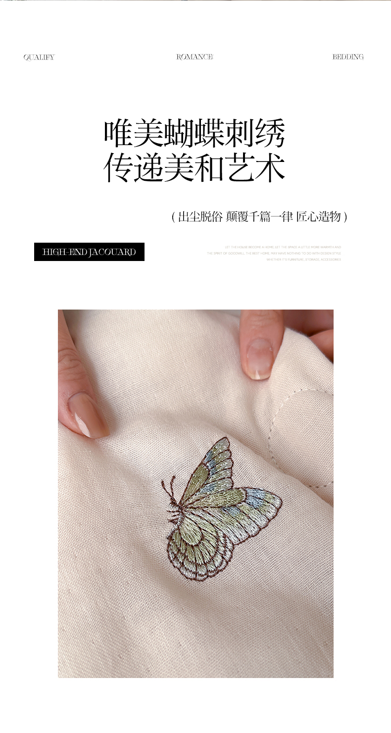当前位置: 91家纺网 > 商品网购 > 床品套件 > 四件套 > 夏被四件套 > 一加一 2025新款A类全棉双层皱皱纱蚕蛹蛋白夏被四件套(蝶梦系列) 蝶梦-粉豆沙