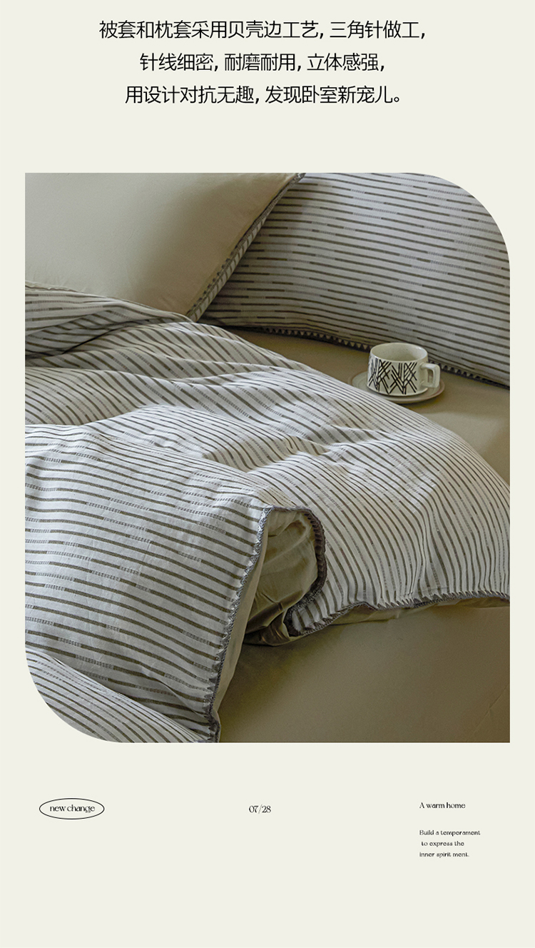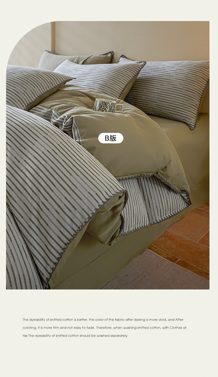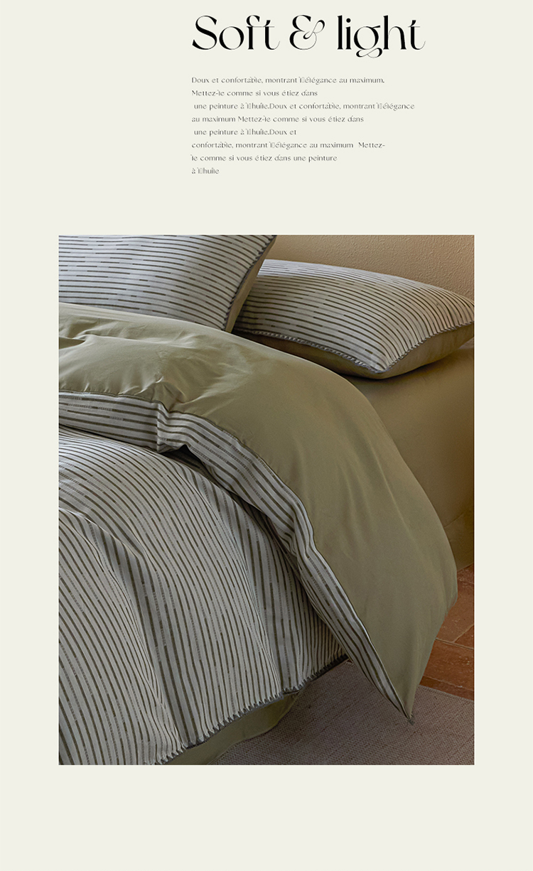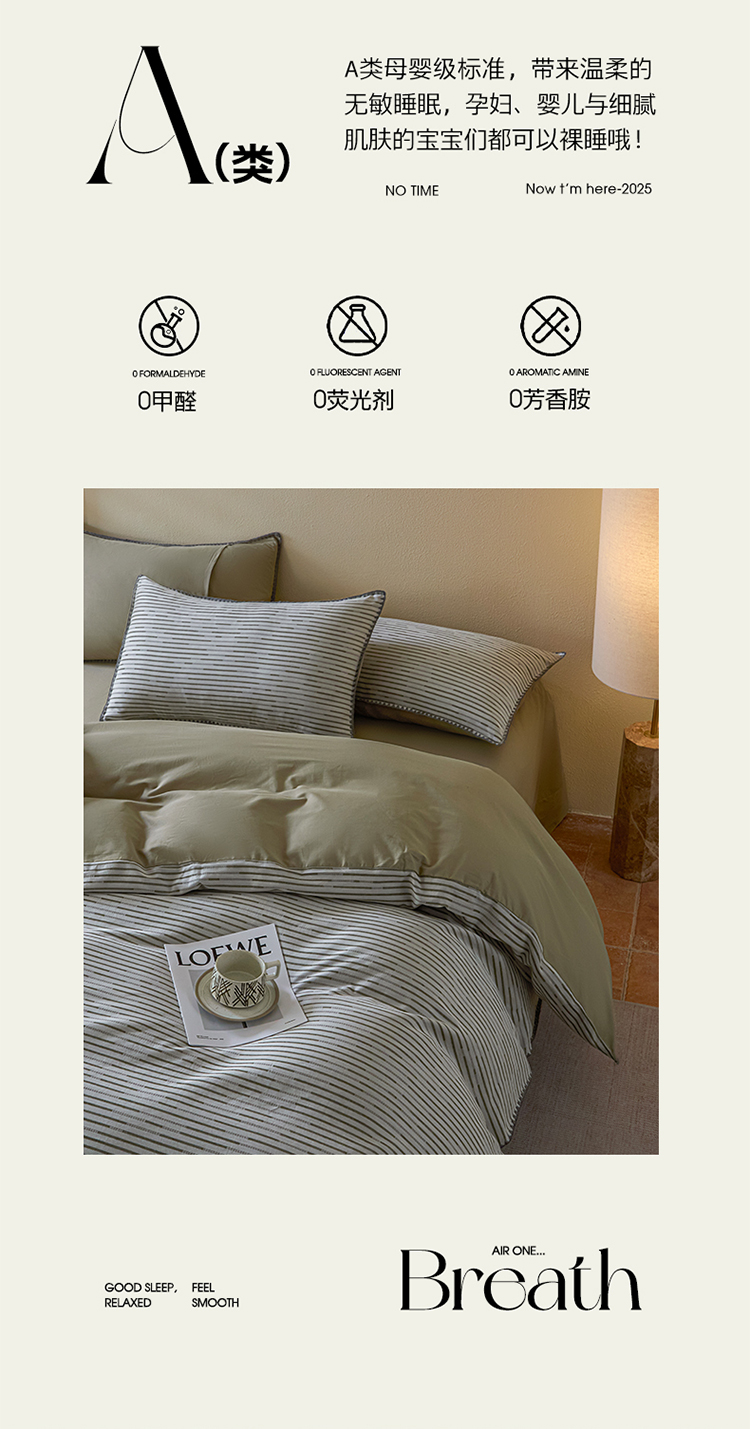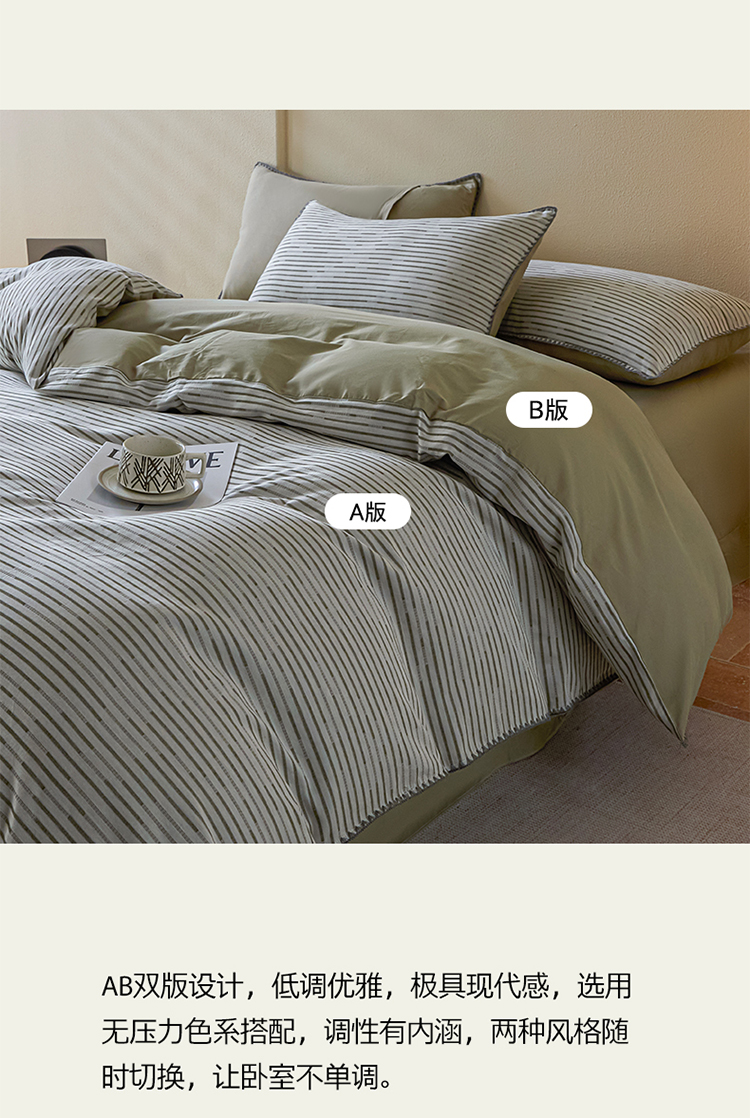 商品名称:2025新款亲肤全棉三层纱提花四件套 韵律-黛绿