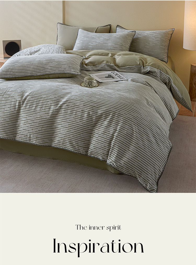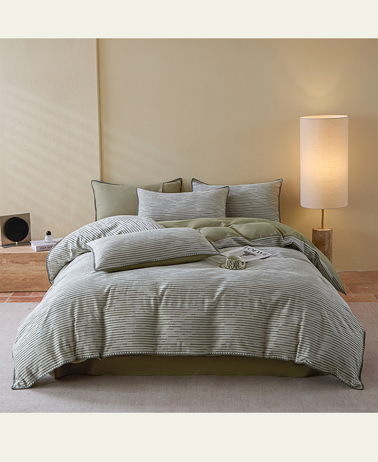 2025新款亲肤全棉三层纱提花四件套 韵律-黛绿