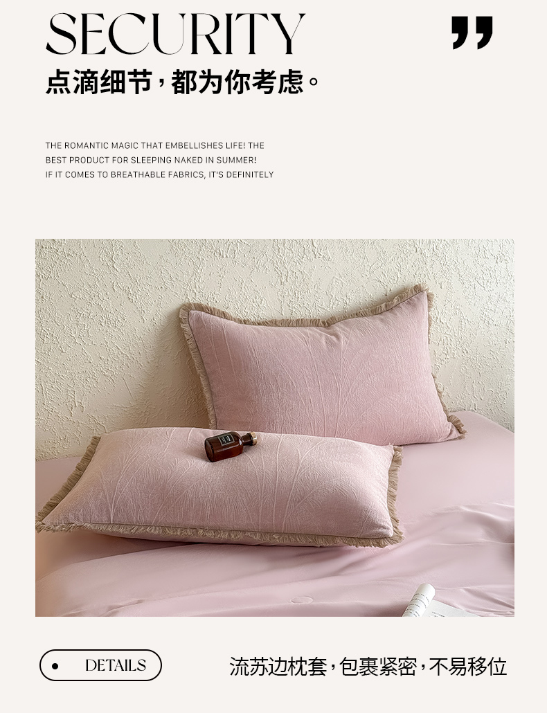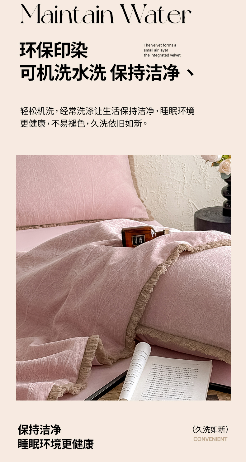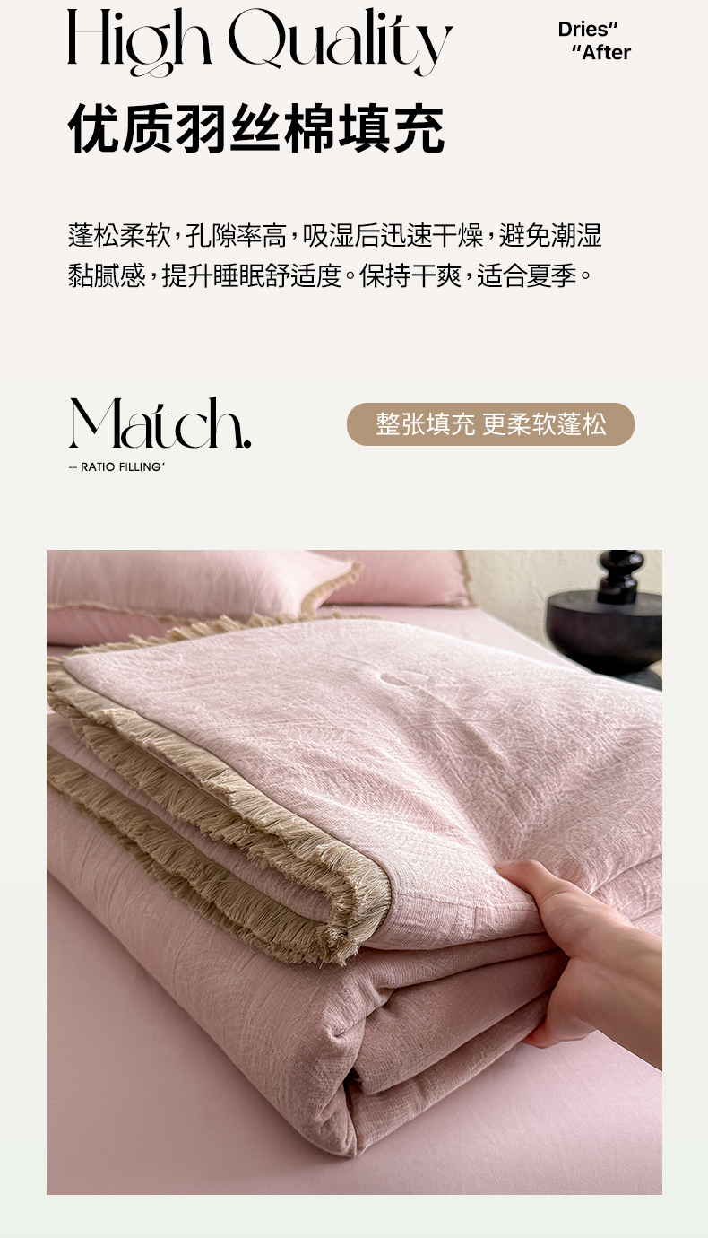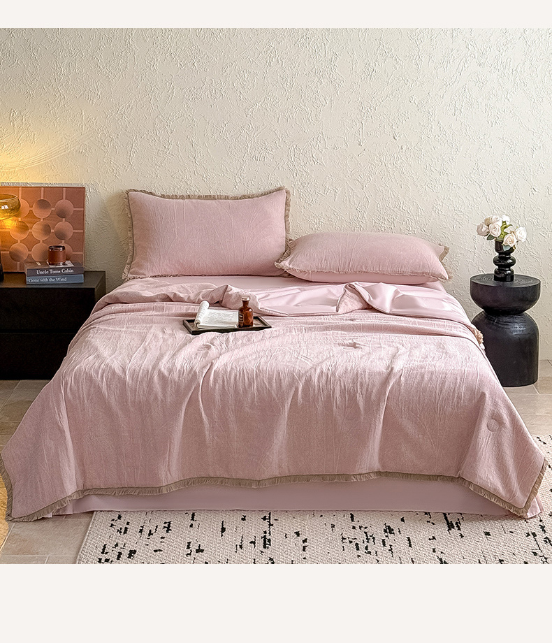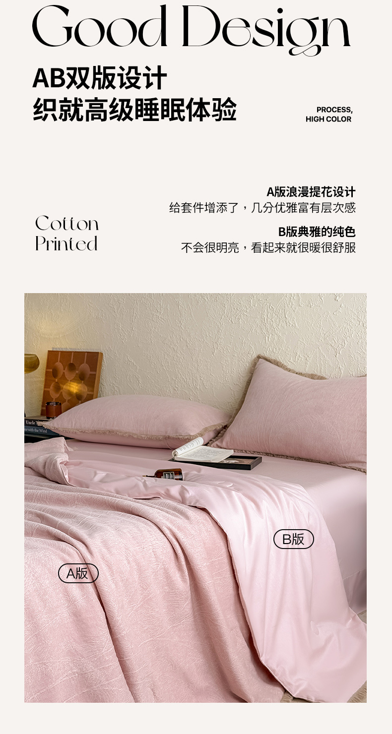 当前位置: 91家纺网 > 商品网购 > 床品套件 > 四件套 > 全棉活性四件套 > 2025新款全棉三层纱提花夏被四件套 竹影-柔粉