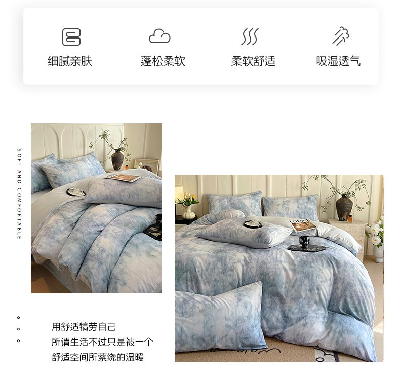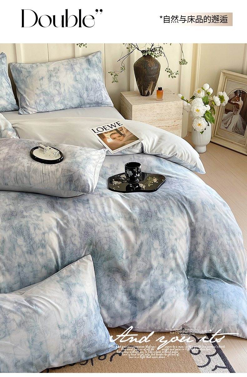 2025新款仿色织提花数码印花水洗棉四件套 春纱 蓝