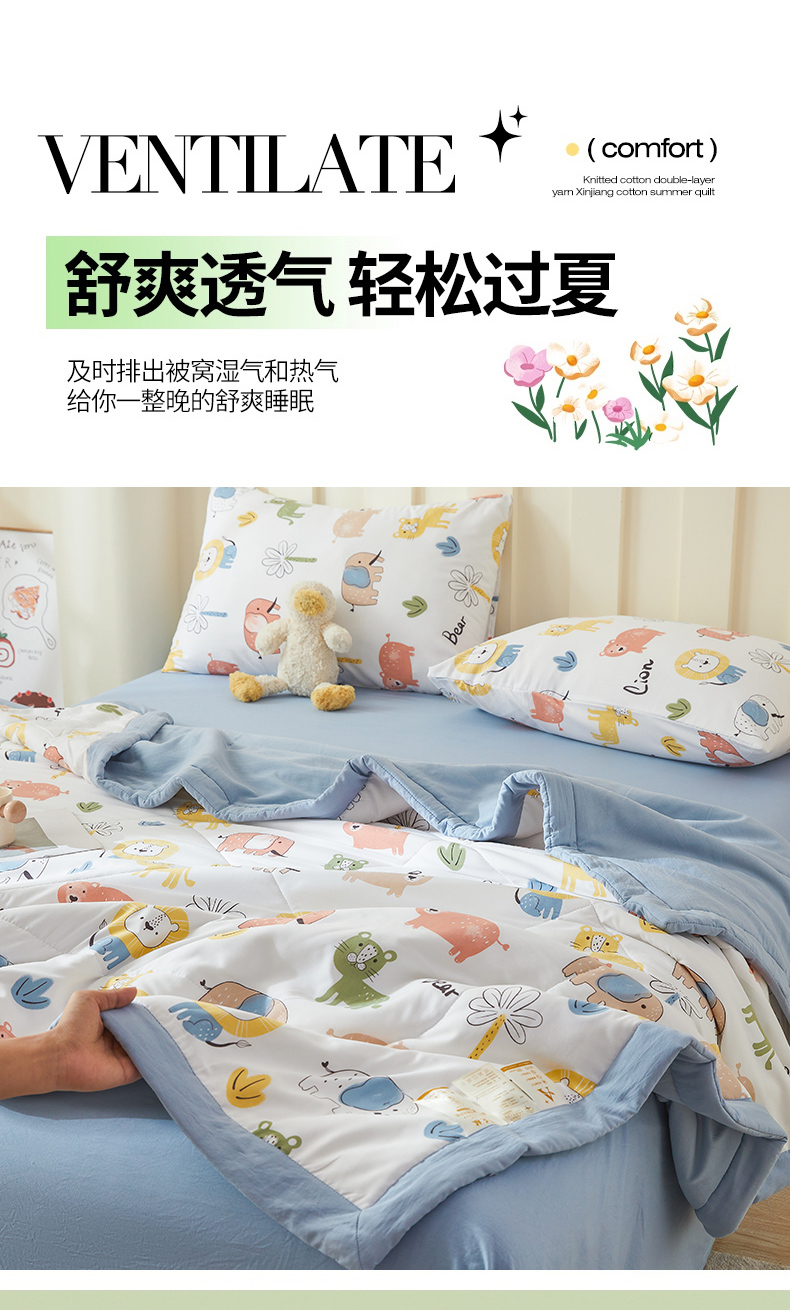 商品名称:2025新款小花款新疆棉花夏被【棉花含量100%】夏季空调被薄被子可机洗夏凉被 动物乐园