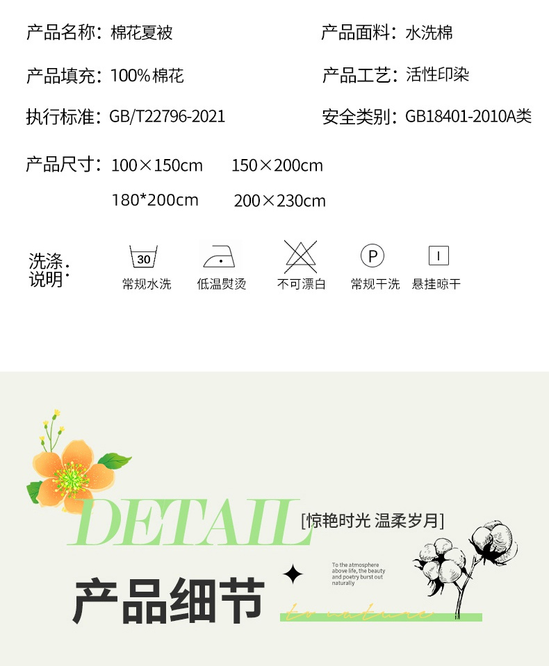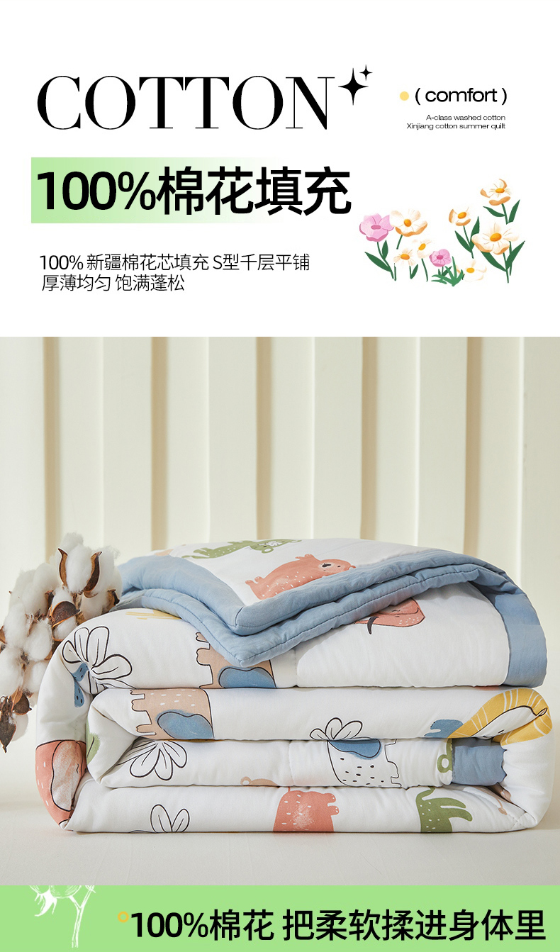 商品名称:2025新款小花款新疆棉花夏被【棉花含量100%】夏季空调被薄被子可机洗夏凉被 硕果