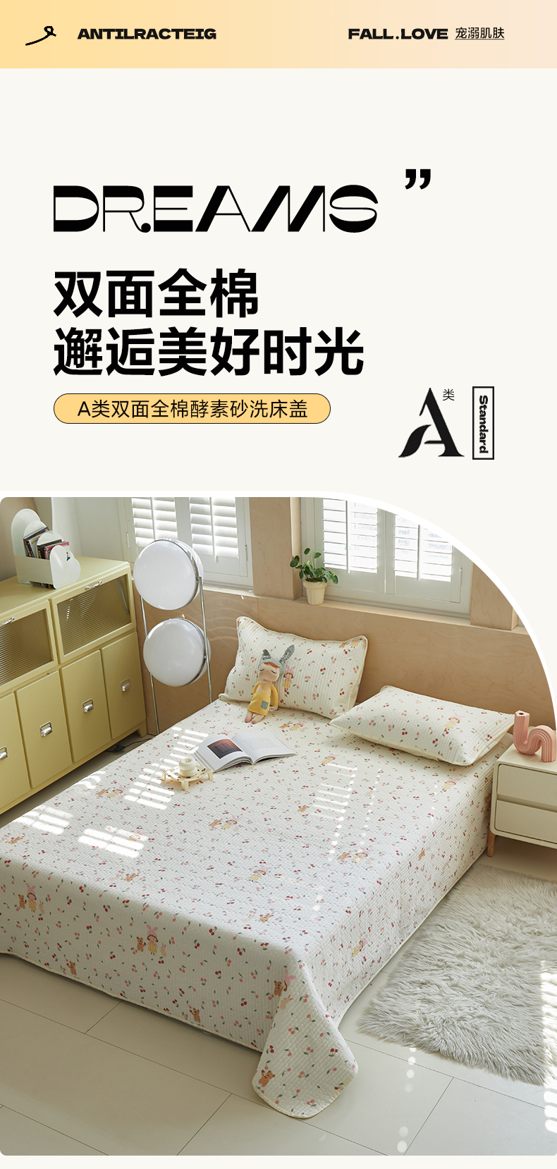 商品名称:舒居家纺 2025新款双面全棉酵素砂洗床盖 花季少女
