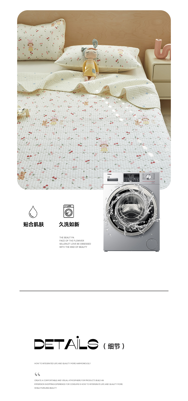 舒居家纺 2025新款双面全棉酵素砂洗床盖 花季少女
