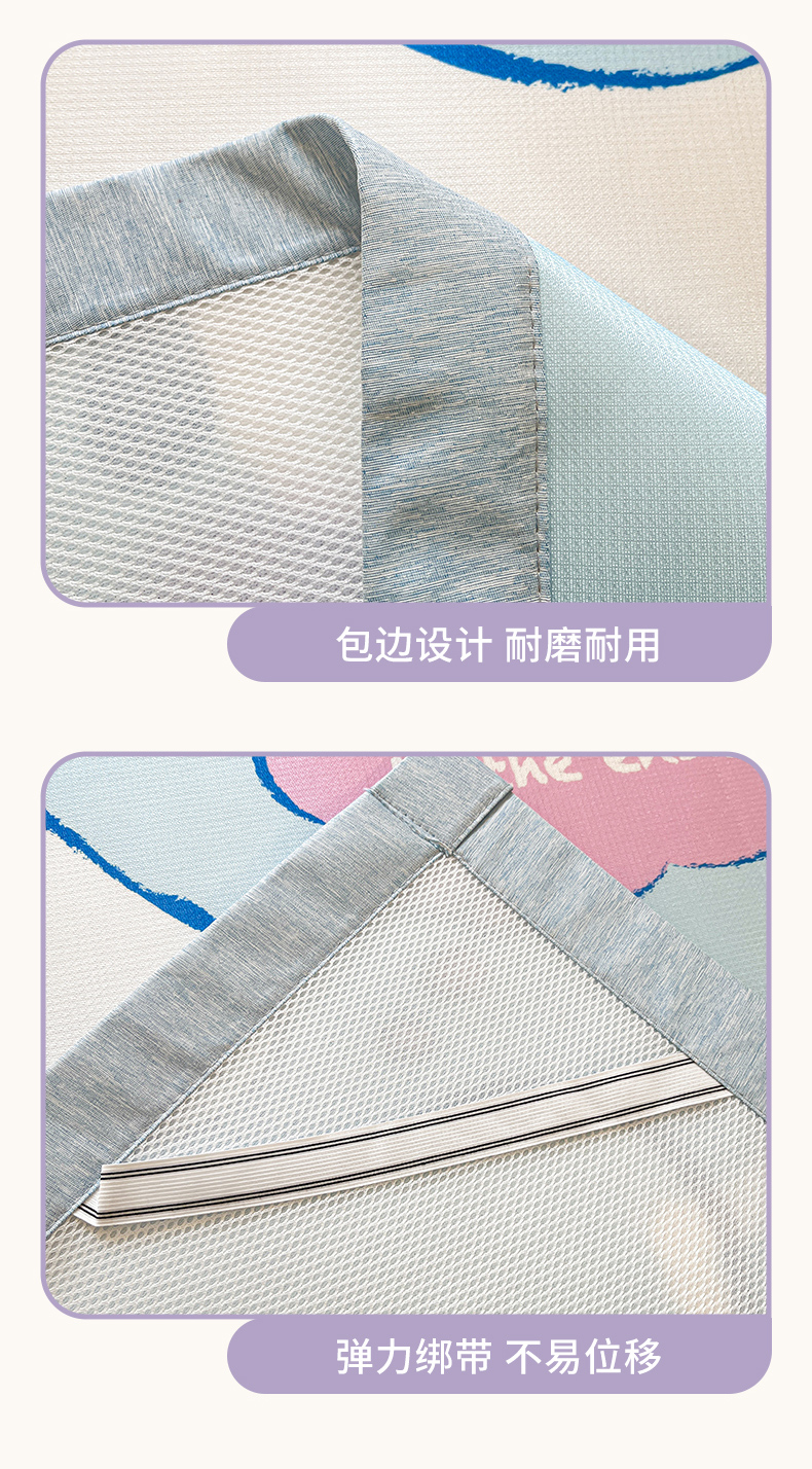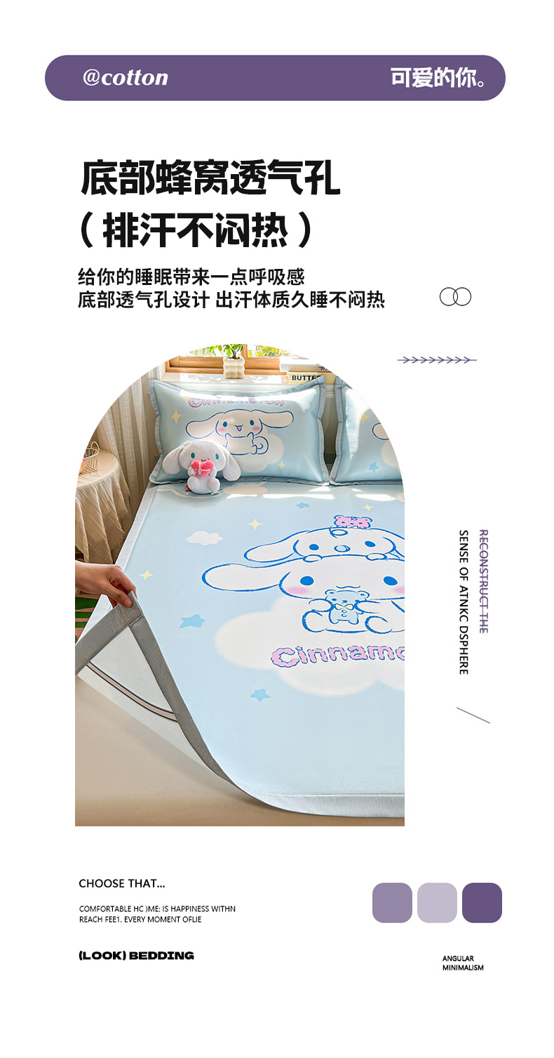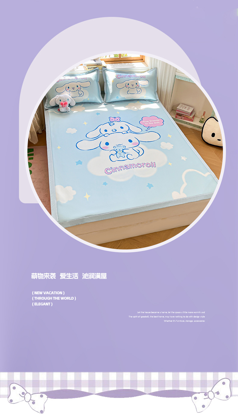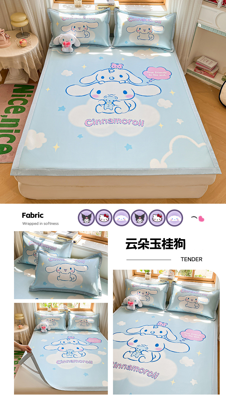 商品名称:博雅 2025新款三丽欧A类大版数码印花1200D冰丝凉席凉席席子 云朵玉桂狗