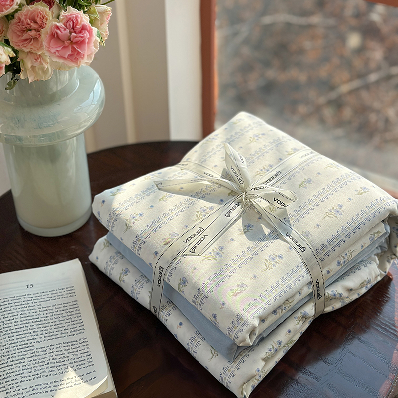 当前位置: 91家纺网 > 商品网购 > 床品套件 > 四件套 > 双层纱四件套 > 麦伦家居 2025新款全棉有氧双层纱简约款系列四件套 茵曼蓝