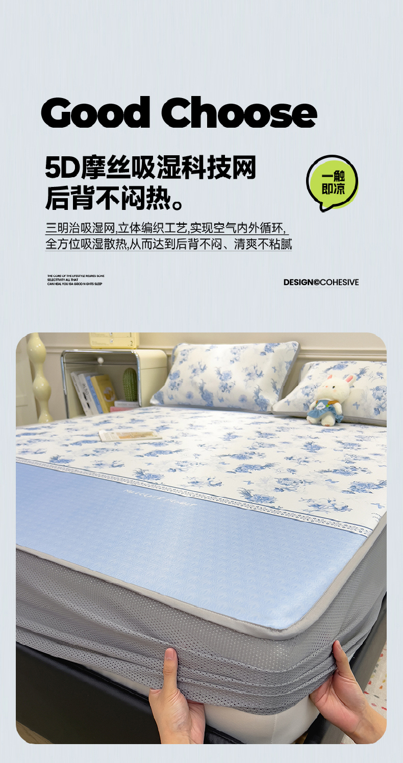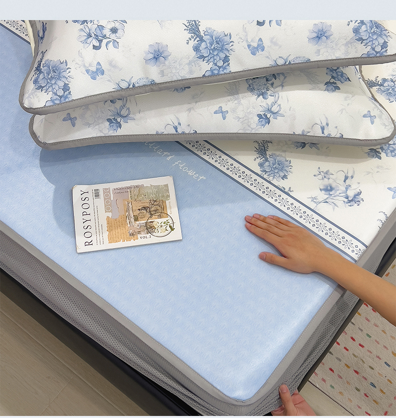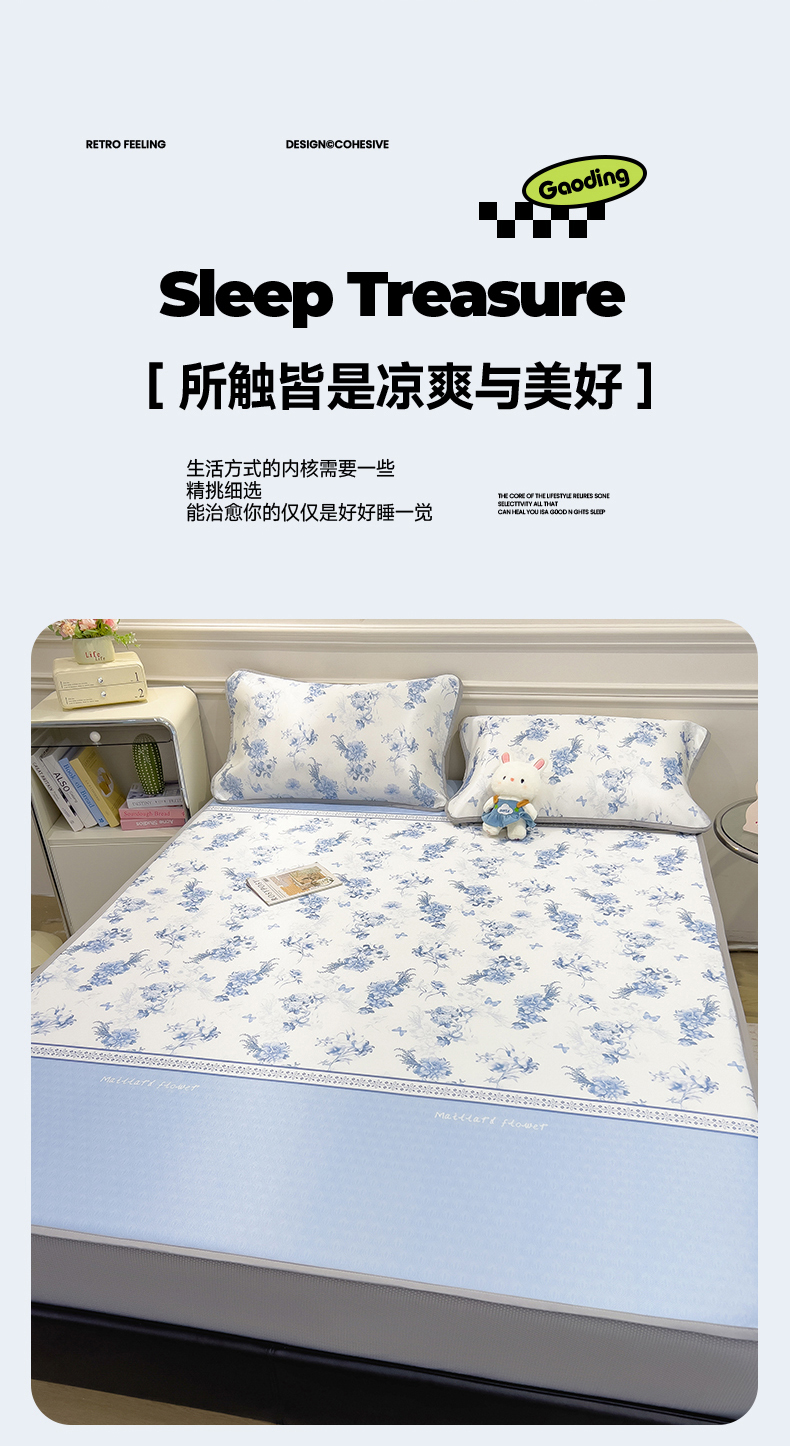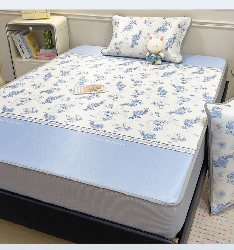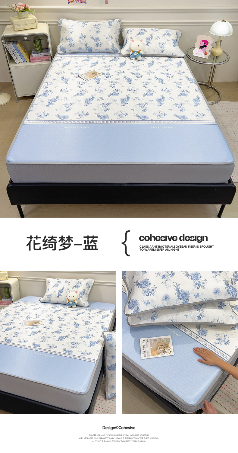 当前位置: 91家纺网 > 商品网购 > 床上用品 > 凉席 > 凉席套件 > 摩妮卡 2025新款小清新碳光冰丝软席床笠款单床笠三件套 花绮梦-蓝