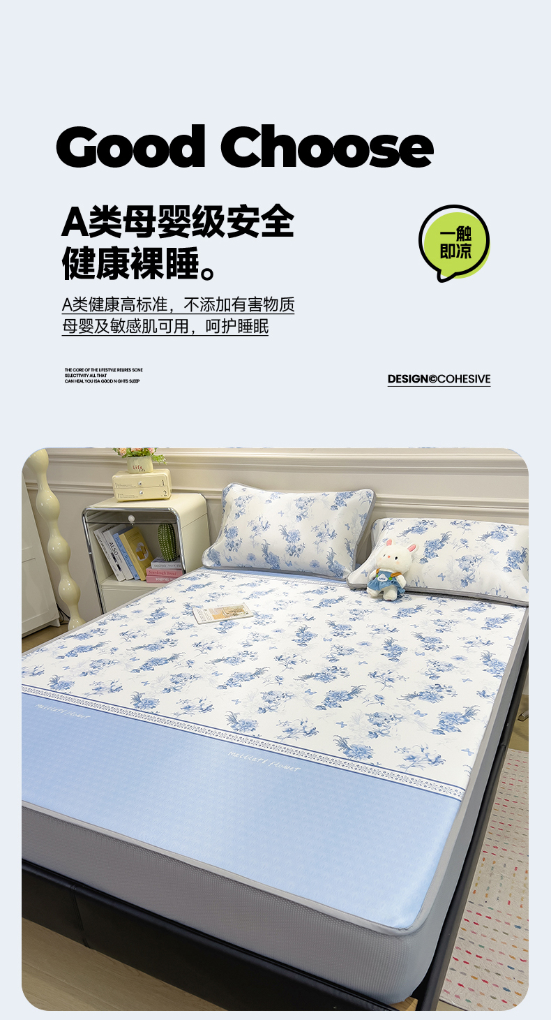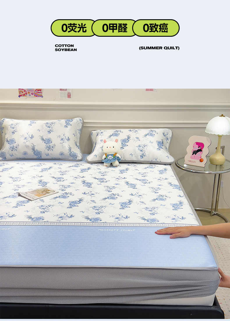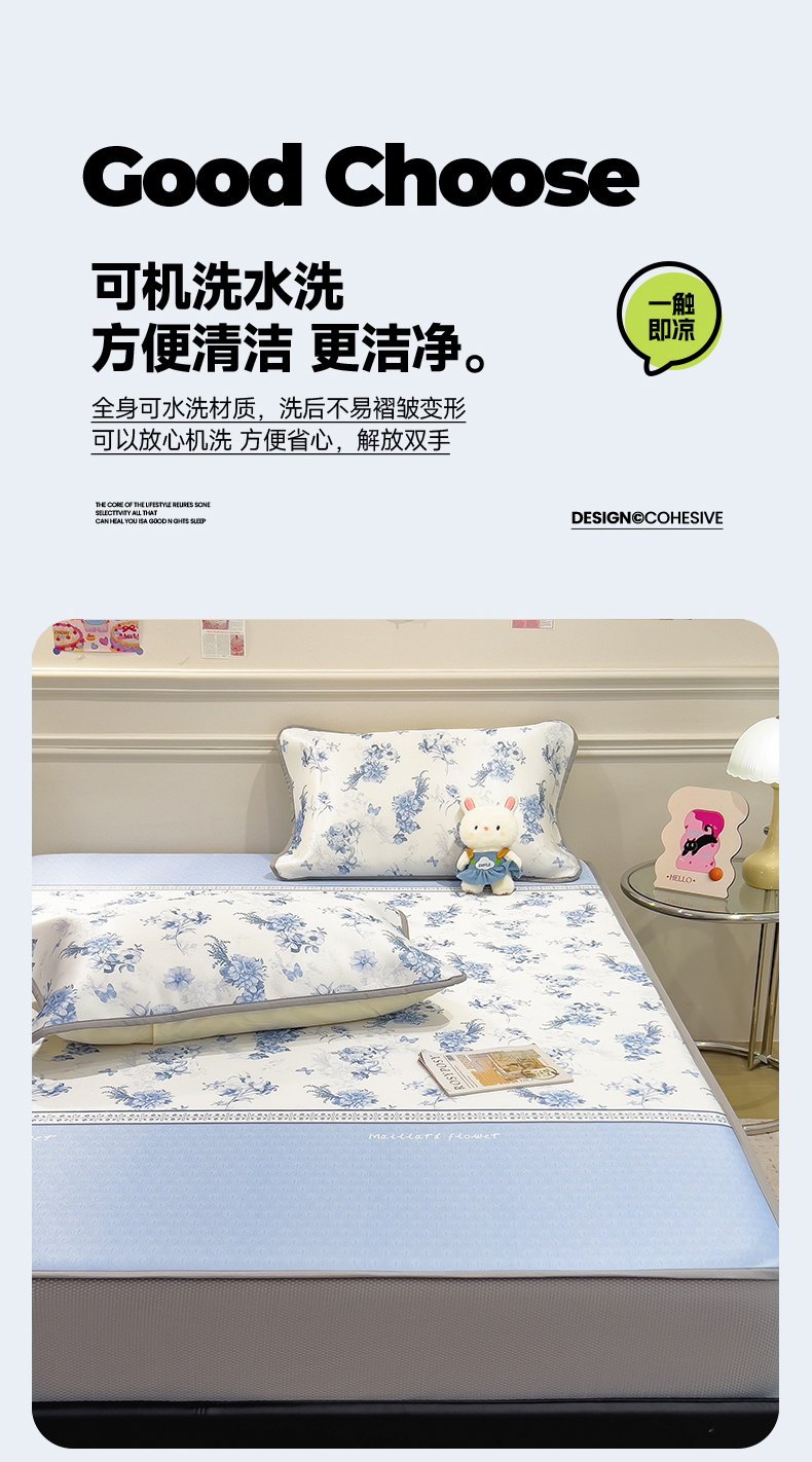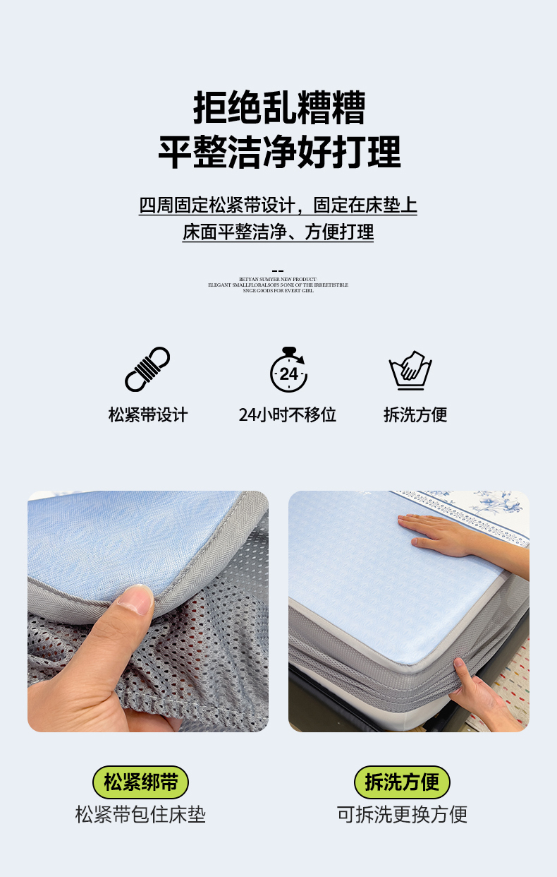 当前位置: 91家纺网 > 商品网购 > 床上用品 > 凉席 > 凉席套件 > 摩妮卡 2025新款小清新碳光冰丝软席床笠款单床笠三件套 花绮梦-蓝