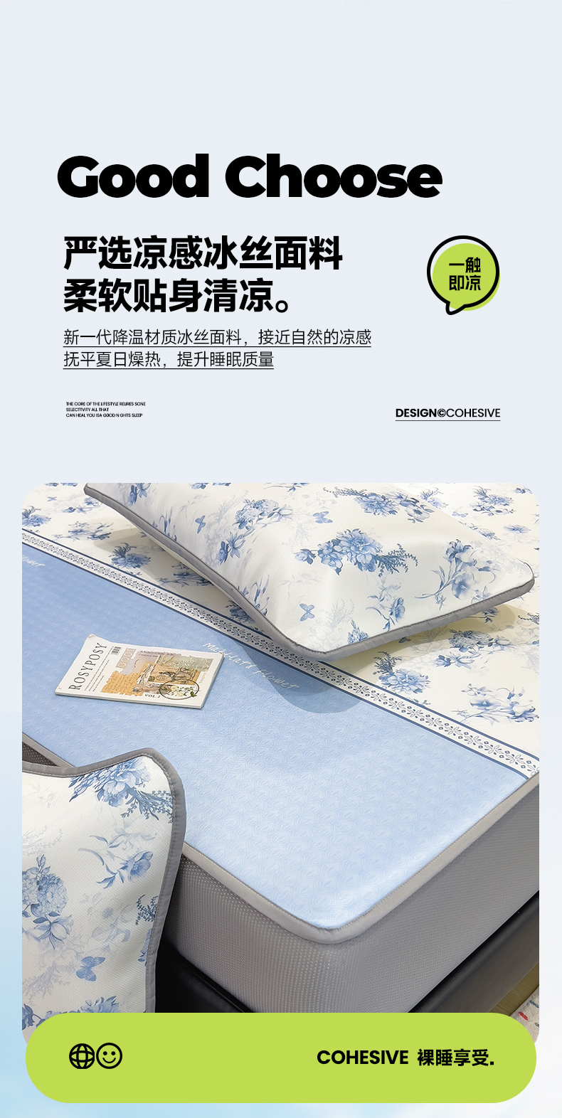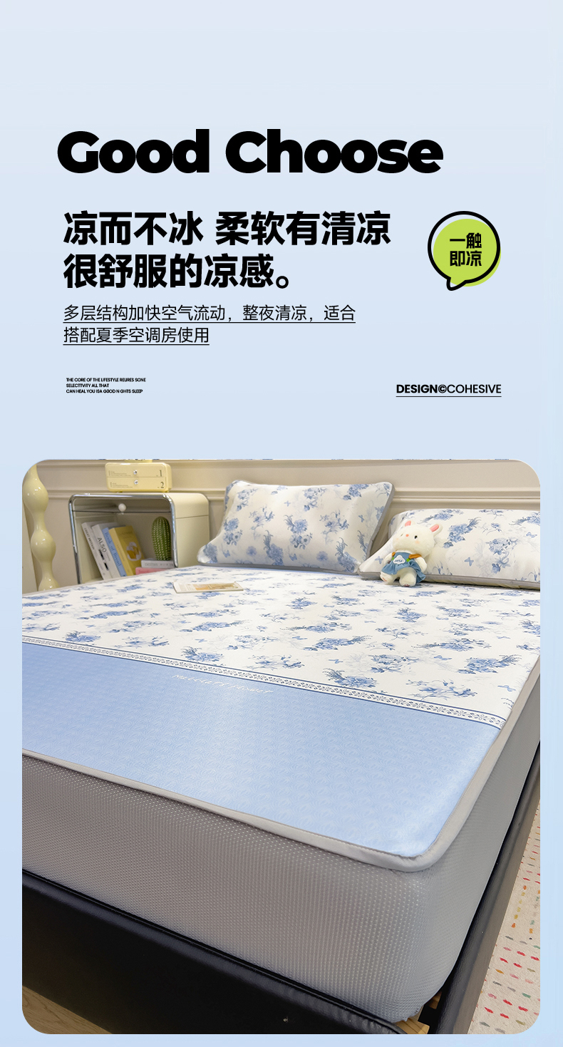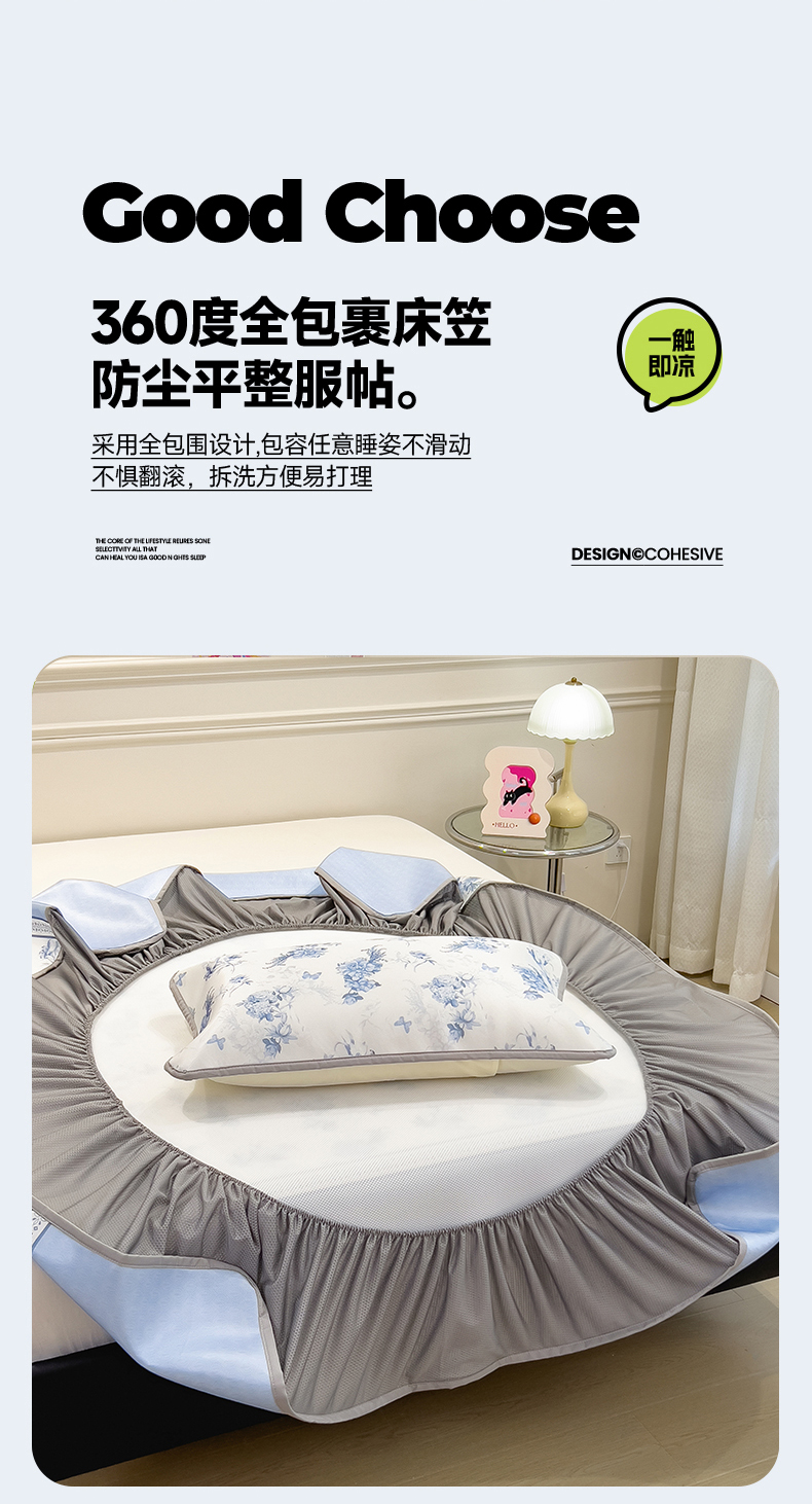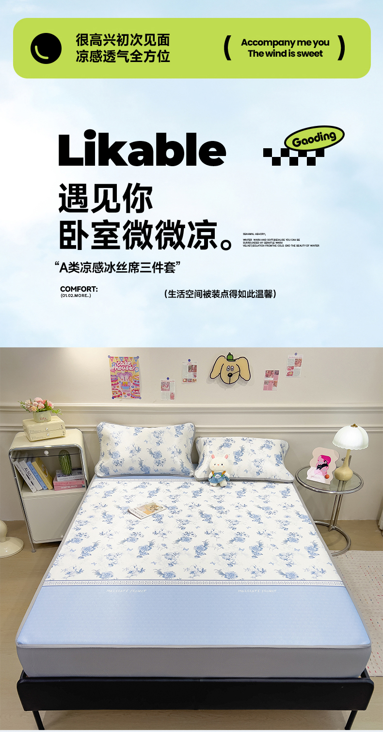 当前位置: 91家纺网 > 商品网购 > 床上用品 > 凉席 > 凉席套件 > 摩妮卡 2025新款小清新碳光冰丝软席床笠款单床笠三件套 花绮梦-蓝