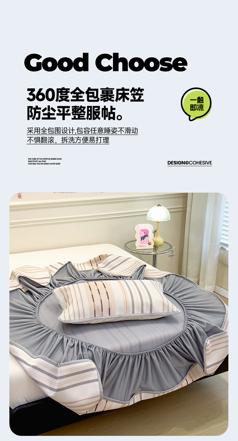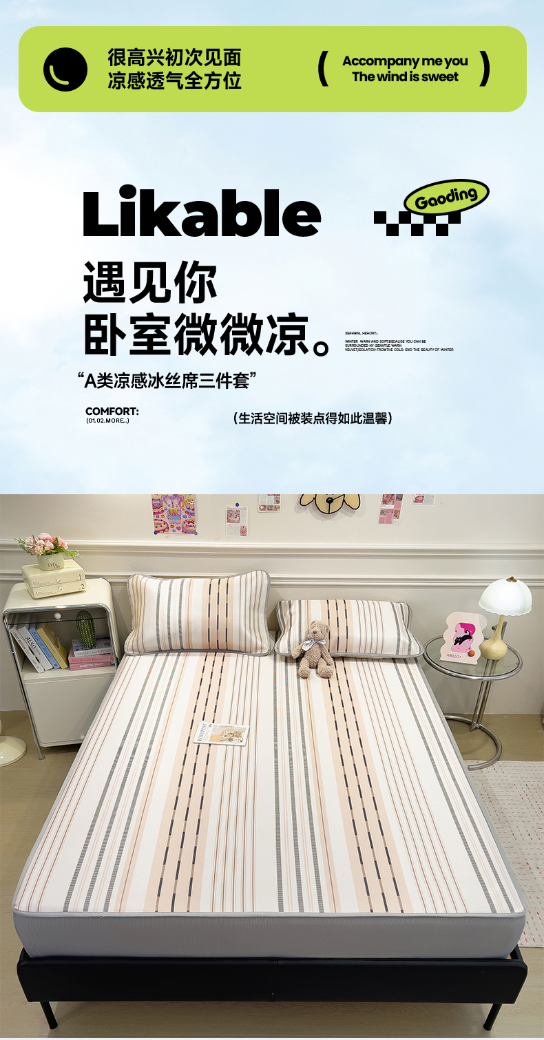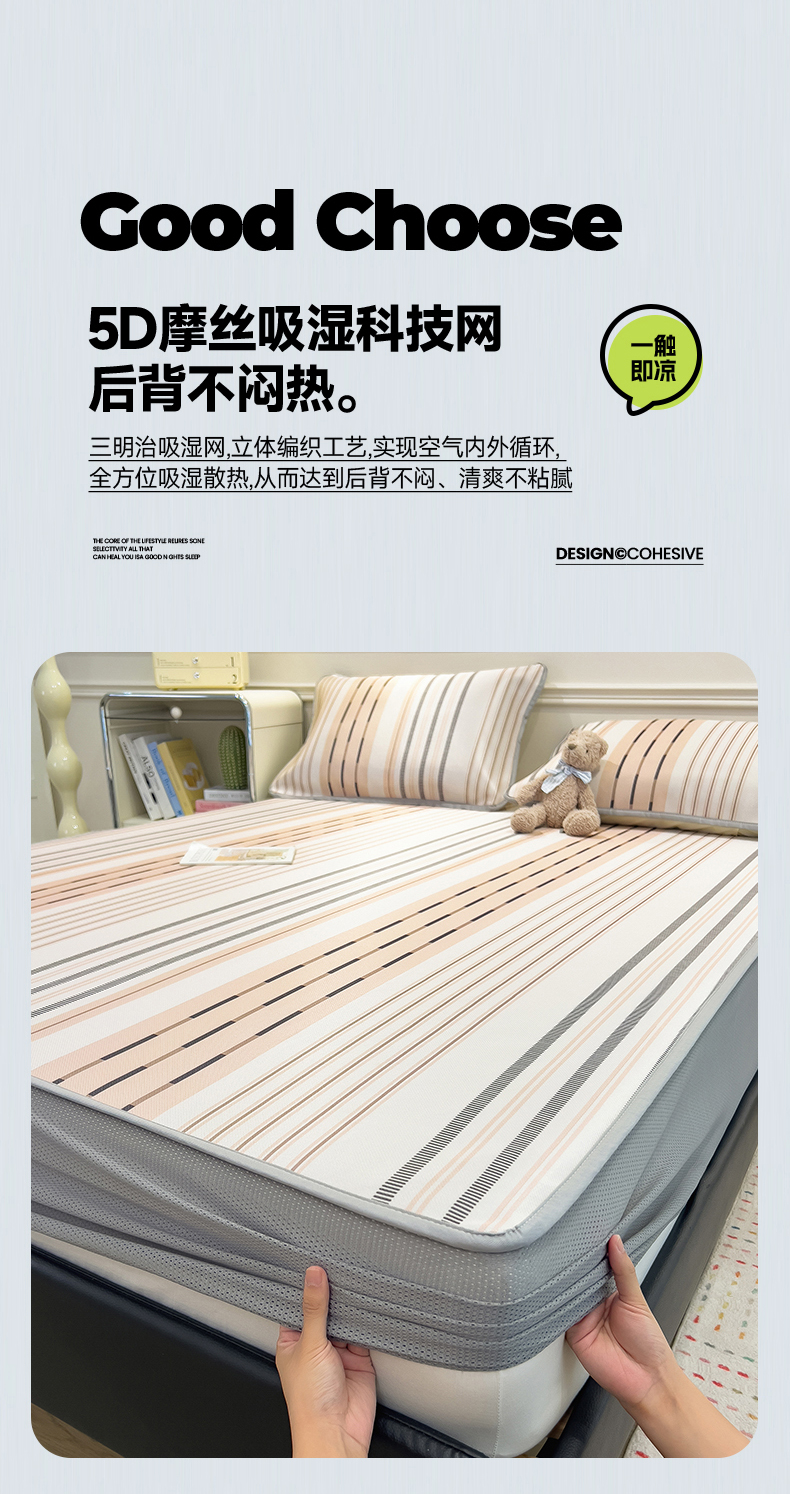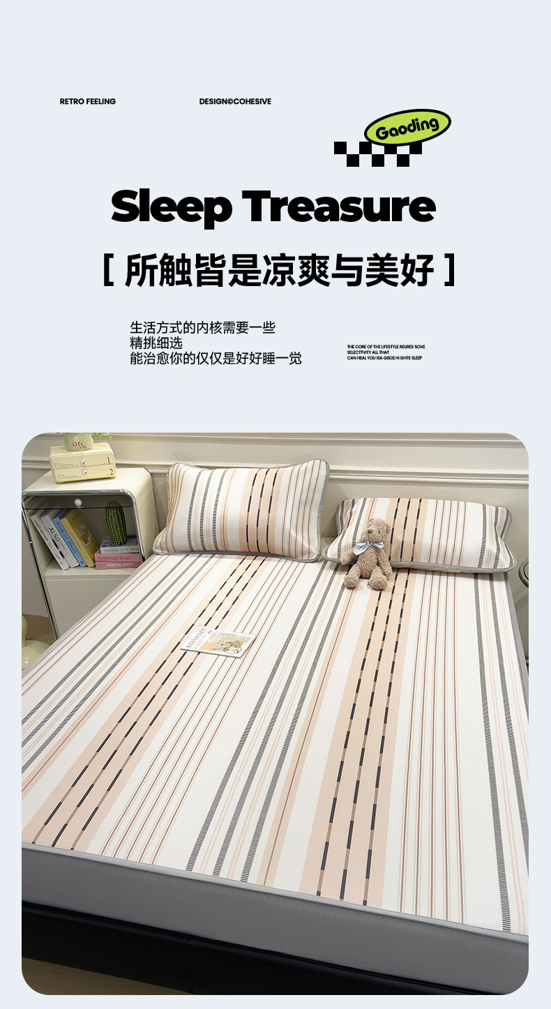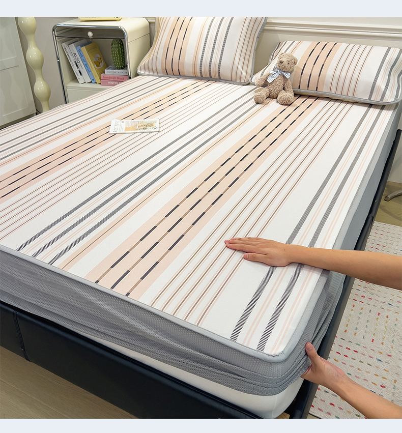 当前位置: 91家纺网 > 商品网购 > 床上用品 > 凉席 > 凉席套件 > 摩妮卡 2025新款小清新碳光冰丝软席床笠款单床笠三件套 柔色纵纹-咖