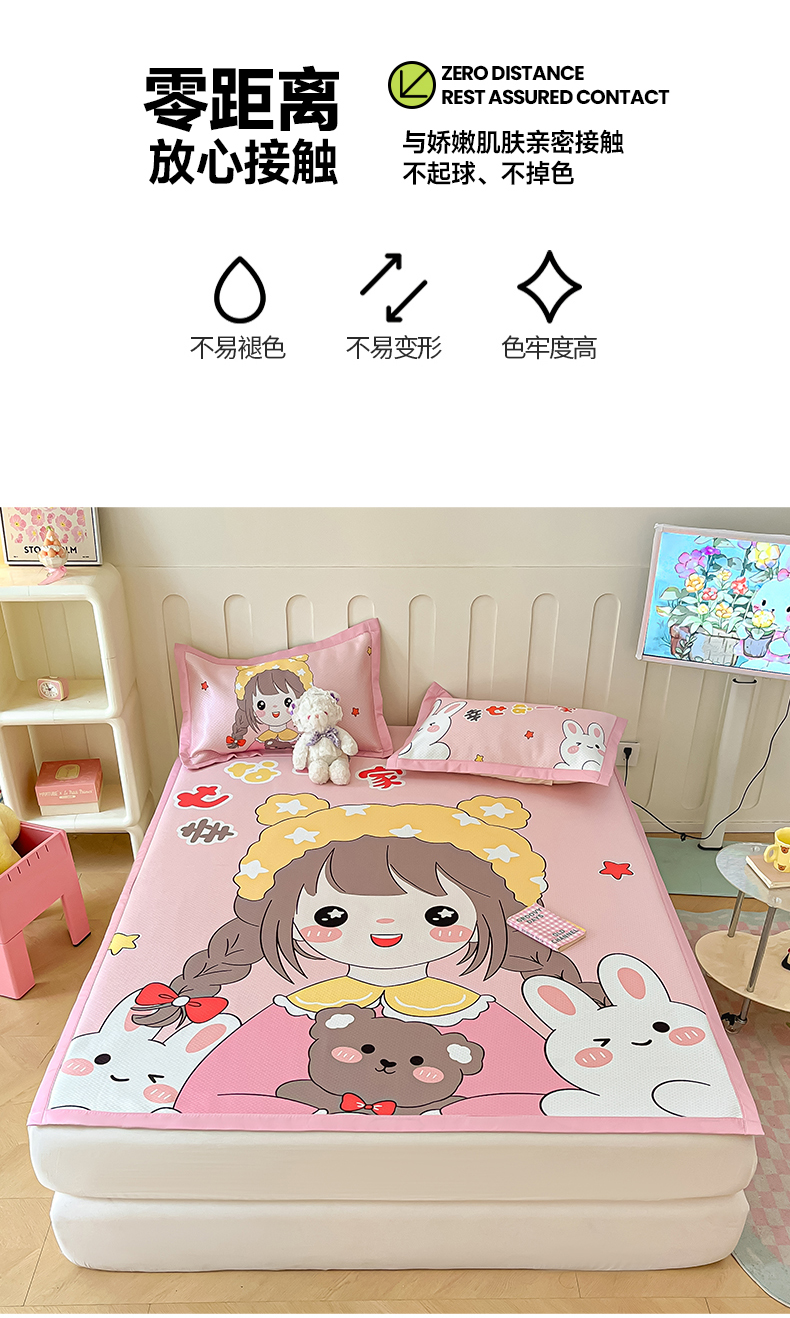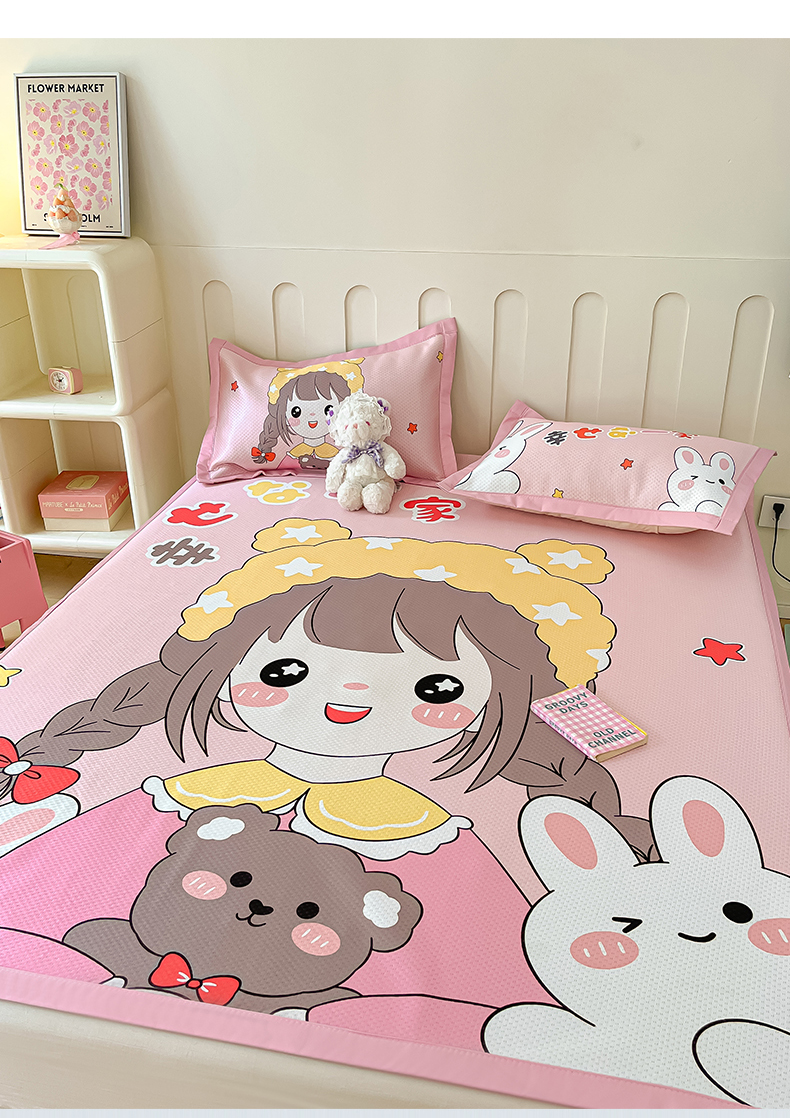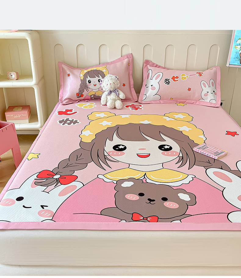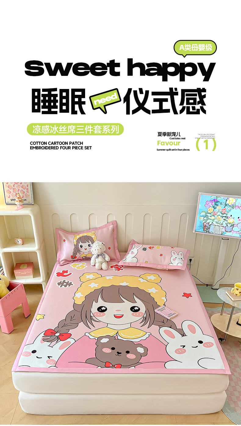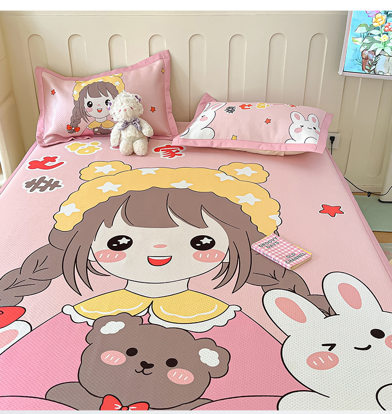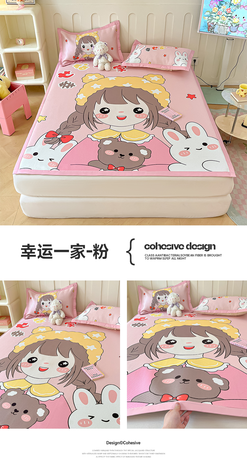 商品名称:摩妮卡 2025新款A类大版碳光冰丝席 三件套 幸运一家-粉