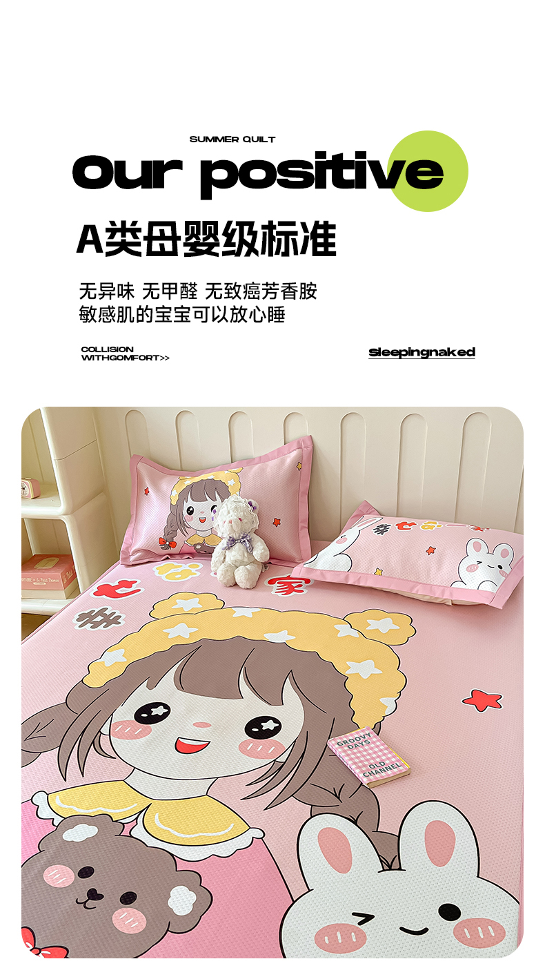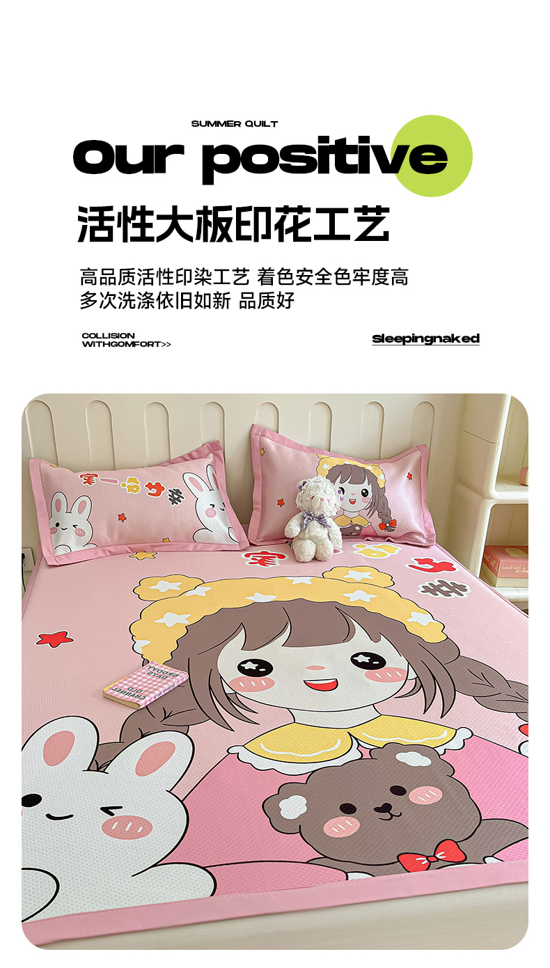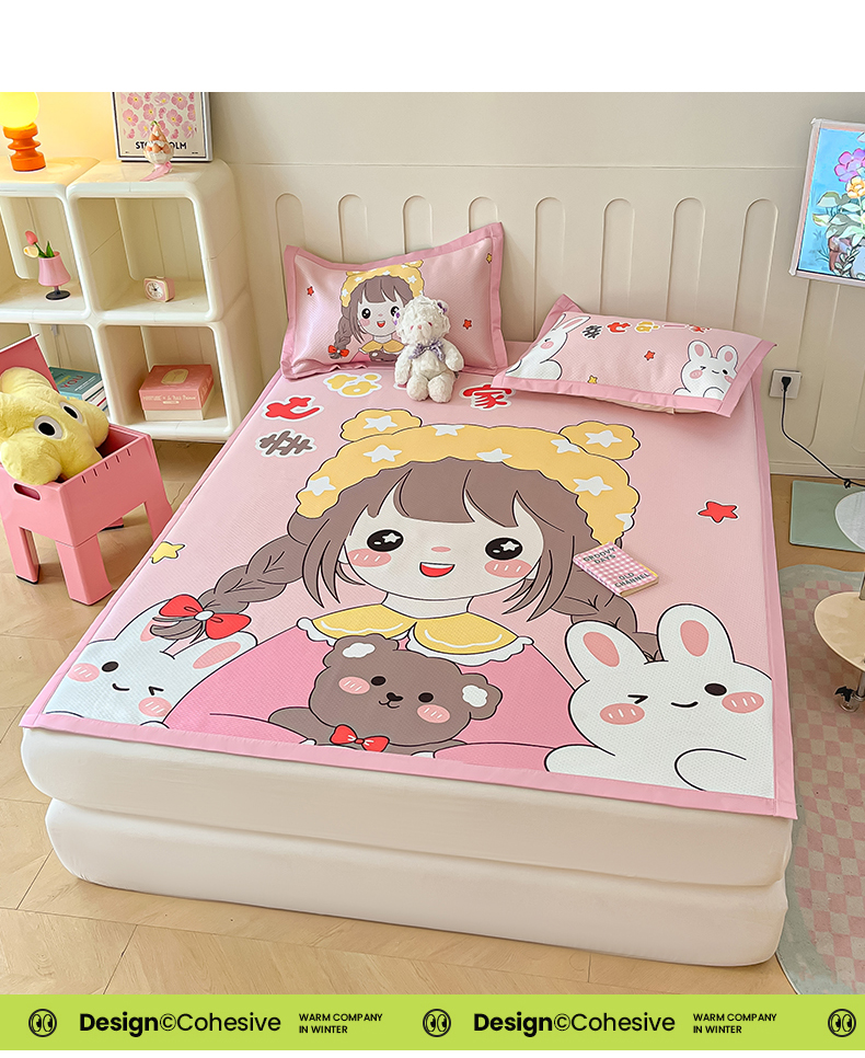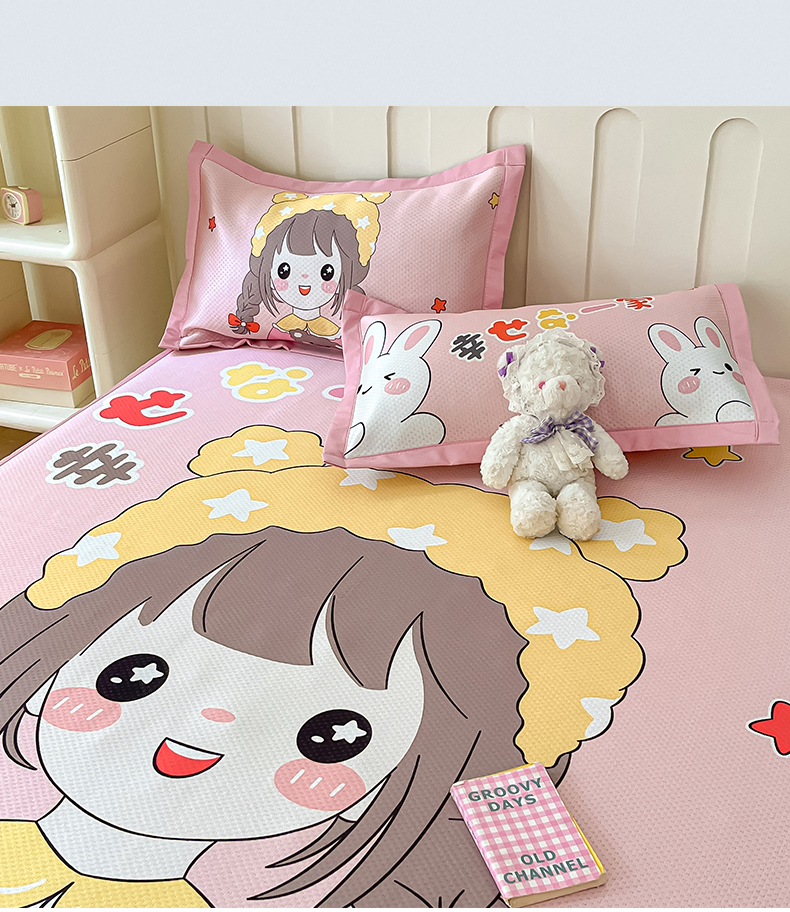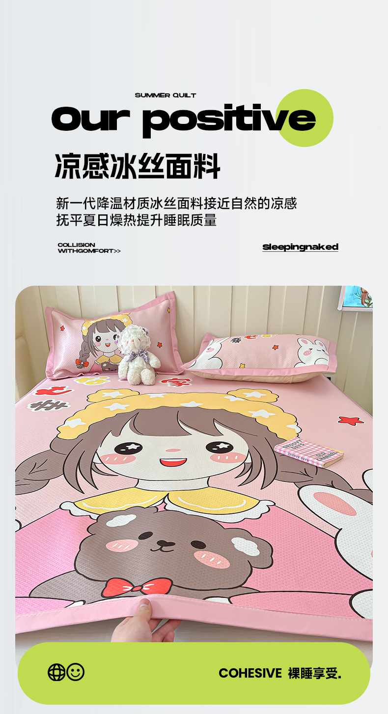 商品名称:摩妮卡 2025新款A类大版碳光冰丝席 三件套 幸运一家-粉