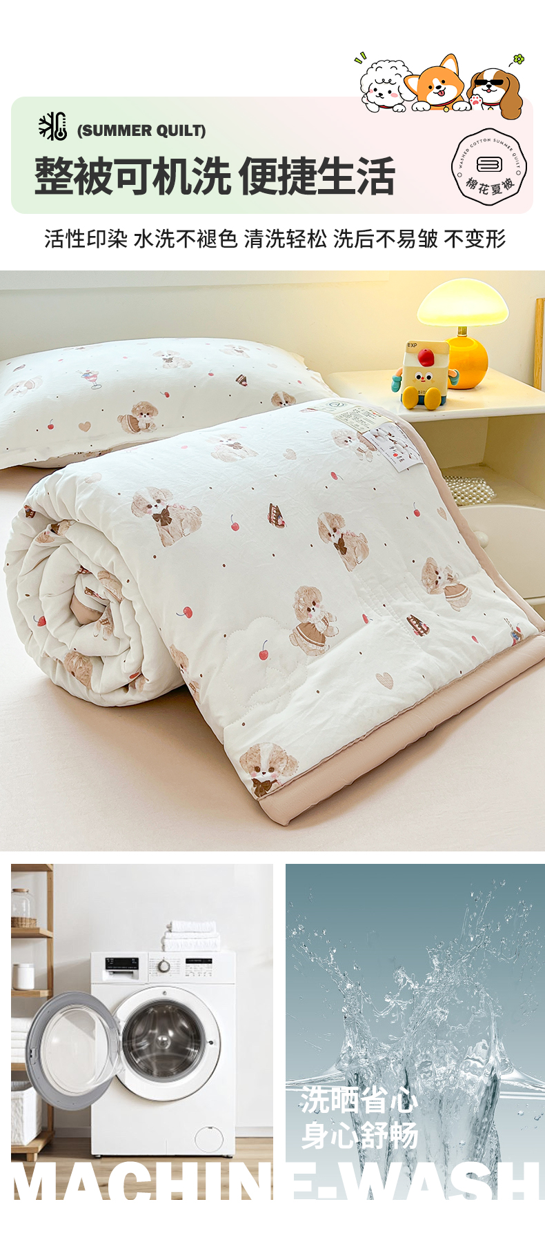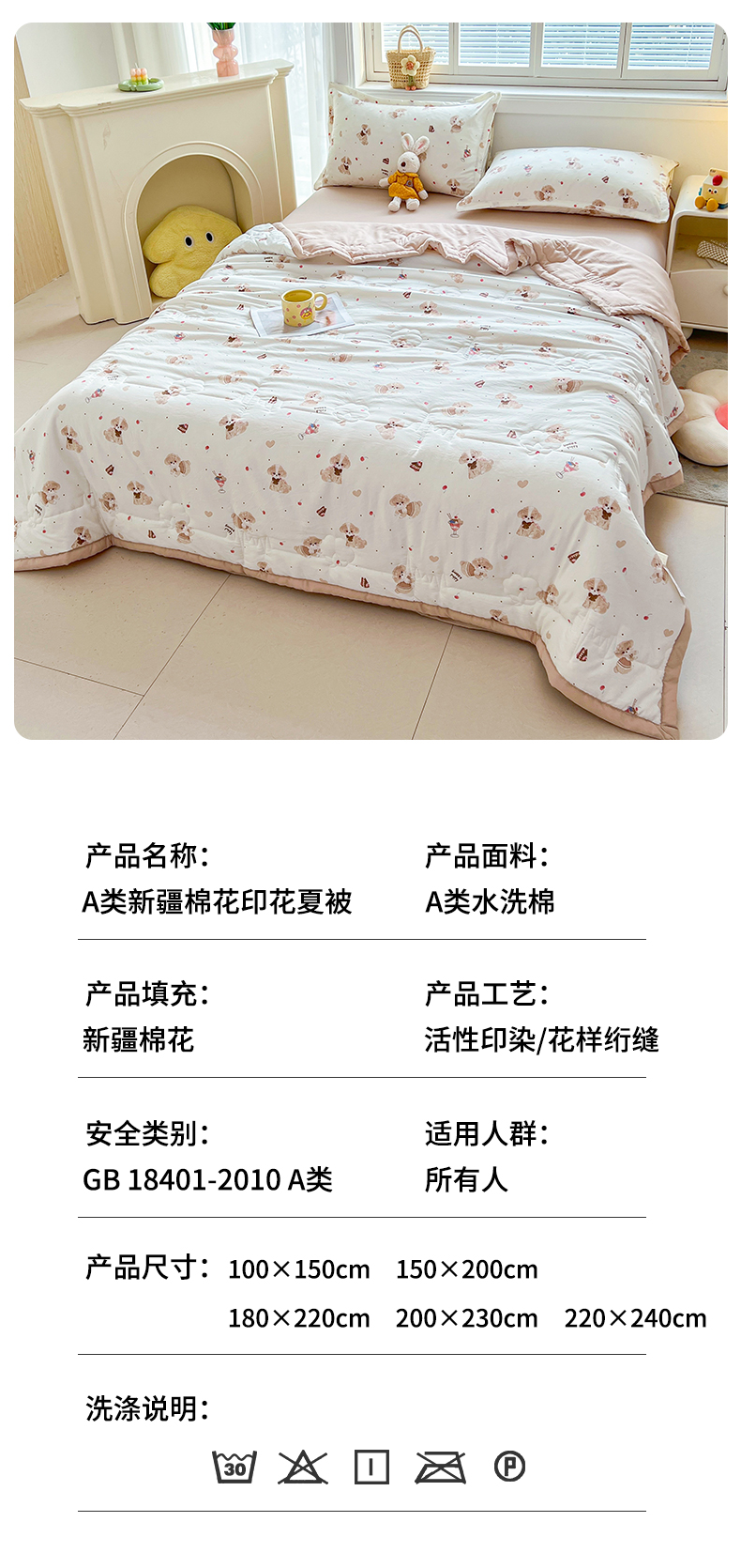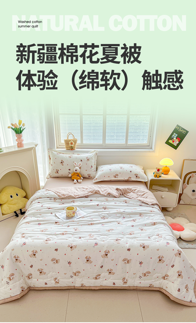 商品名称:西域种棉人·千百笠 2025新款A类新疆棉花夏凉被加宽包边水洗棉卡通印花吸湿透气棉花夏被空调被 凌香 樱桃狗