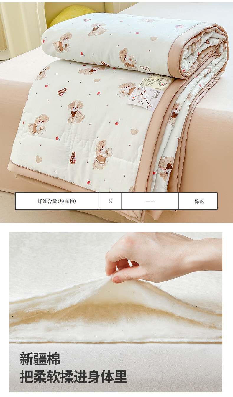 西域种棉人·千百笠 2025新款A类新疆棉花夏凉被加宽包边水洗棉卡通印花吸湿透气棉花夏被空调被 凌香 樱桃狗