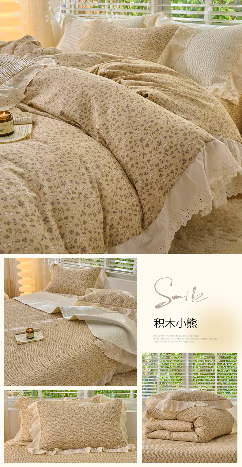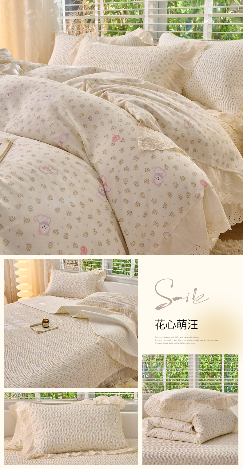 (总)X猫先生 2025新款法式全棉双层纱床盖套件夹棉床单三四件套(A类母婴级),积木小熊,玫瑰庄园,花心萌汪,幻彩心恋,梦幻乐园,云槿,悠悠时光,菲乐兔宝,素馨花恋,朵蔓
