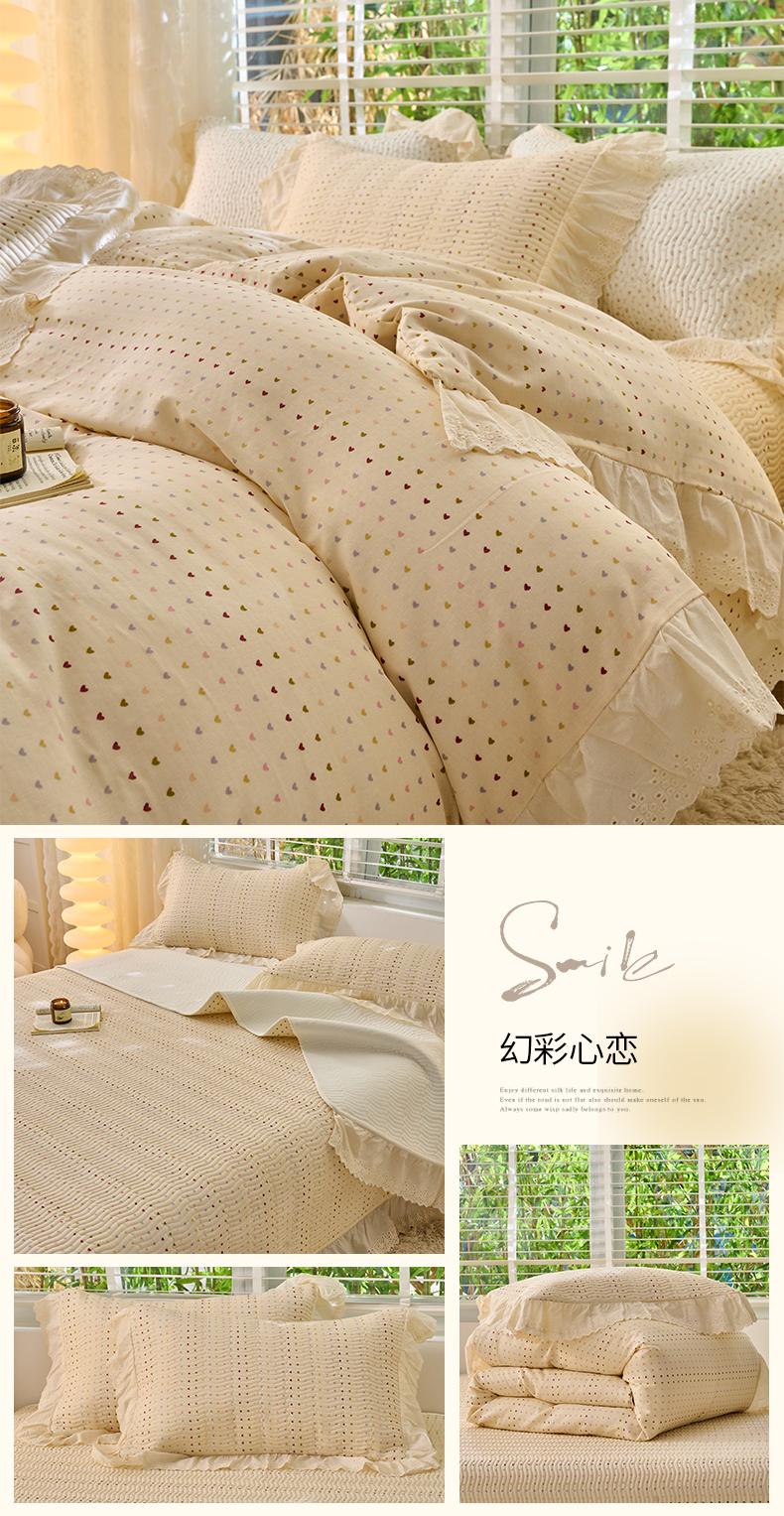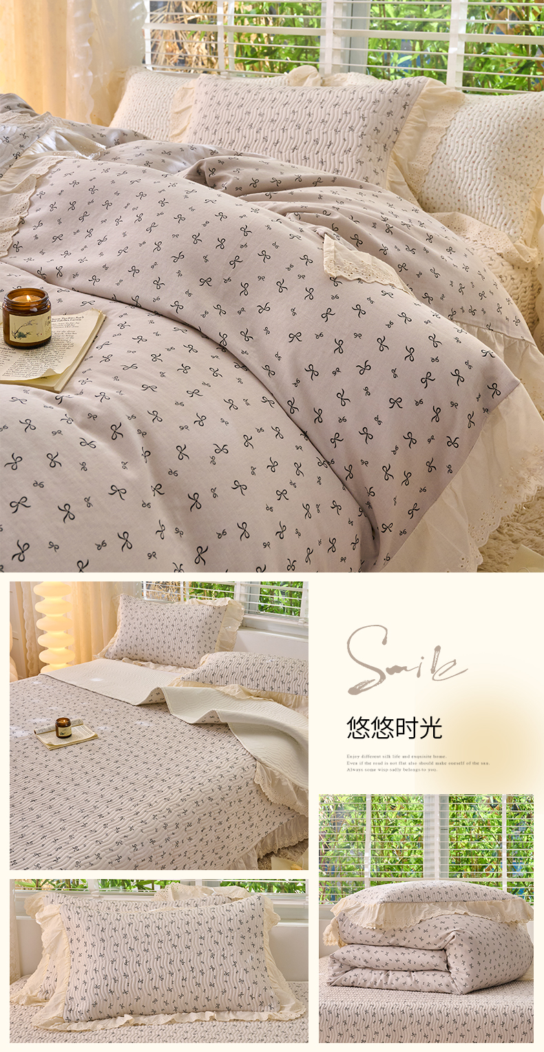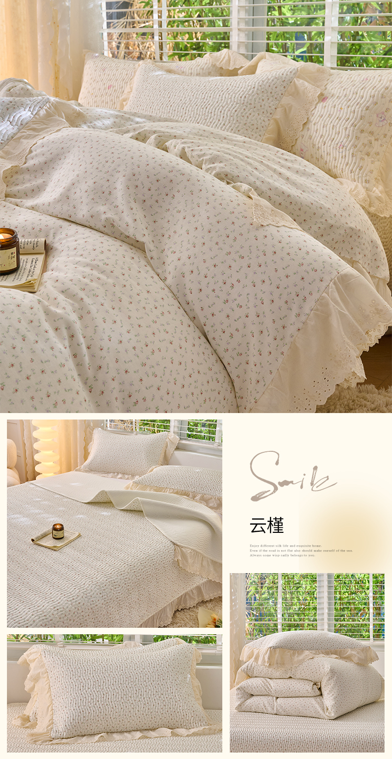 商品名称:(总)X猫先生 2025新款法式全棉双层纱床盖套件夹棉床单三四件套(A类母婴级)