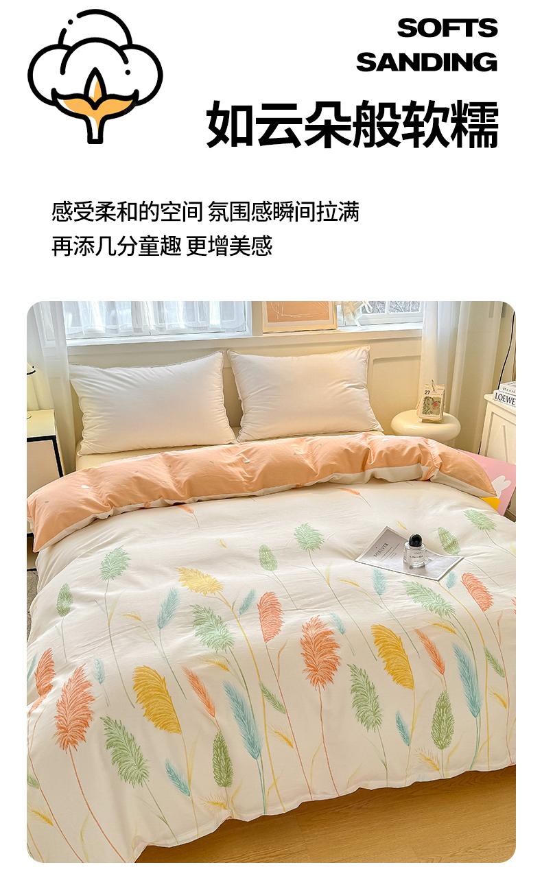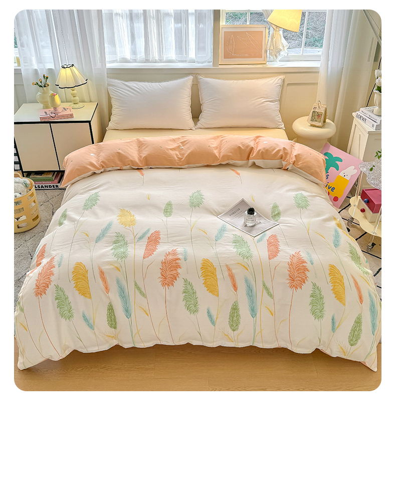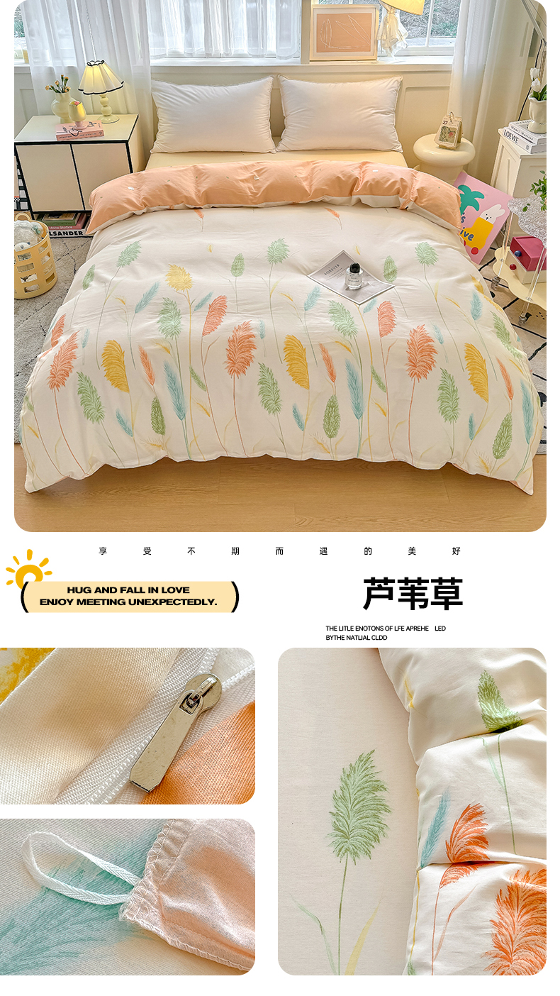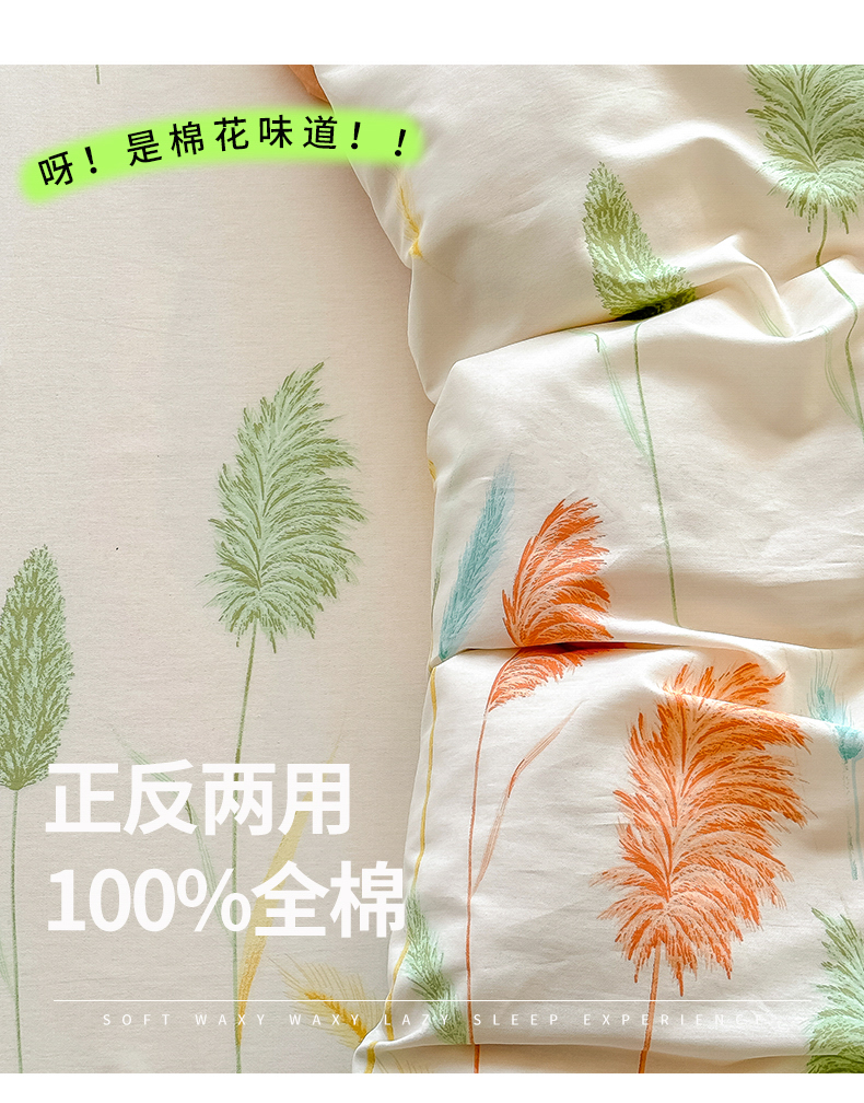 商品名称:红粉佳人家纺 2025春夏新款A类全棉纯棉12868纯棉单被套 芦苇草