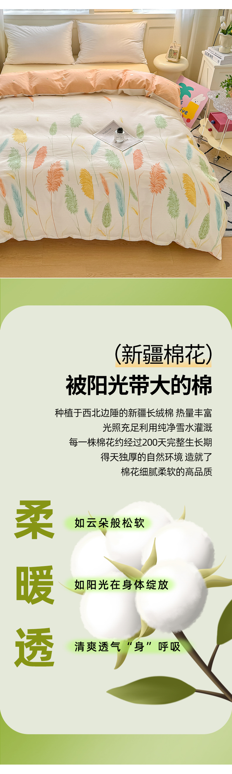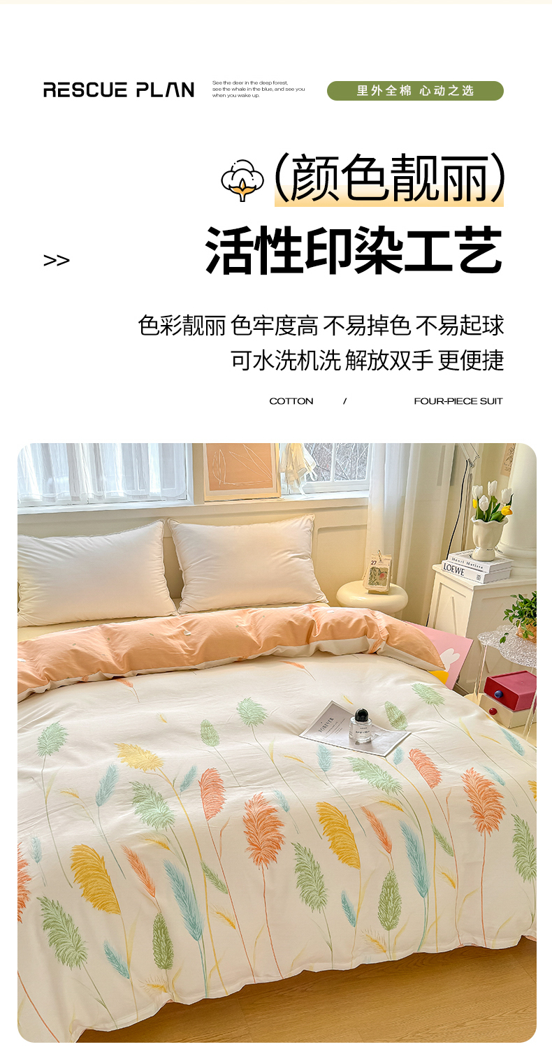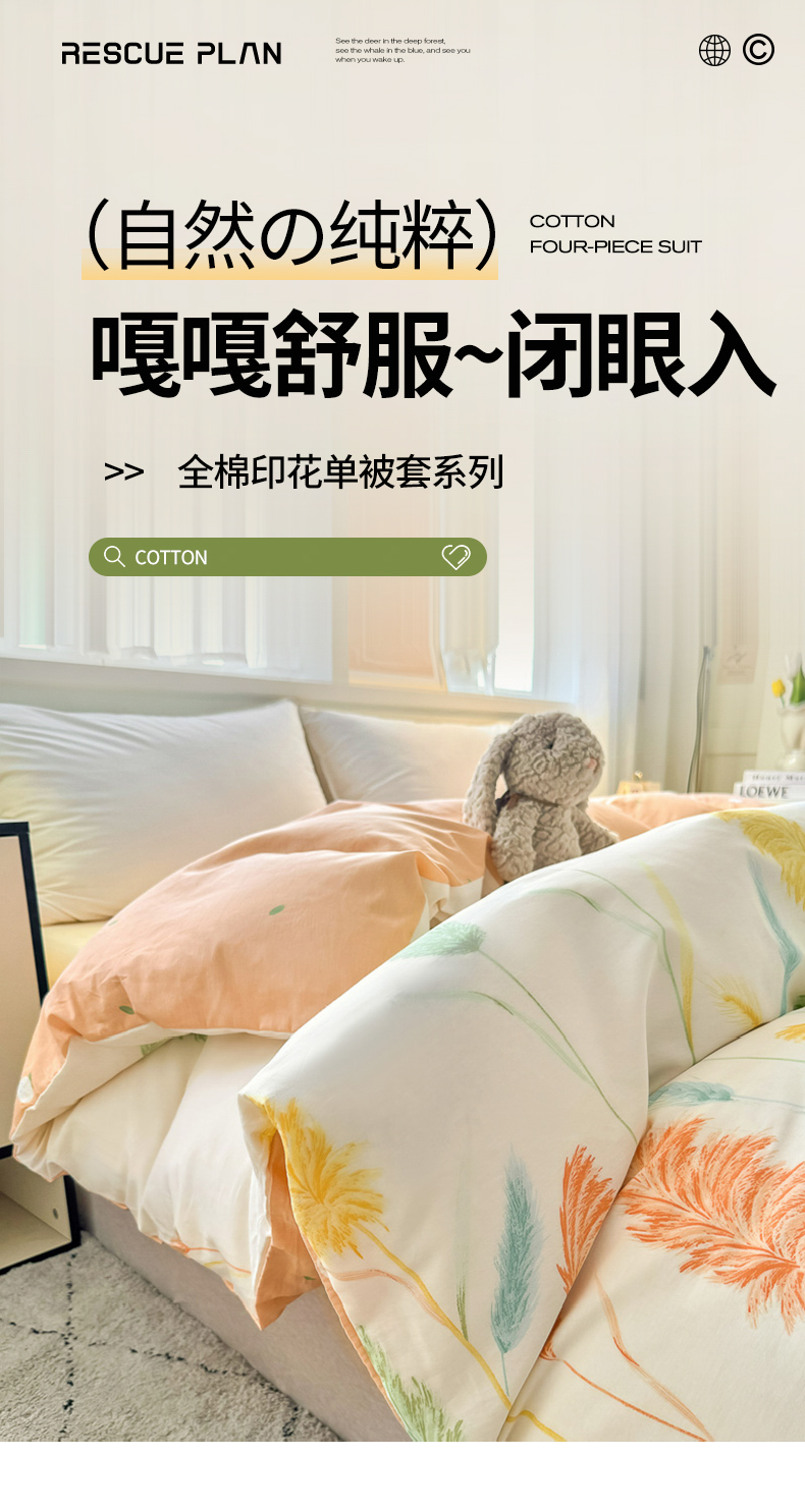 商品名称:红粉佳人家纺 2025春夏新款A类全棉纯棉12868纯棉单被套 芦苇草