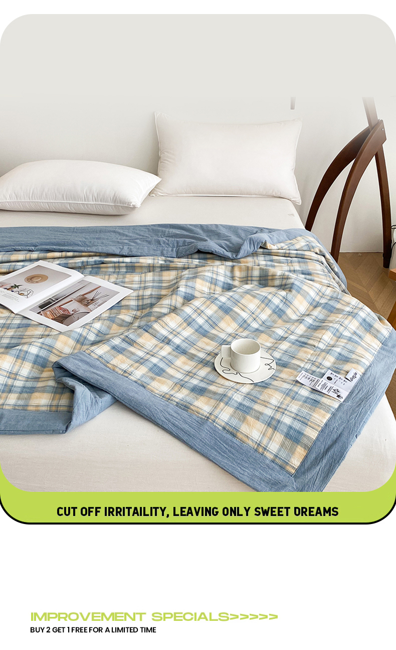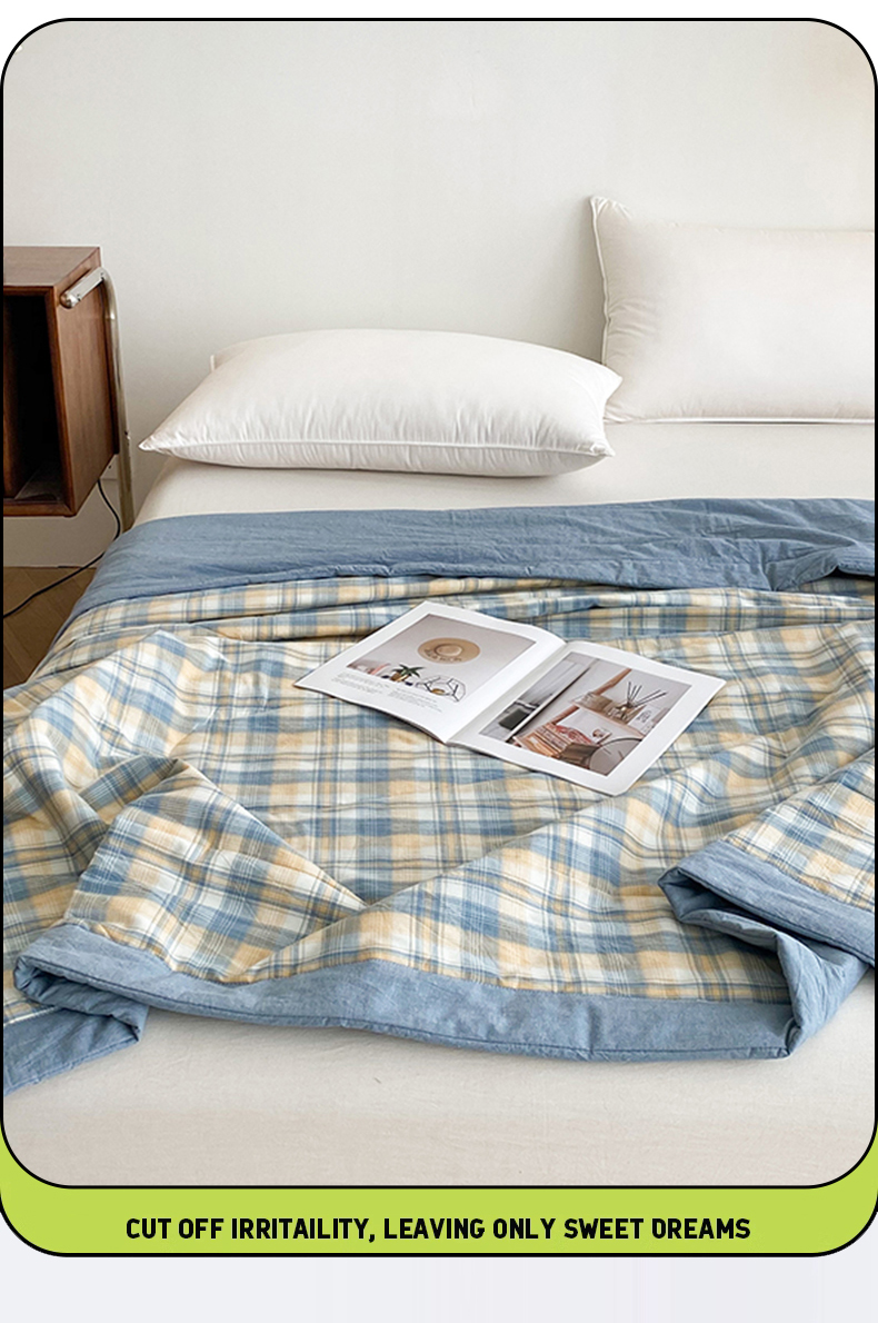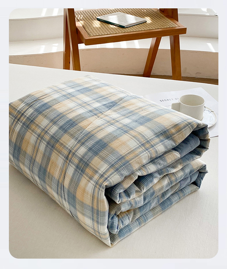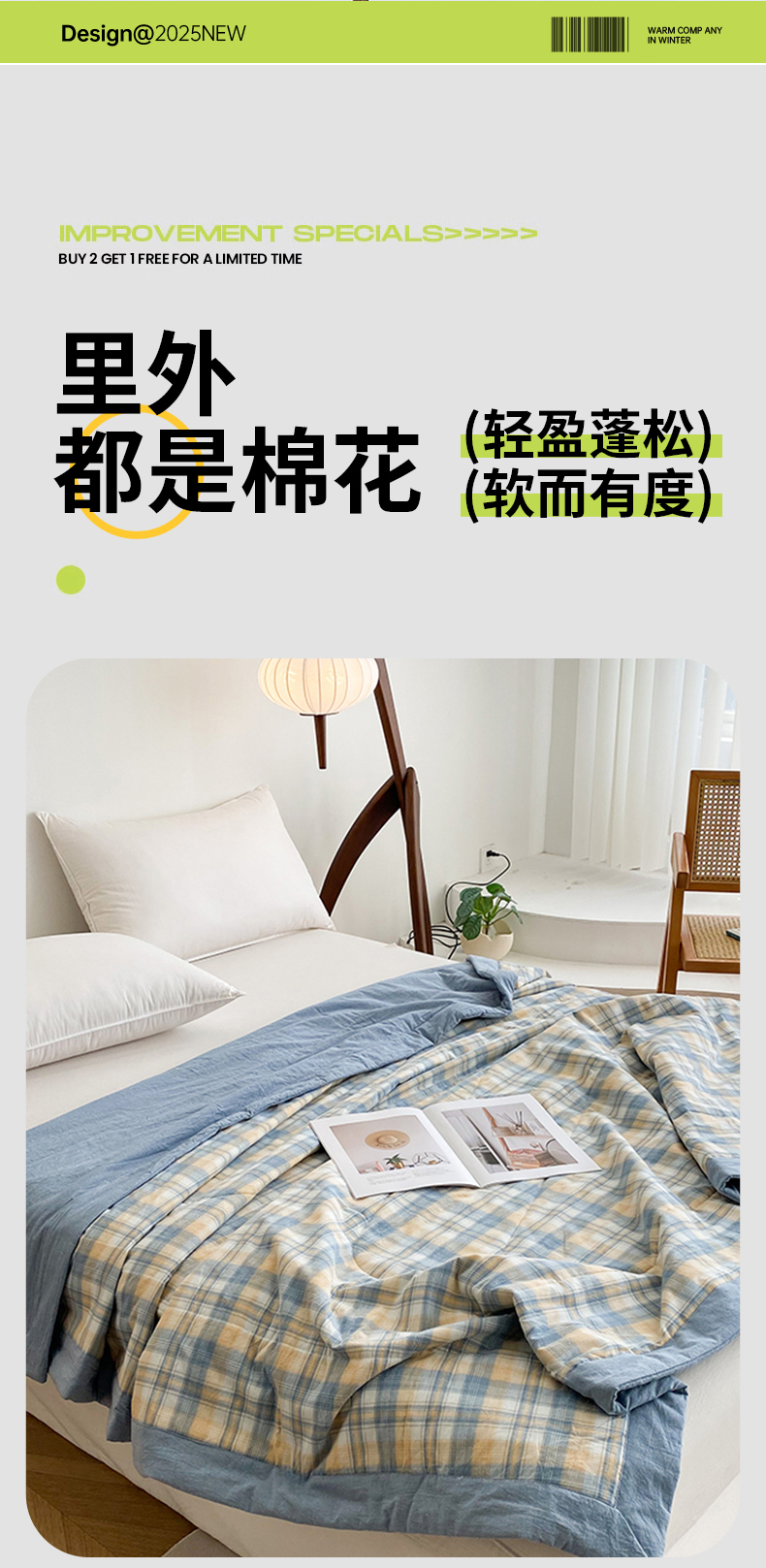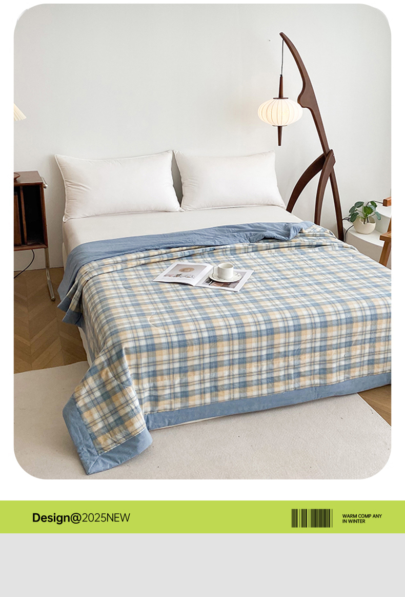 青螺家纺 2025全棉水洗棉格子双面色织新疆棉花被AB版夏凉空调被 星空米