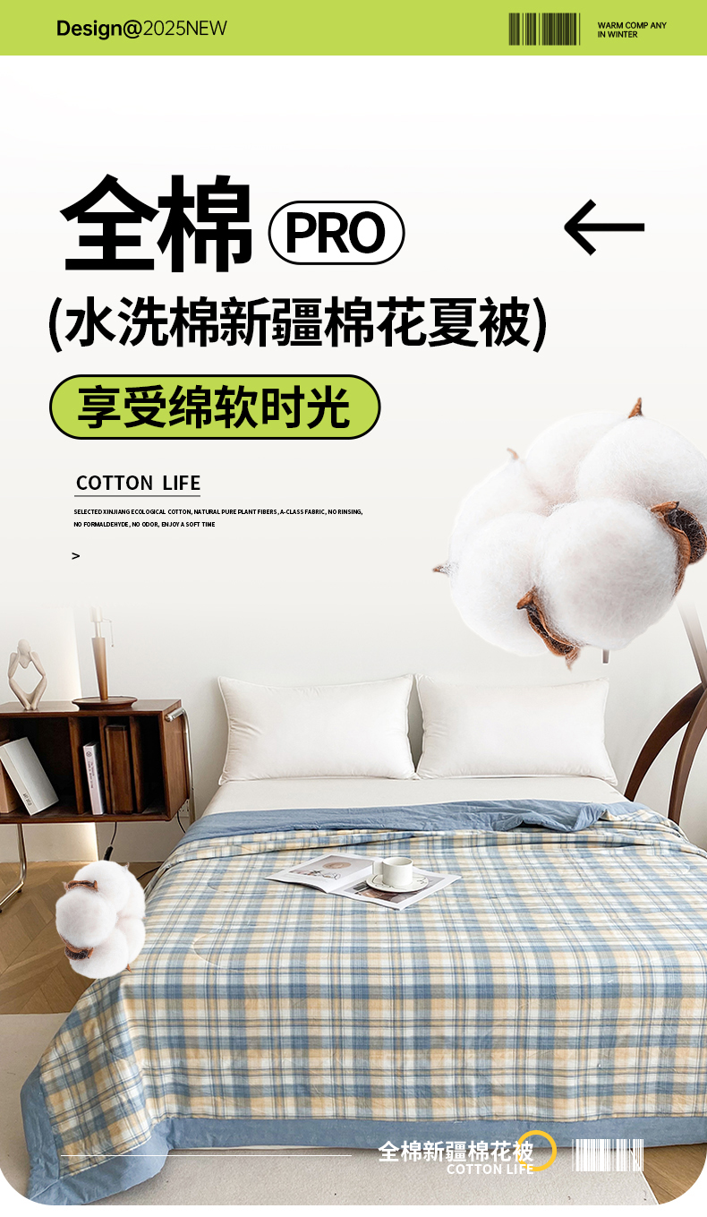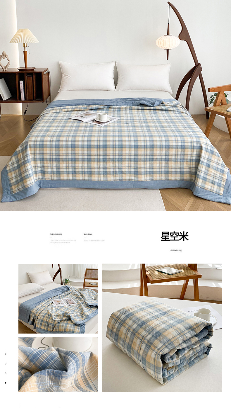 商品名称:青螺家纺 2025全棉水洗棉格子双面色织新疆棉花被AB版夏凉空调被 星空米